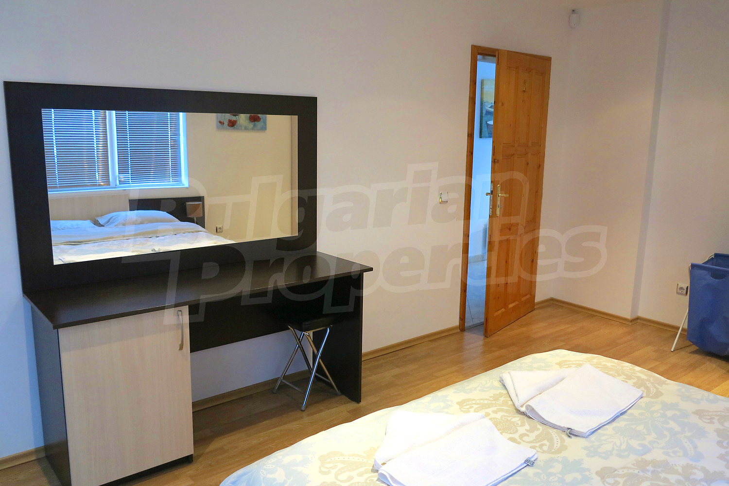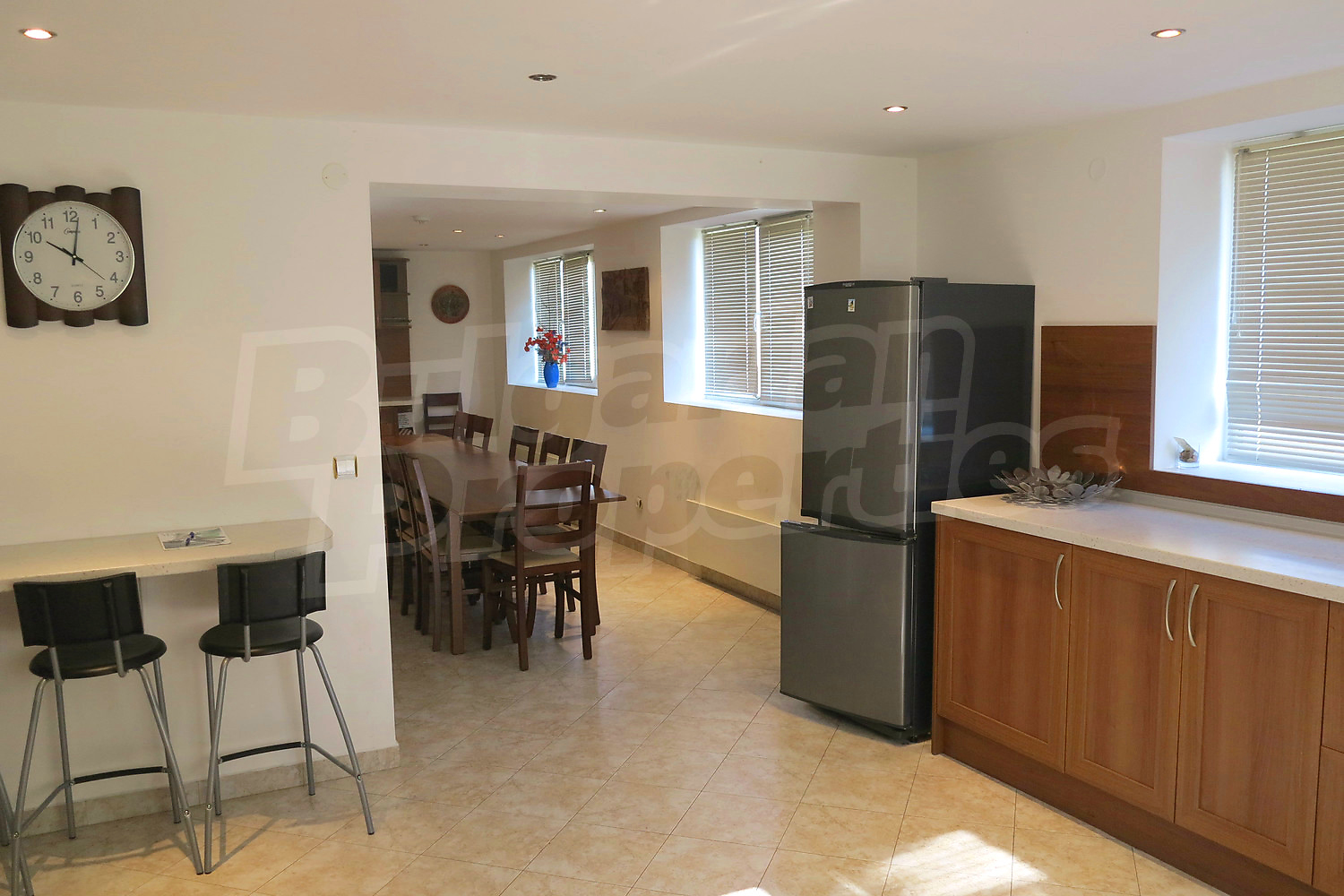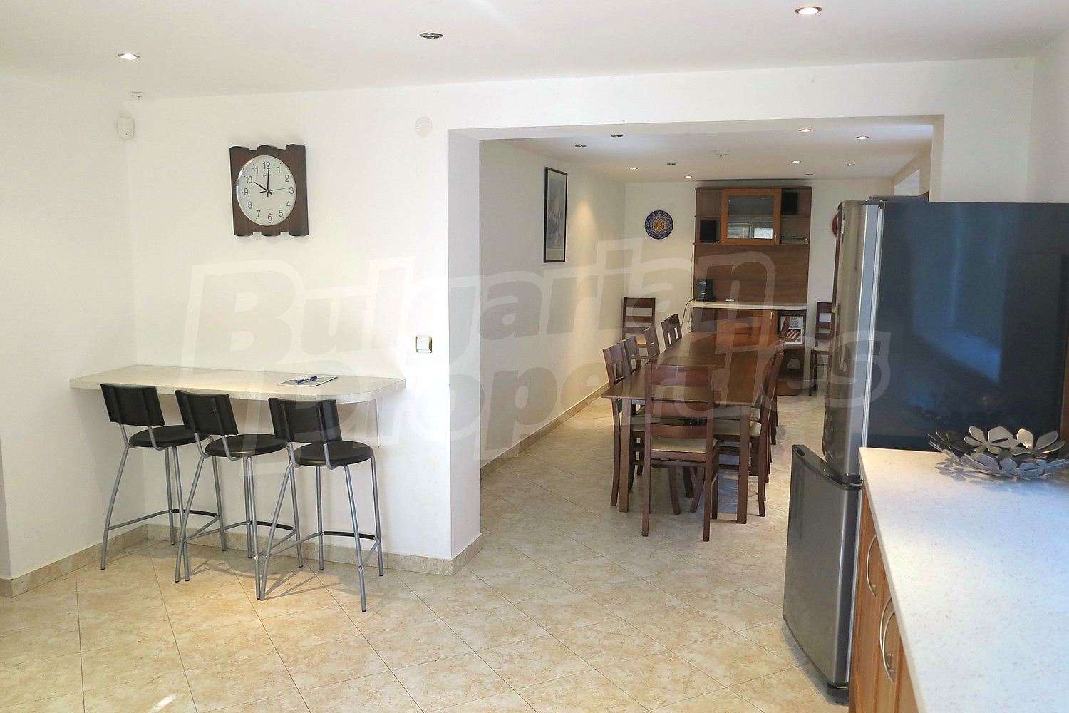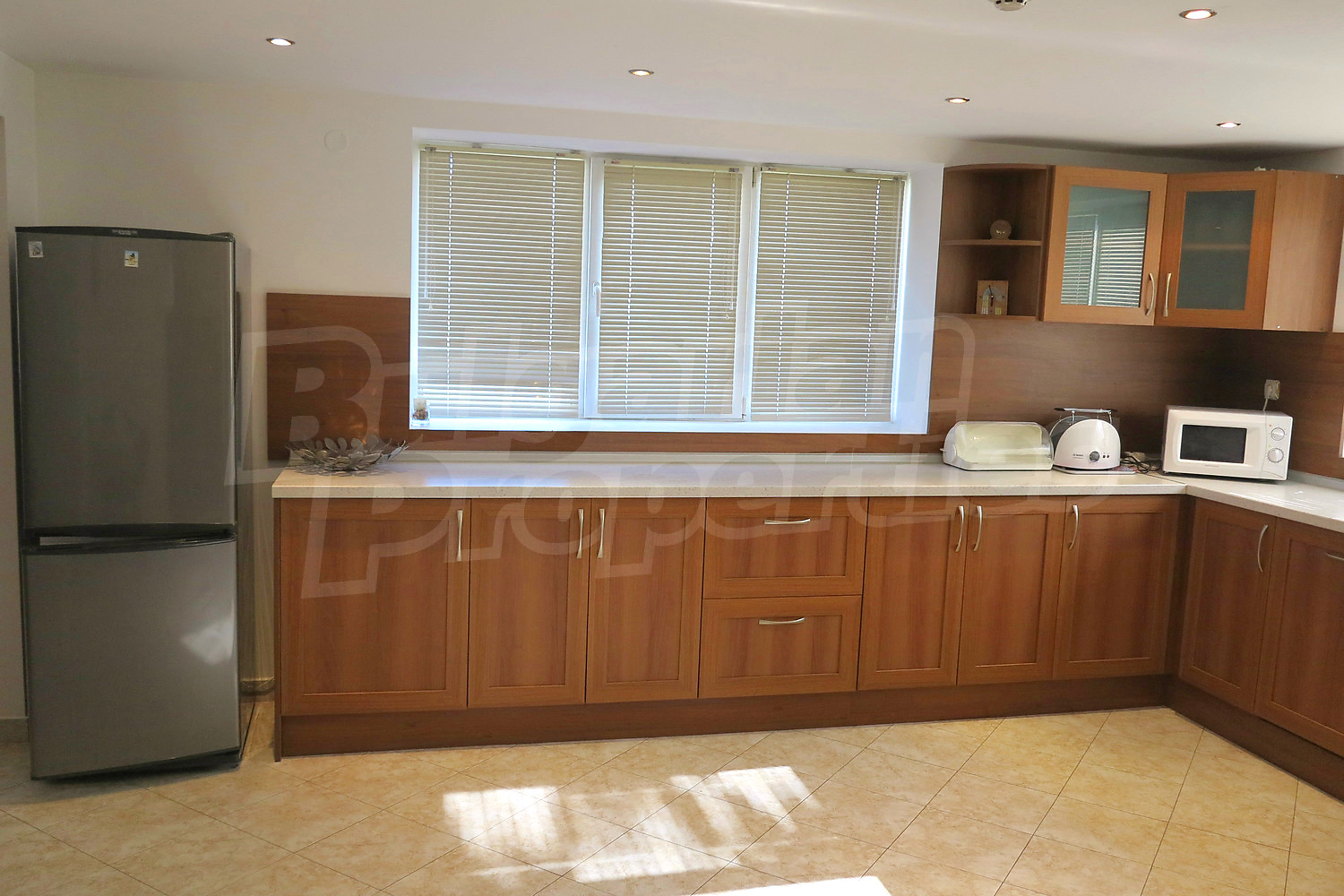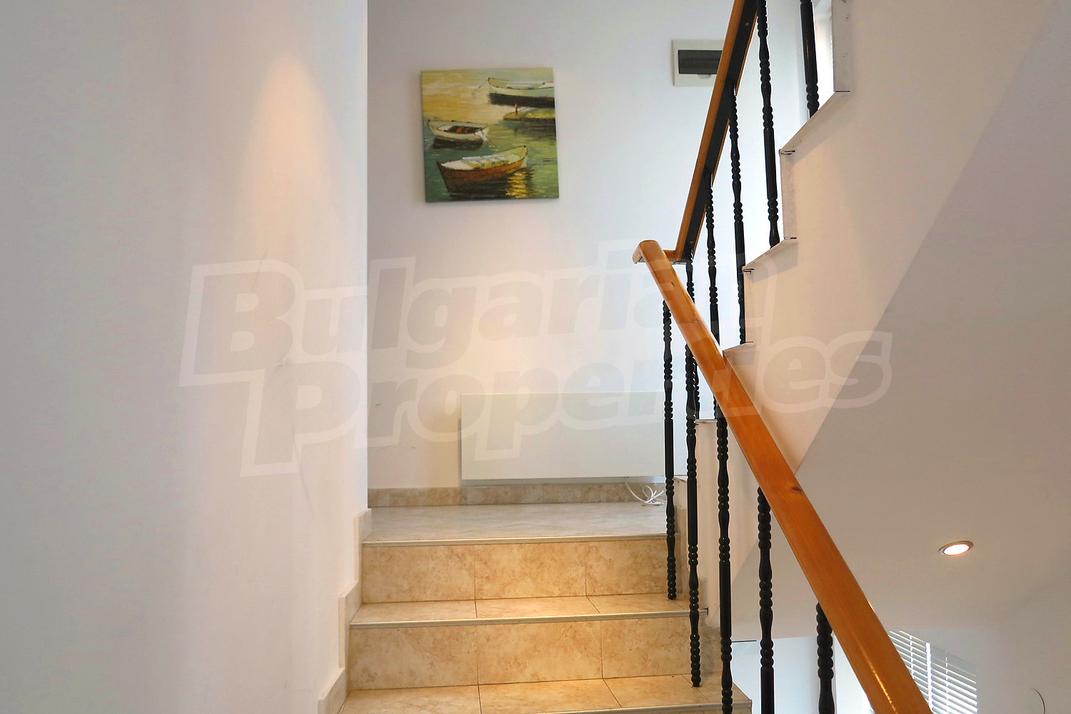 Приземният етаж се състои от кухня, трапезария, тоалетна, сауна, помещение с контейнери за вода, сервизно помещение, складово помещение и коридор. На първия етаж има дневна с камина, две спални, баня с тоалетна, два балкона и коридор. Вторият етаж има три спални, баня с тоалетна, самостоятелна баня с тоалетна към едната спалня, отделна тоалетна, два балкона и коридор. Таванският етаж е чудесно отворено пространство, което се използва като игрална зала с билярдна маса, тенис маса и др. Имотът разполага и с голям гараж 20 кв.м., долепен до къщата.