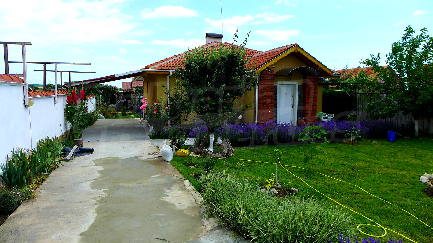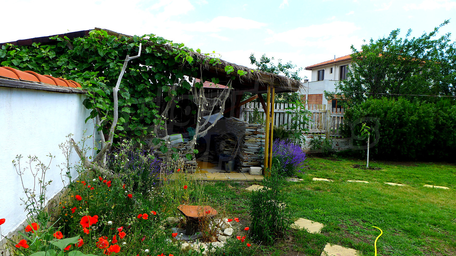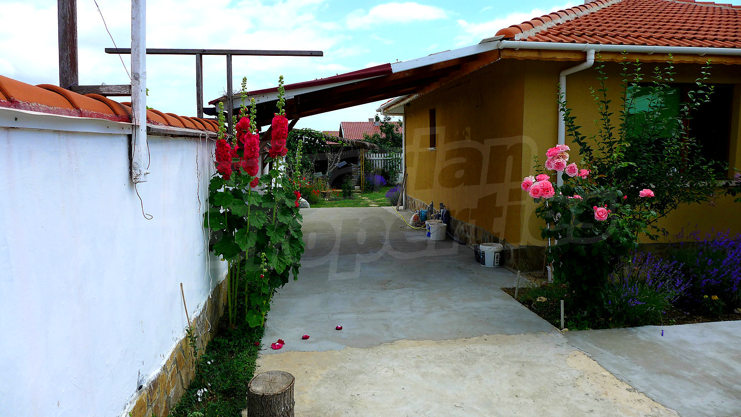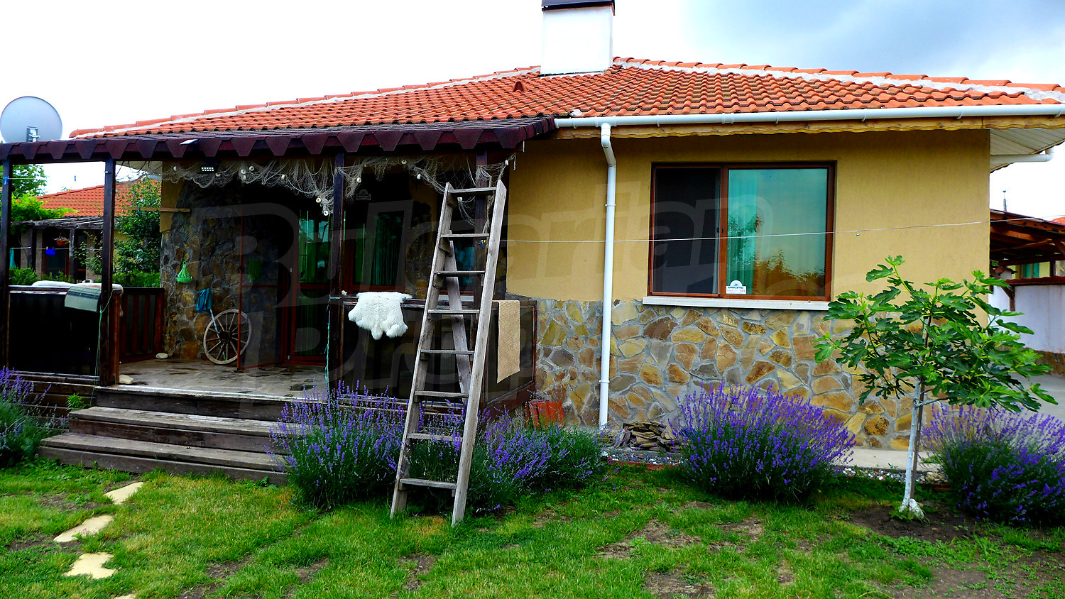 Предлагаме на Вашето внимание слънчев южен имот на 6 км от морския бряг в спокоен и живописен крайморски район. Едноетажната къща заема площ от 87 кв.м., към нея има и прилежащ красиво поддържан двор с площ от 535 кв.м., даващ достатъчно пространство за изграждането на басейн.