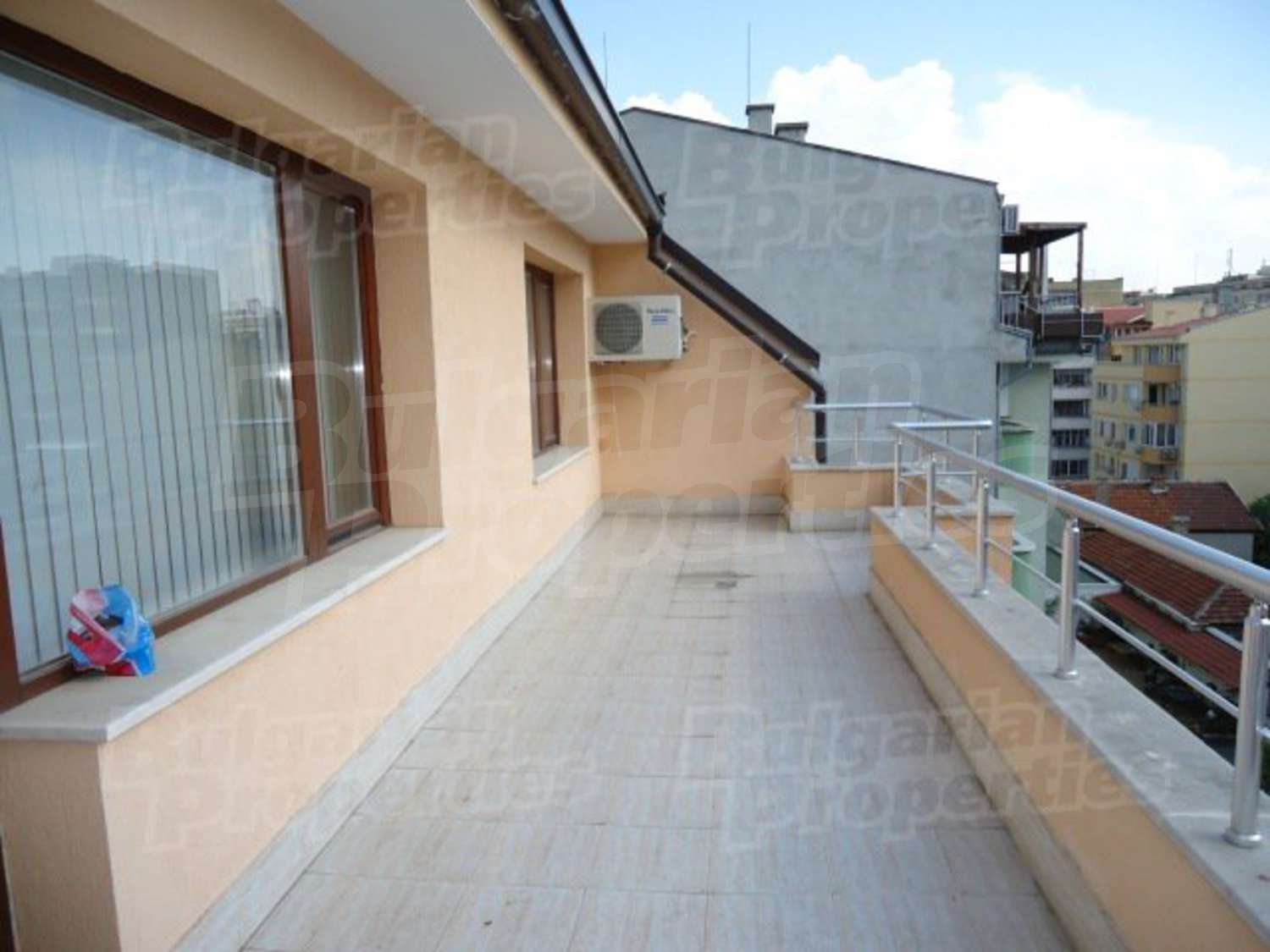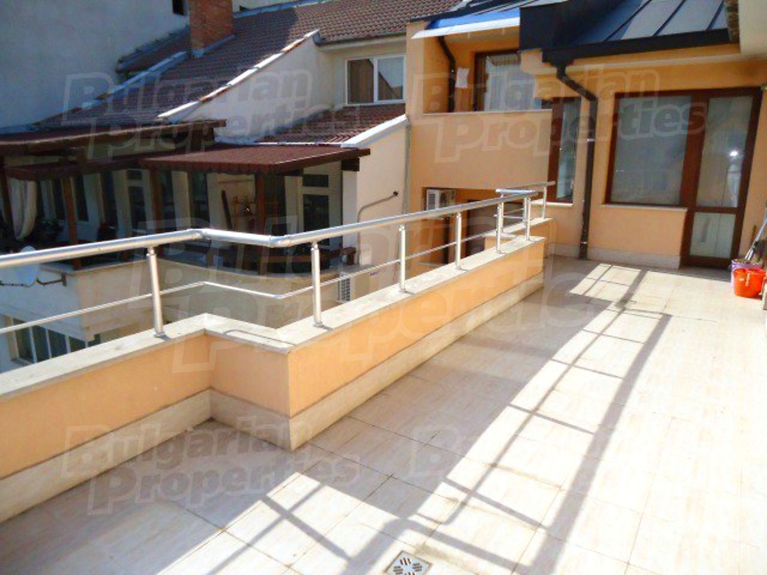 Предлагаме на Вашето внимание апартамент в централната част на града, в сграда ново строителство с площ 101,89 кв.м. от които жилищна площ 79.29 кв.м. и тераса 22.60 кв.м. Жилището се намира на 5-ти етаж от 6 етажна жилищна сграда с асаньор и контрол а достъпа. Площа му е разпределена между входно антре, всекидневна с кухненски бокс, спалня, баня, тоалетна и голяма тераса, западно изложение. Предлага със следната степен на завършеност: Дървена дограма с двоен стъклопакет, подове с ламиниран паркет и теракот, и стени- латекс. Голям плюс за апартамента е, че е газифициран, инсталиран е газов котел и радиатори за отопление през студените месеци, освен тях има и два климатика.