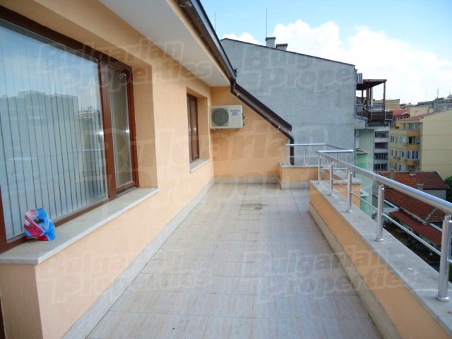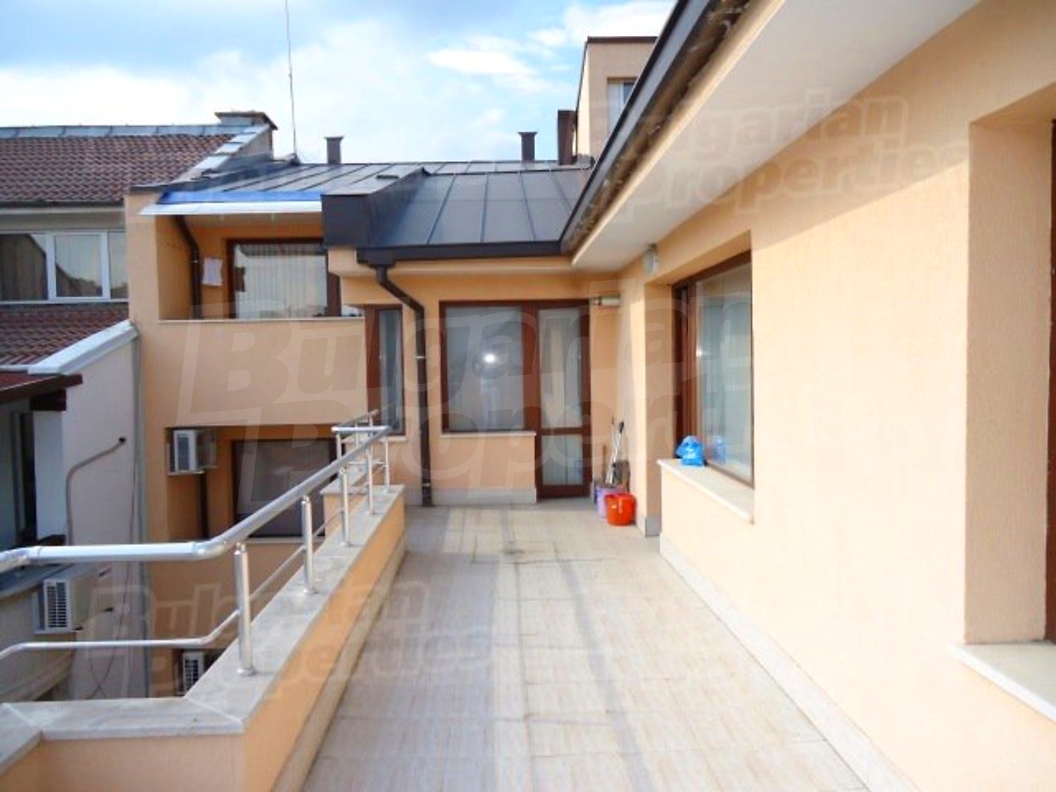 Предлагаме на Вашето внимание апартамент в централната част на града, в сграда ново строителство с площ 101,89 кв.м. от които жилищна площ 79.29 кв.м. и тераса 22.60 кв.м. Жилището се намира на 5-ти етаж от 6 етажна жилищна сграда с асаньор и контрол а достъпа. Площа му е разпределена между входно антре, всекидневна с кухненски бокс, спалня, баня, тоалетна и голяма тераса, западно изложение. Предлага със следната степен на завършеност: Дървена дограма с двоен стъклопакет, подове с ламиниран паркет и теракот, и стени- латекс. Голям плюс за апартамента е, че е газифициран, инсталиран е газов котел и радиатори за отопление през студените месеци, освен тях има и два климатика.
