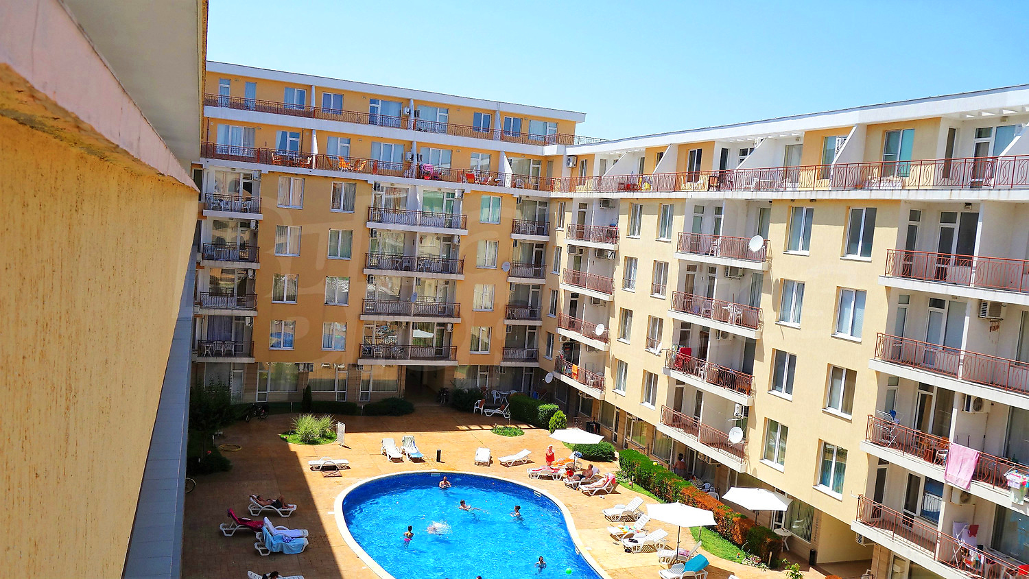 Комфортен тристаен апартамент в затворен комплекс "Слънчев Ден 2" / Sunny Day 2, разположен в северната част на курорта, само на 600 метра от пясъчен плаж, на 2 км от старинния град Несебър, на 35 км от летище Бургас и на 300 м от автобусна спирка за лесно придвижване до съседните населени места.