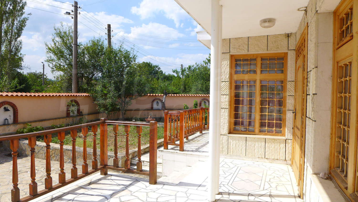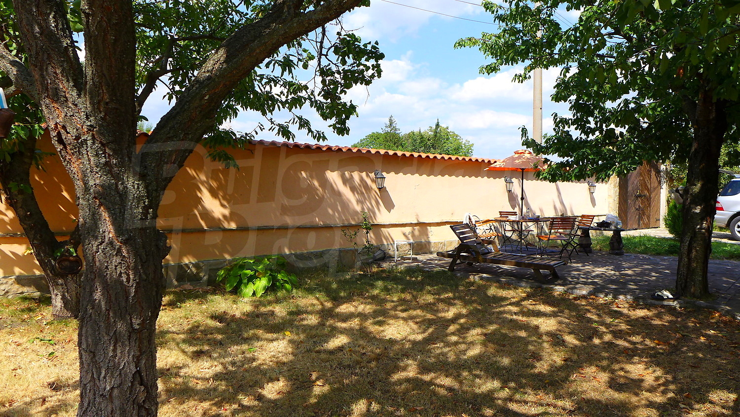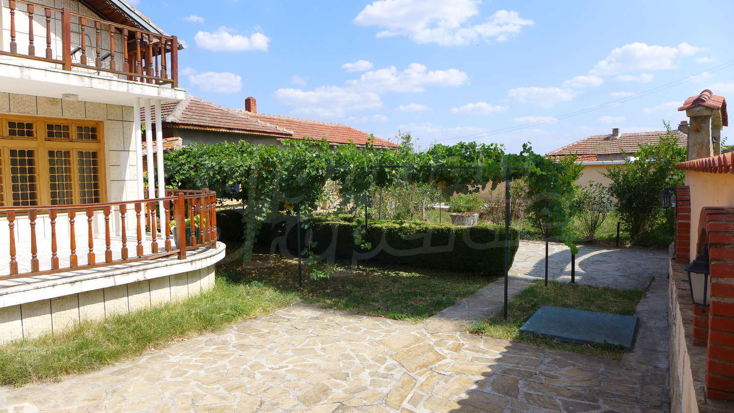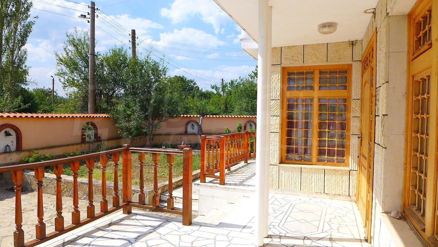 Накратко имотът се състои от голяма къща на два етажа, едноетажна къща за гости, склад, паркинг за 2 коли, гараж, стопански постройки и градина с големина 1525 кв. м.