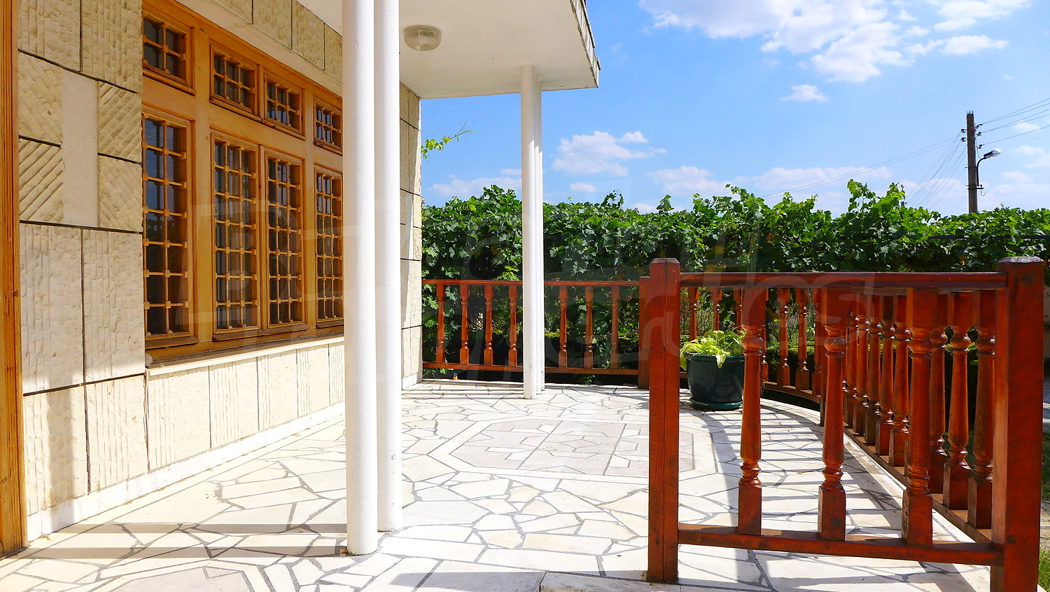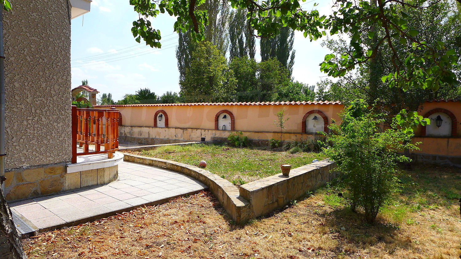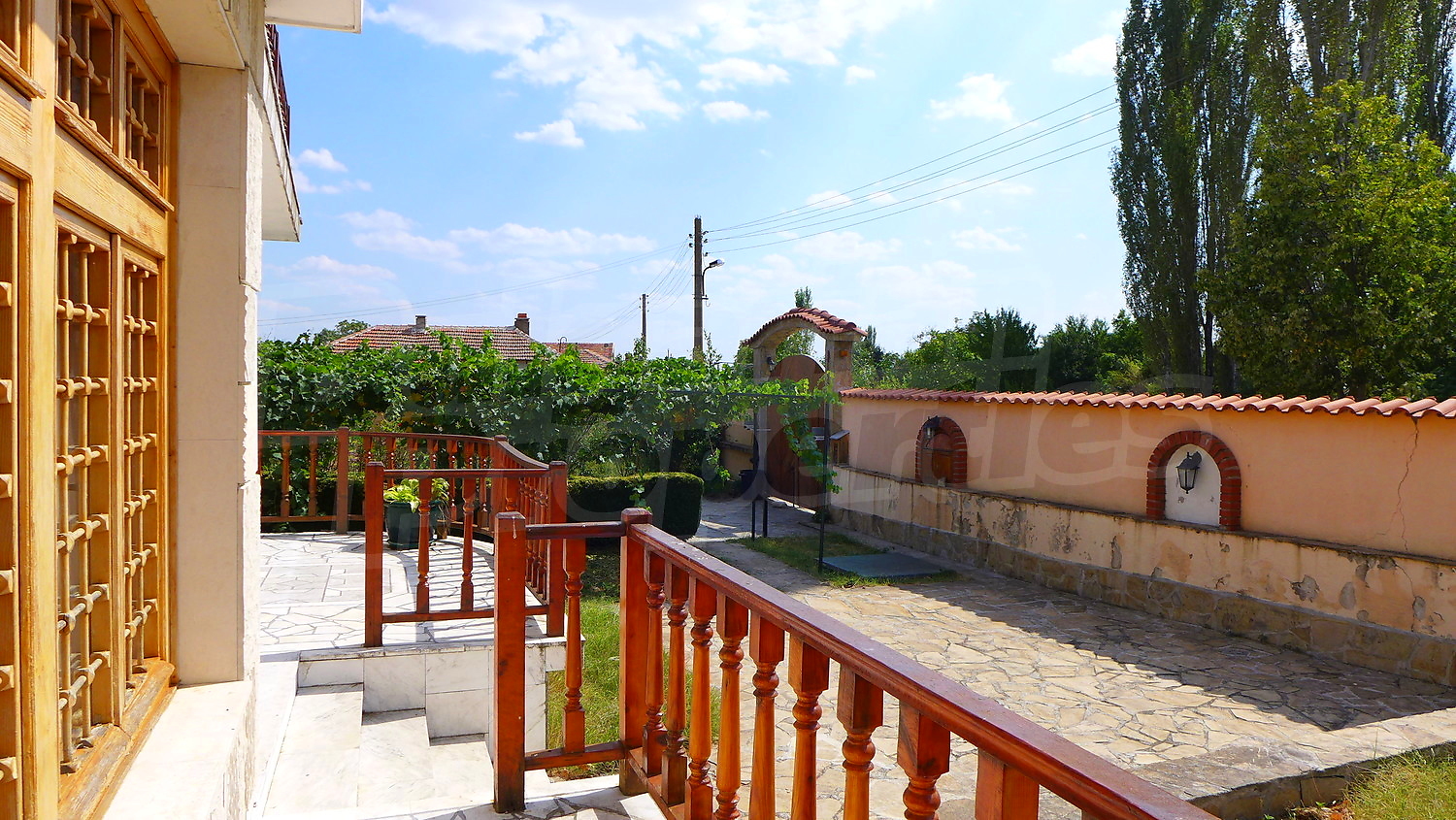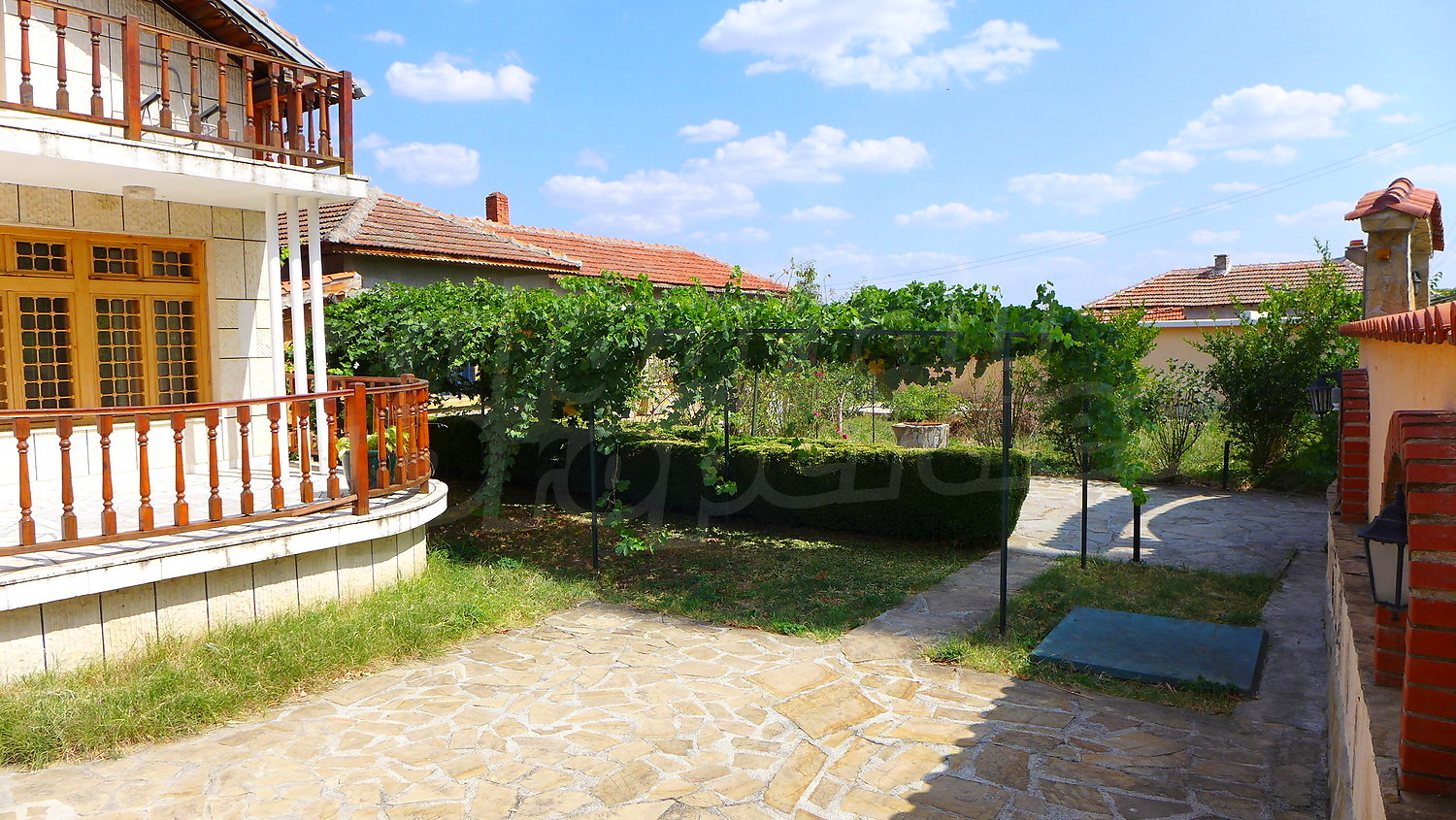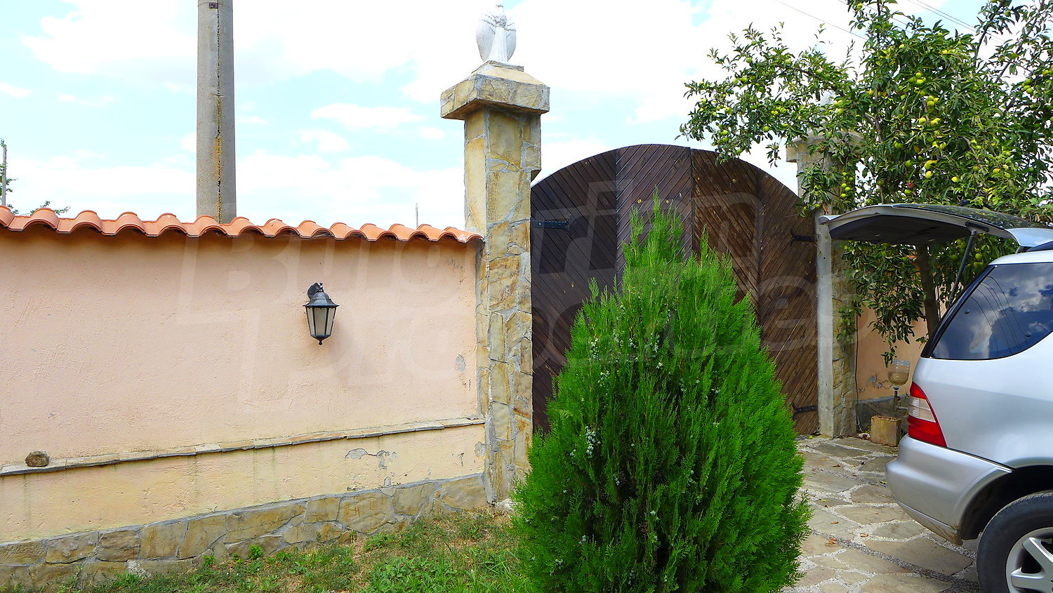 Накратко имотът се състои от голяма къща на два етажа, едноетажна къща за гости, склад, паркинг за 2 коли, гараж, стопански постройки и градина с големина 1525 кв. м.