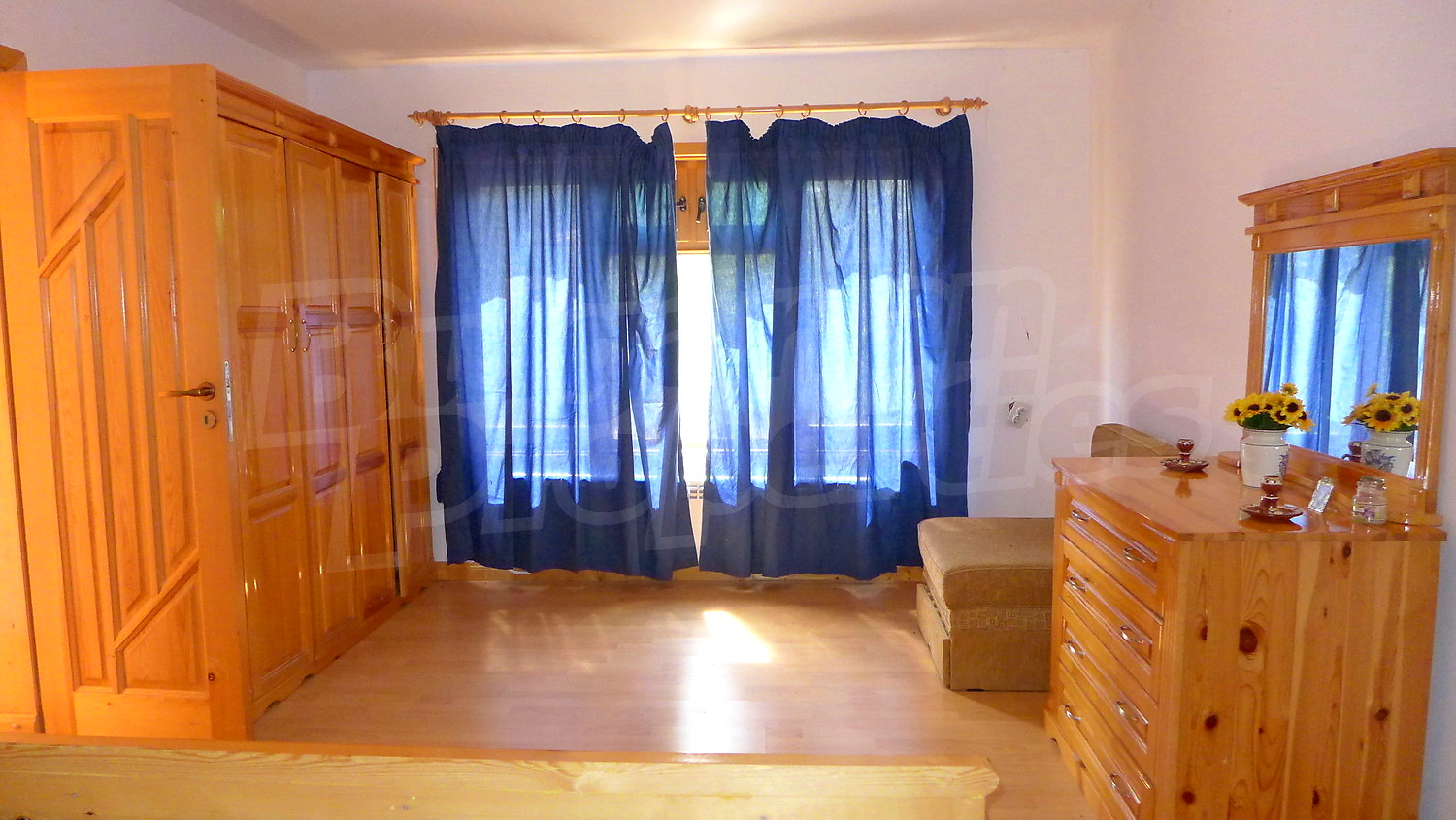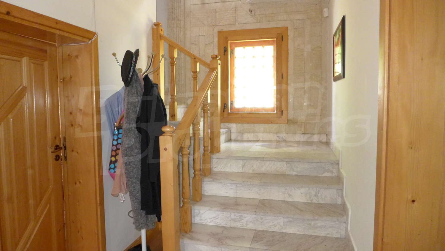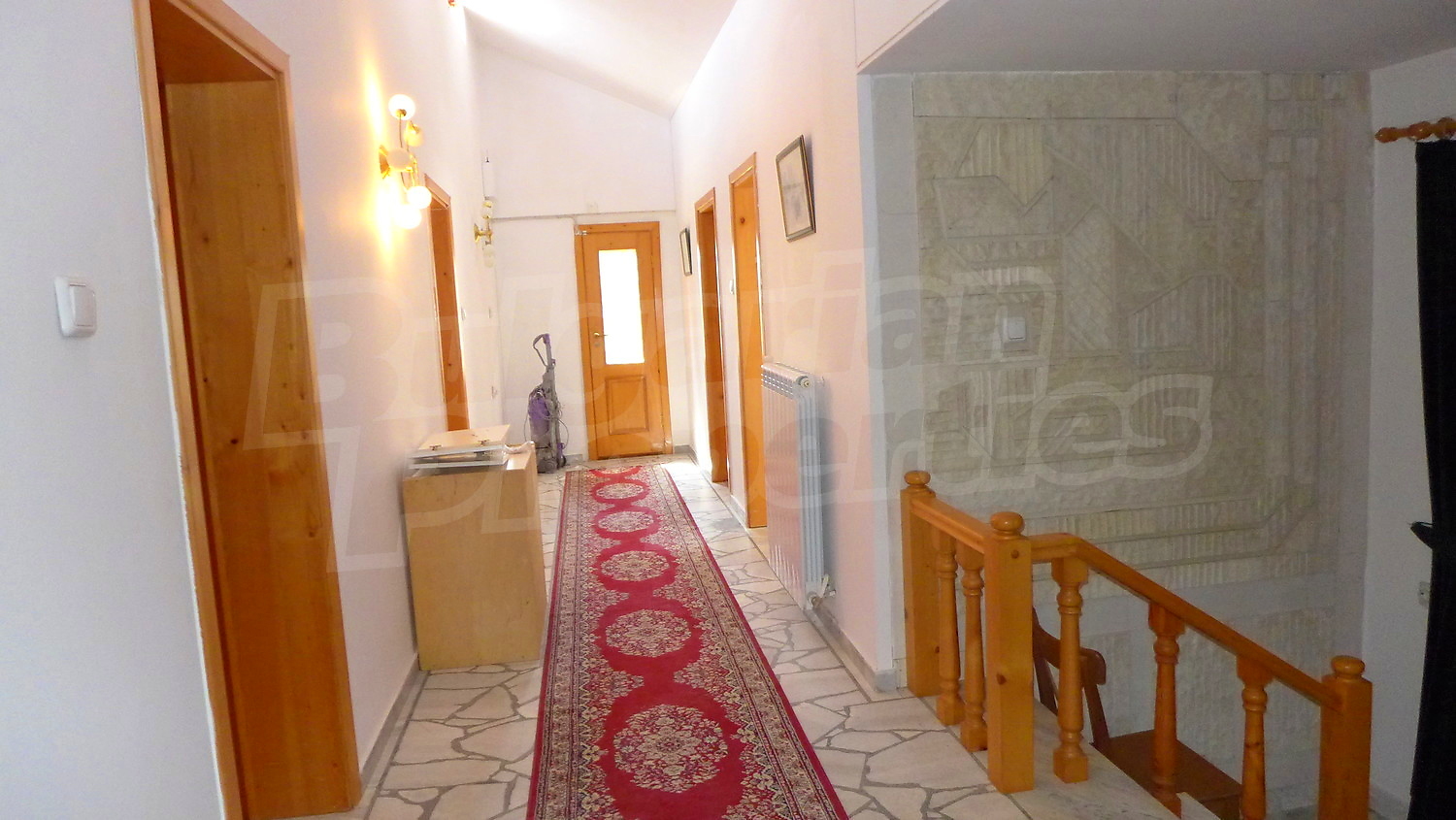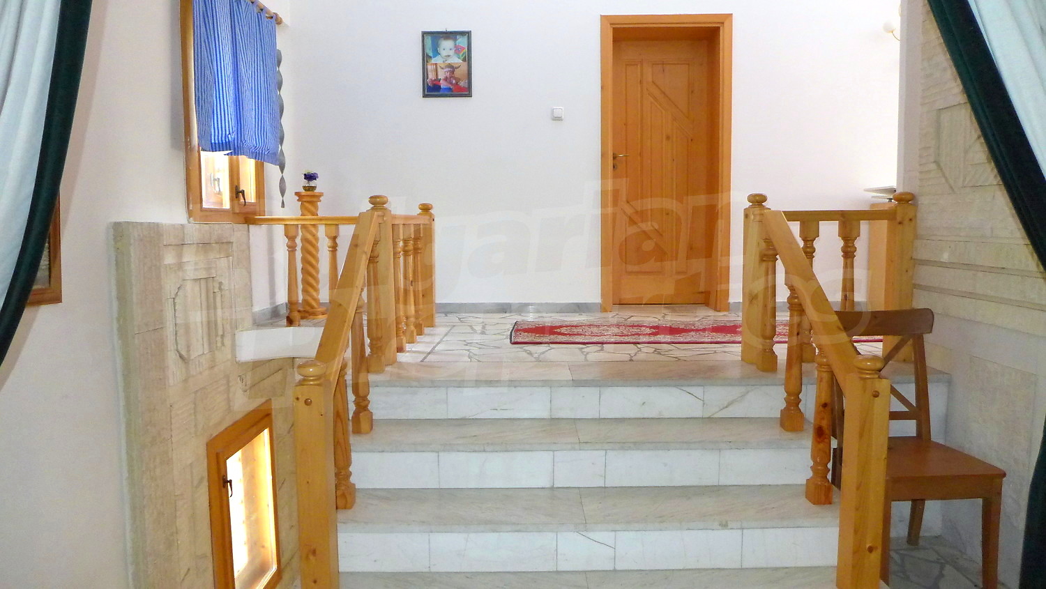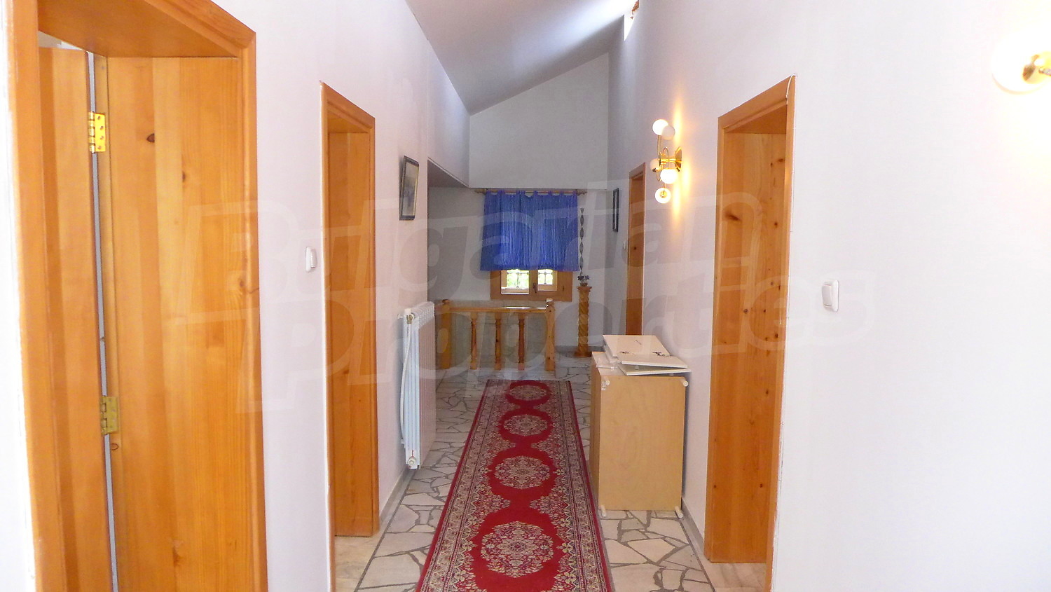 Втори етаж: Вътрешно стълбище води към него. Тук ще откриете коридор, 3 спални, баня с тоалетна и тераса. Стените са с латекс, подът е дюшеме, а в коридора - мрамор. Прозорците са с дървен стъклопакет.