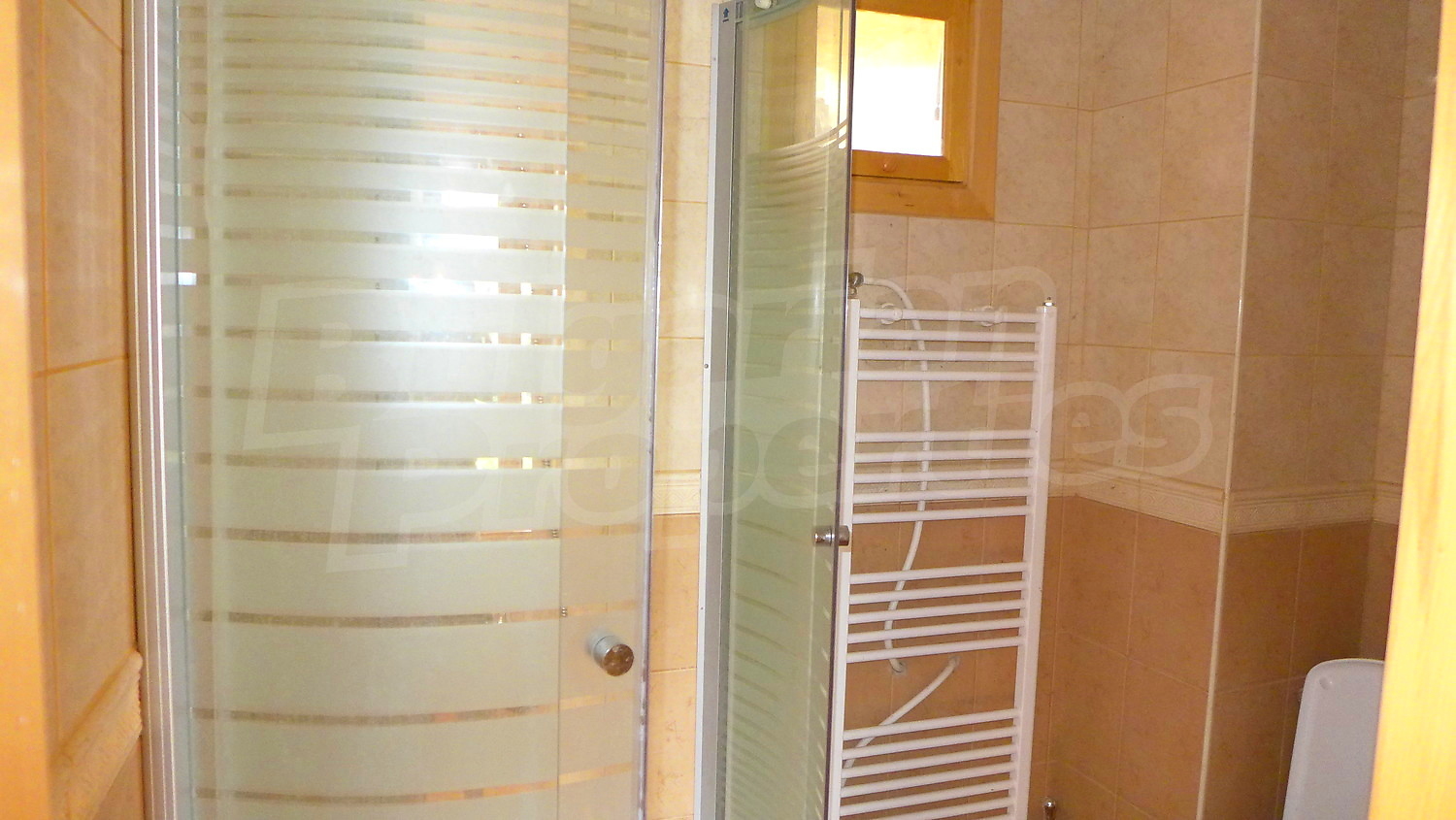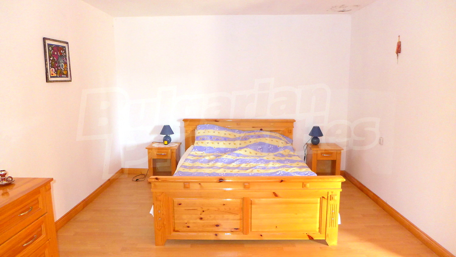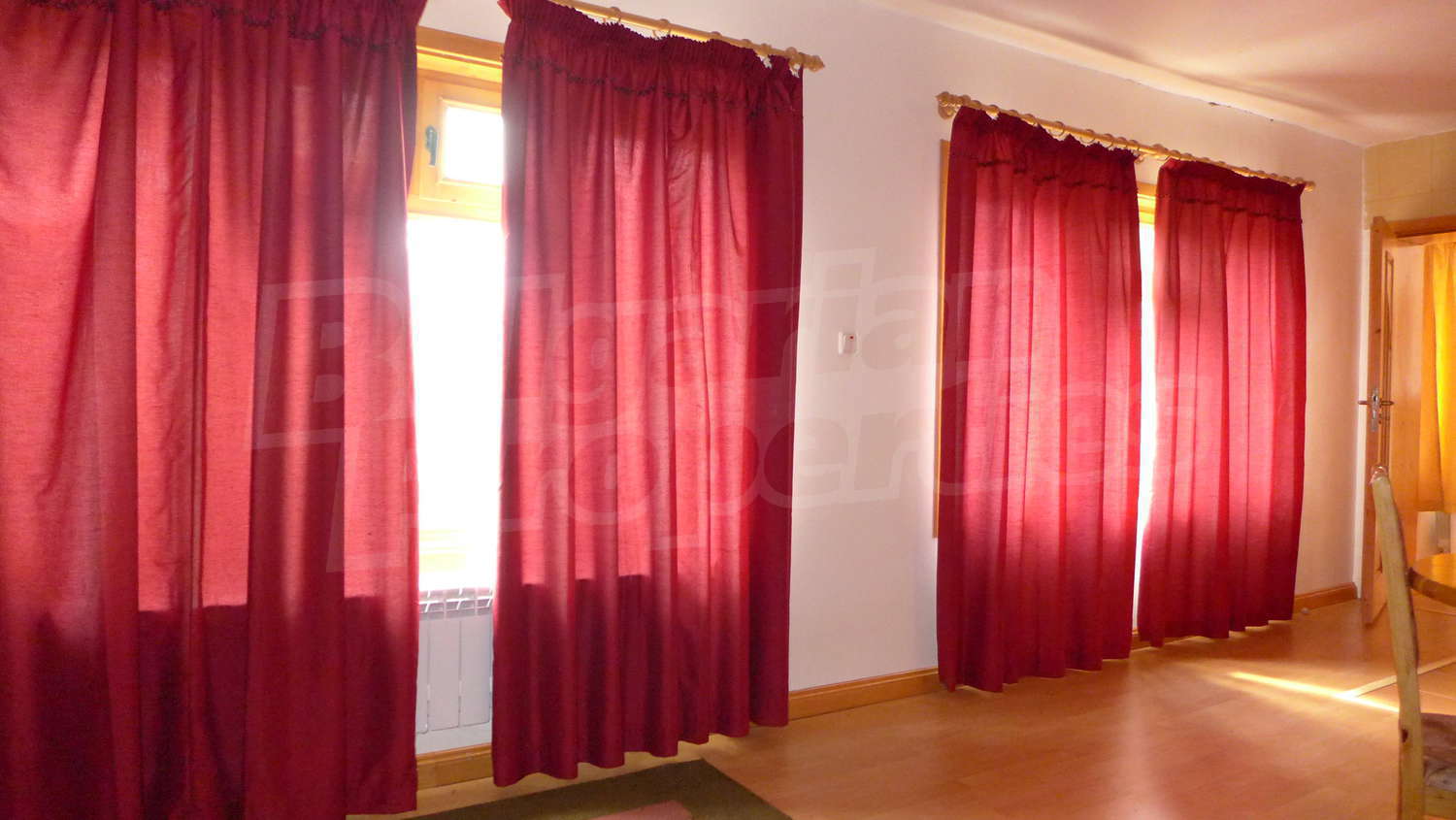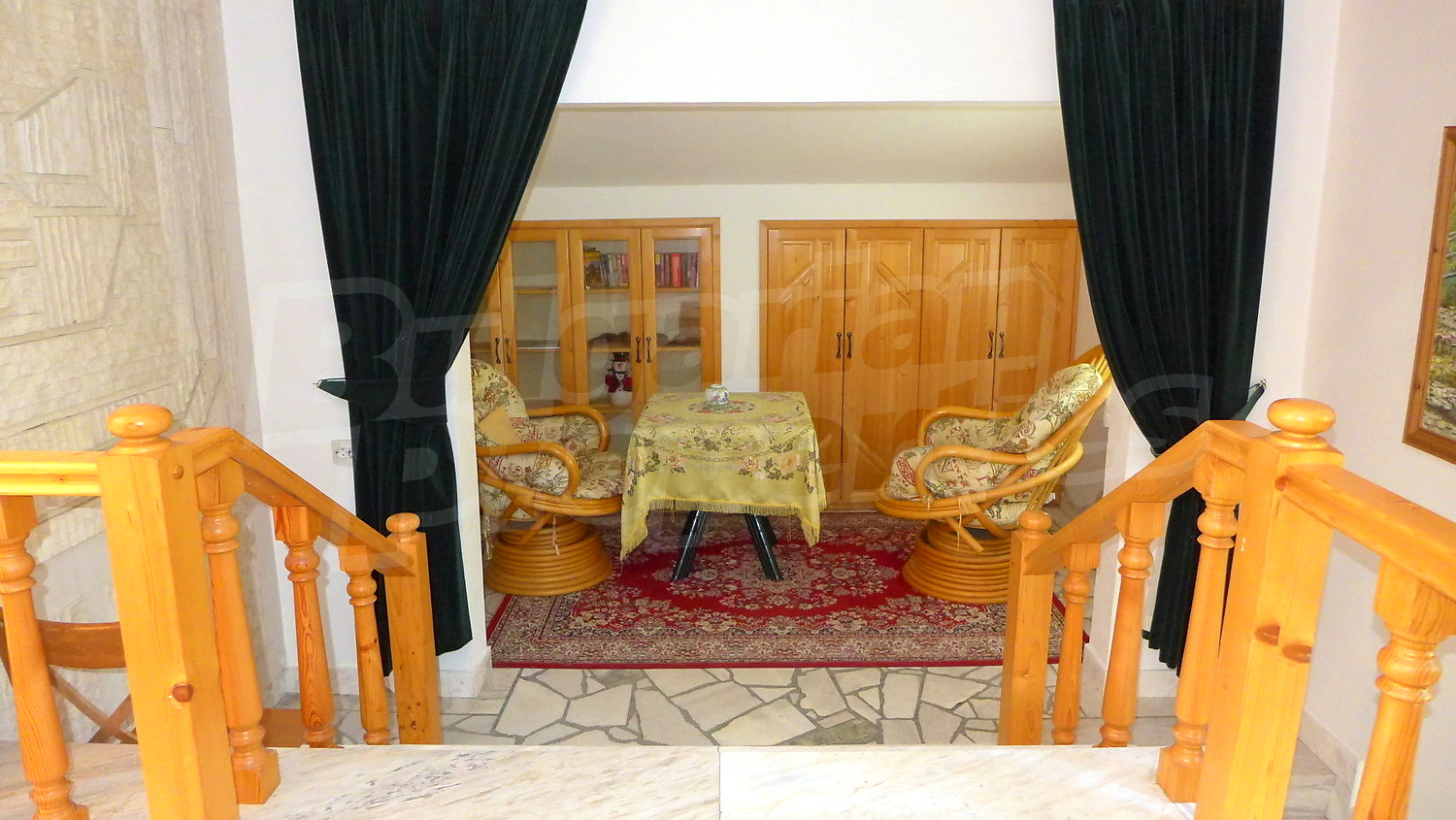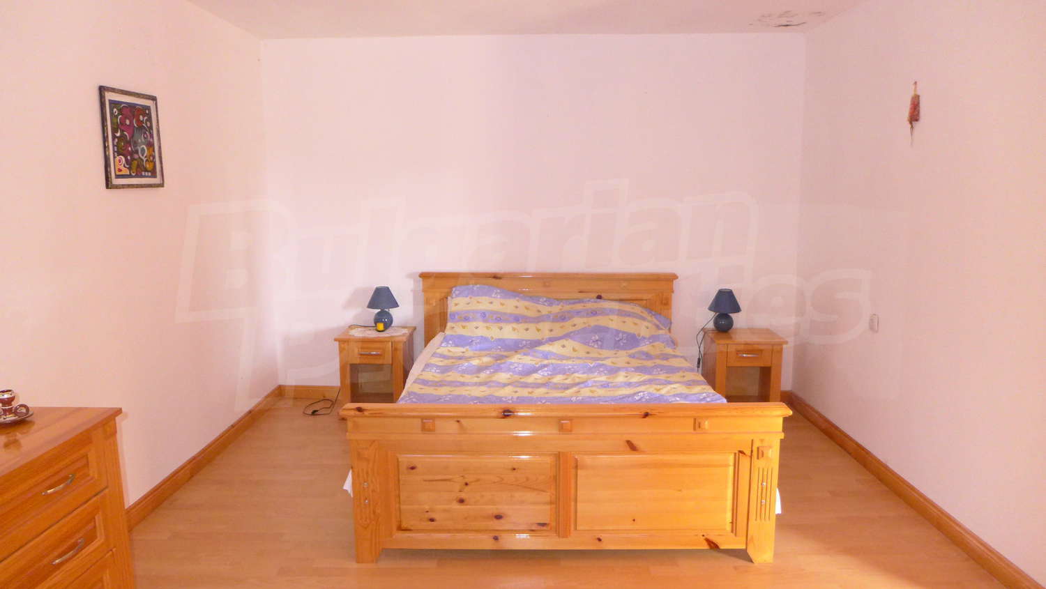 Втори етаж: Вътрешно стълбище води към него. Тук ще откриете коридор, 3 спални, баня с тоалетна и тераса. Стените са с латекс, подът е дюшеме, а в коридора - мрамор. Прозорците са с дървен стъклопакет.