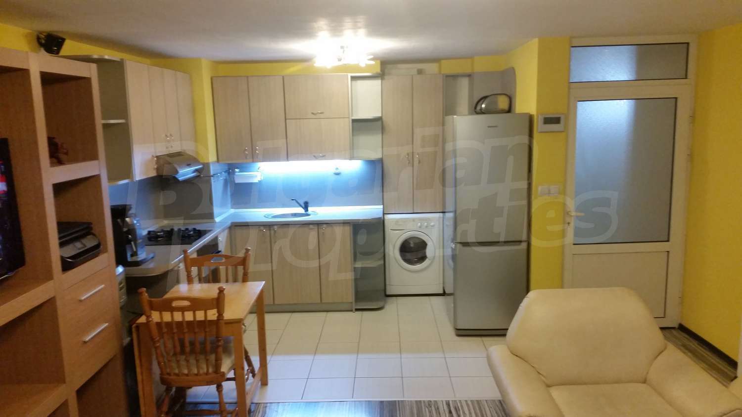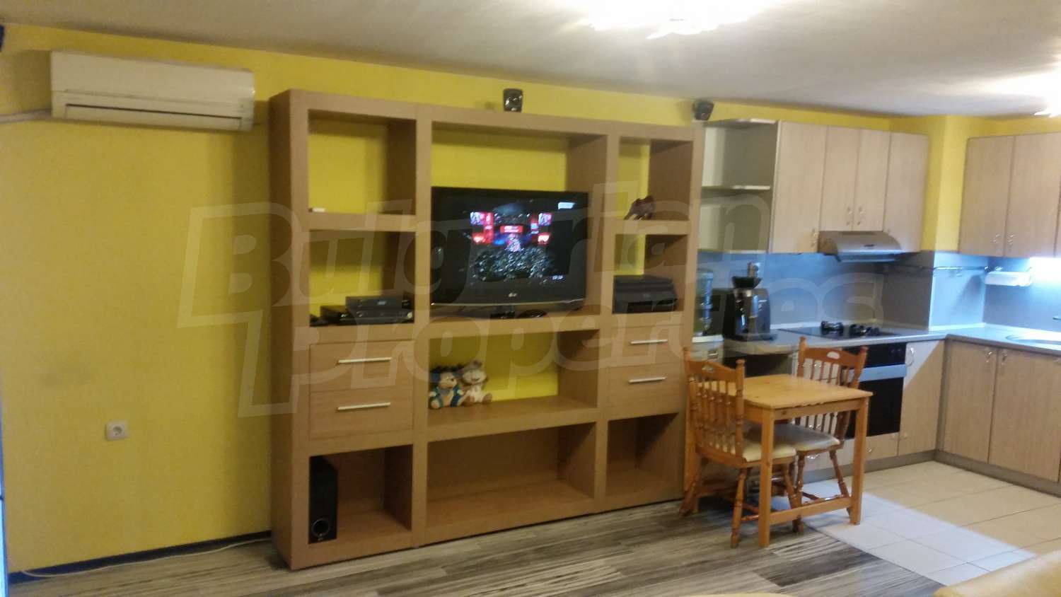 Площта е разпределена между хол с кухненски кът, 2 спални, баня с тоалетна и 2 тераси. Имотът се предлага със следната степен на завършеност: PVC дограма, блиндирана входна врата, вътрешна изолация, подове с ламиниран паркет и теракот, стени - с латекс и тапети.