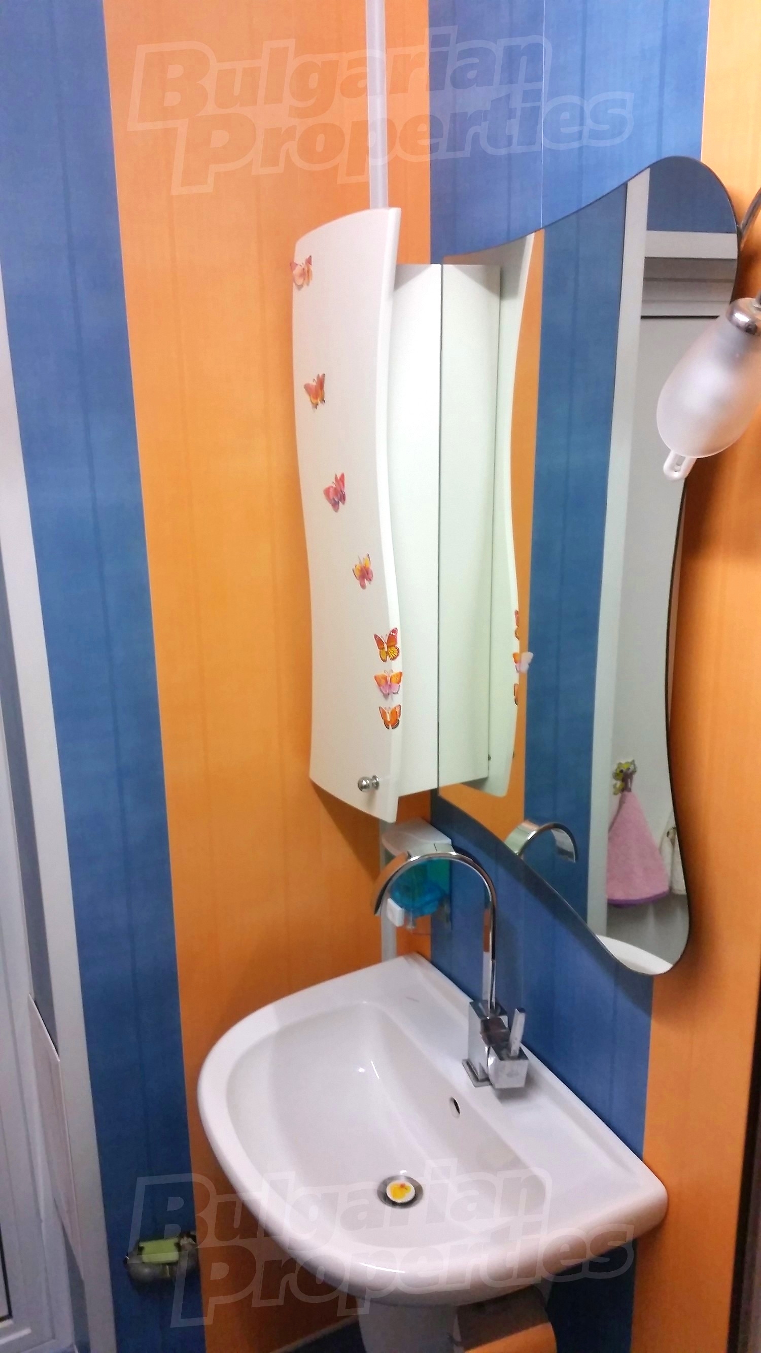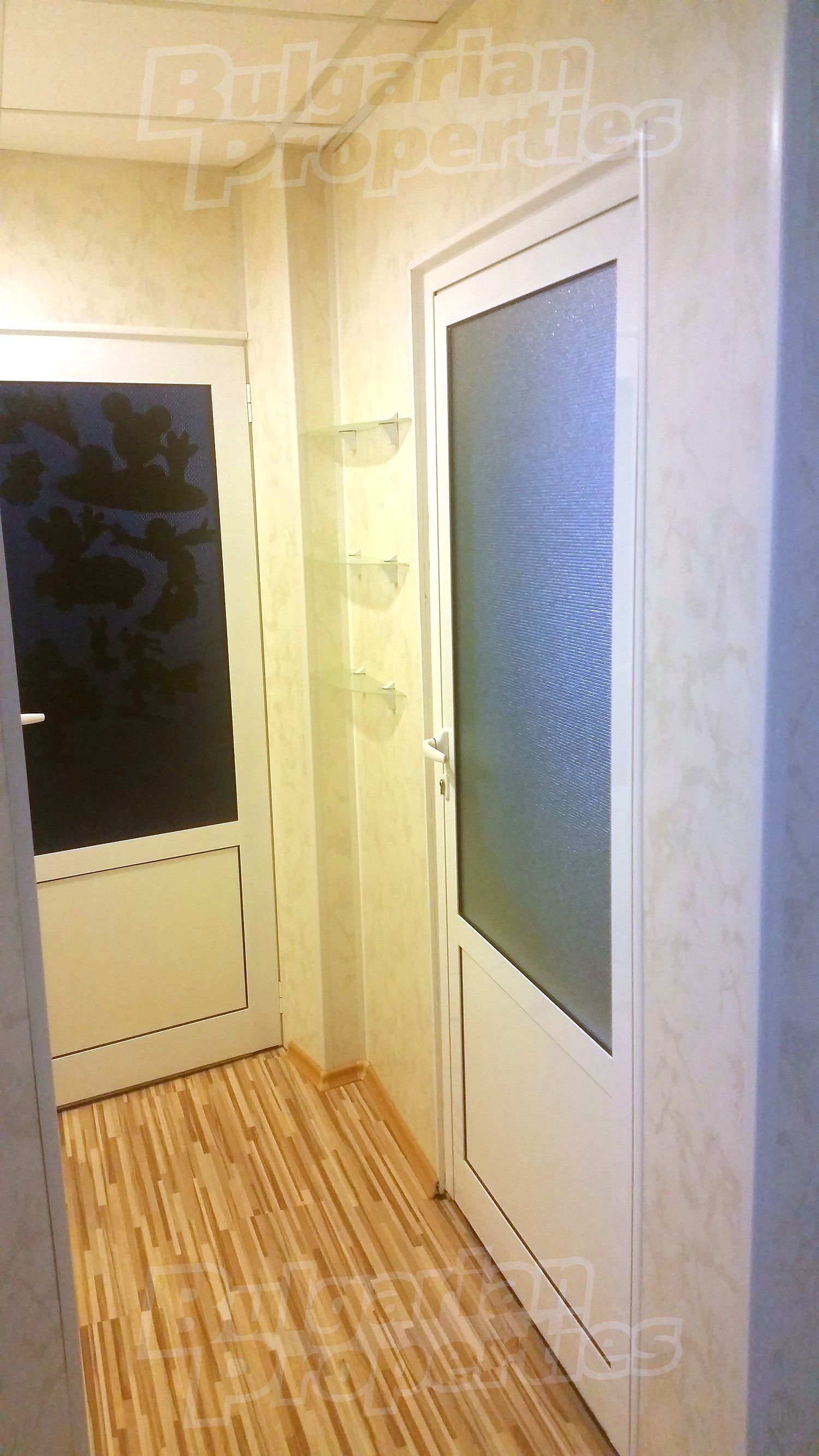 Площта е разпределена между хол с кухненски кът, 2 спални, баня с тоалетна и 2 тераси. Имотът се предлага със следната степен на завършеност: PVC дограма, блиндирана входна врата, вътрешна изолация, подове с ламиниран паркет и теракот, стени - с латекс и тапети.