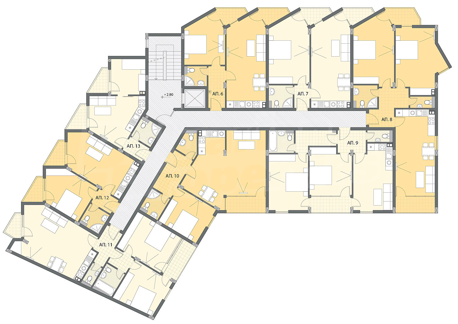 Жилищата се предлагат за продажба на шпакловка и замазка, с висококачествени петкамерни PVC дограми, блиндирани входни врати, светла етажна височина от 2.60 м. Към всеки апартамент има мазе, включено в крайната цена. В сградата е предвиден асансьор, луксозни общи части по дизайнерски проект, системи за контрол на достъпа и наблюдение, както и озеленени пространства 552 кв.м. Отоплението е на газ. Имотите са окабелени за телефон, интернет и кабелна телевизия.