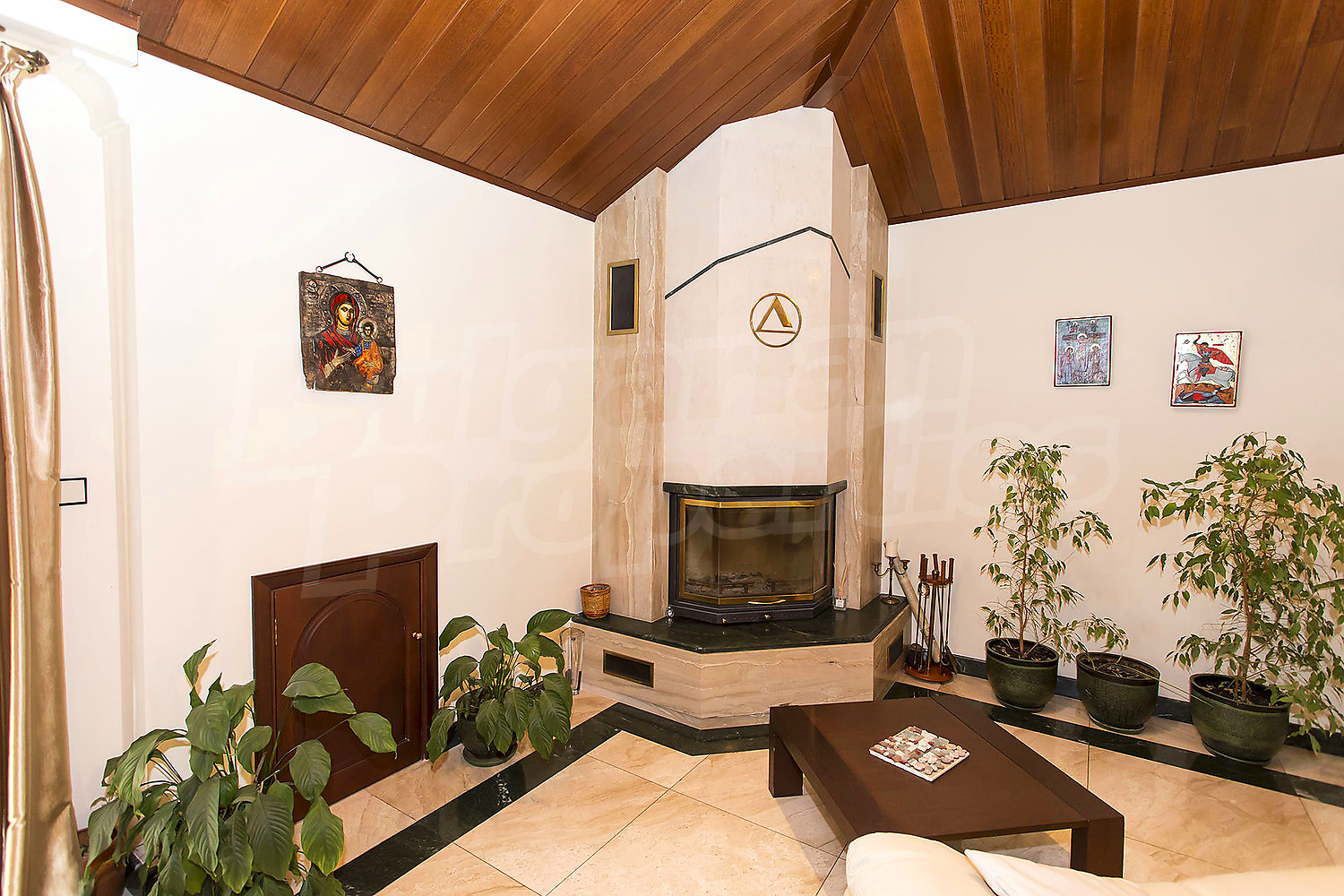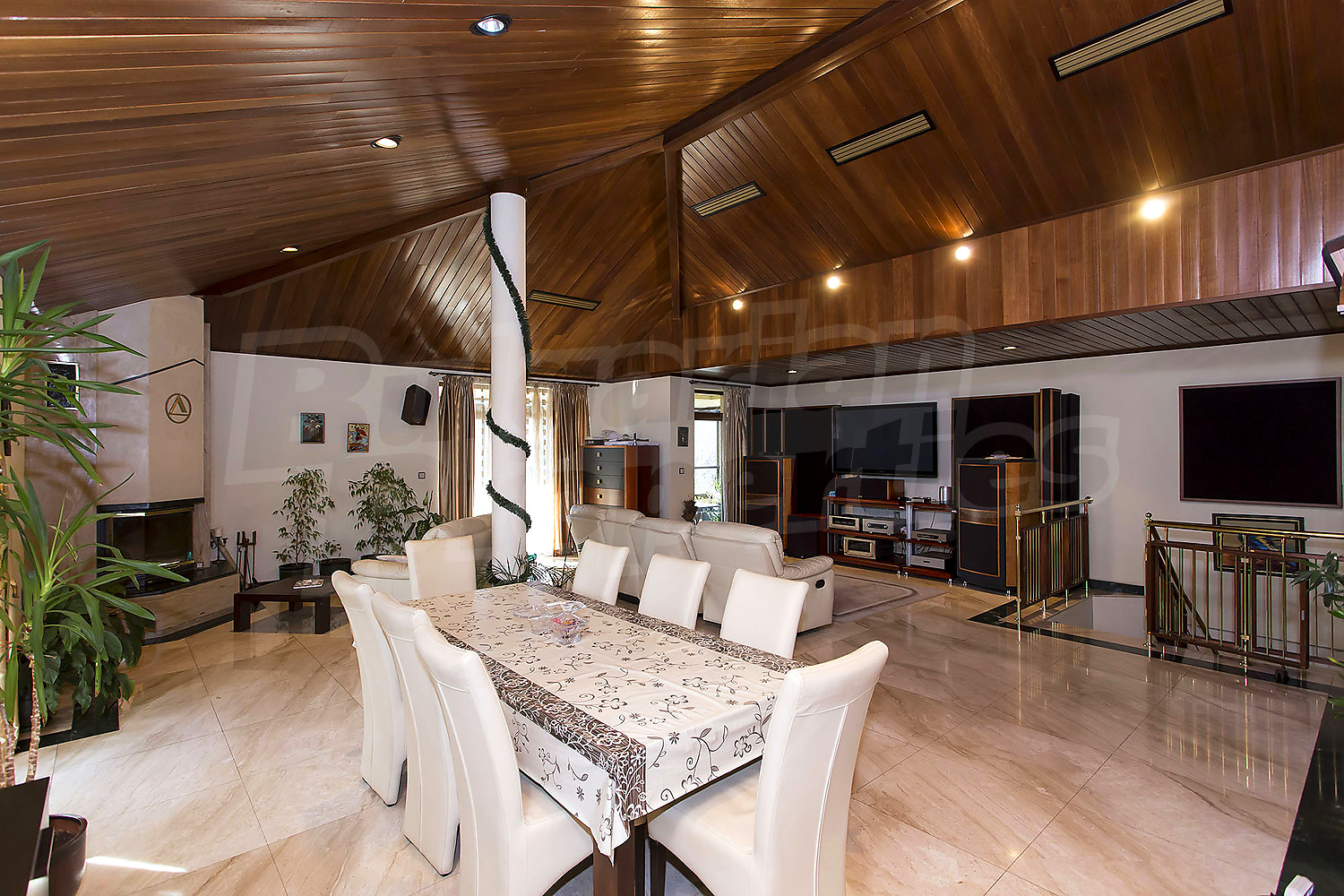 • хол 150 кв.м. с височината тавана от 4.30 м, решен с интериор тип баварска къща