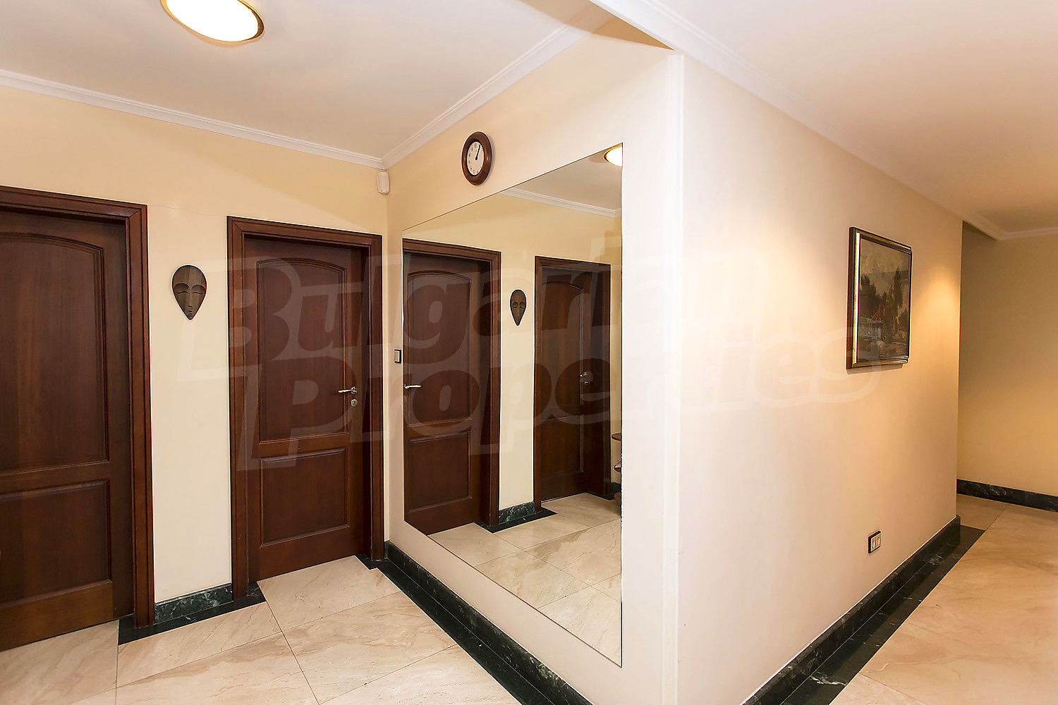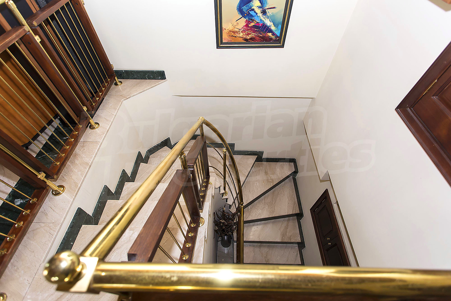 • Подови настилки: гранитогрес и фаянс в баните, спални с ламиниран паркет, всички останали помещения са с италиански мрамор Daino reale