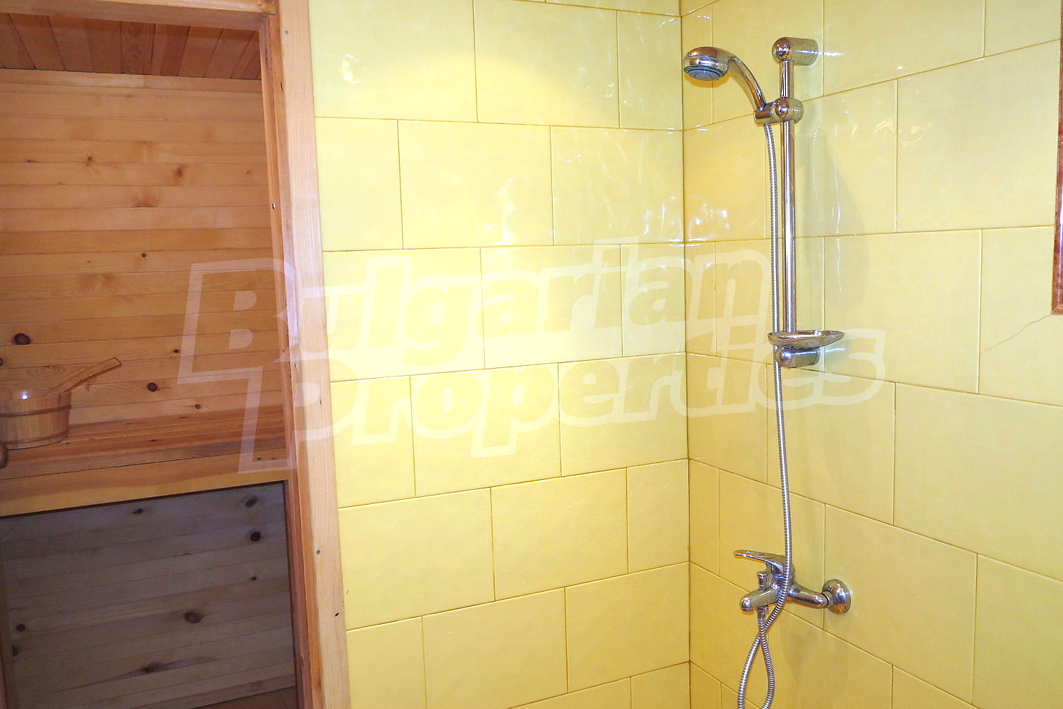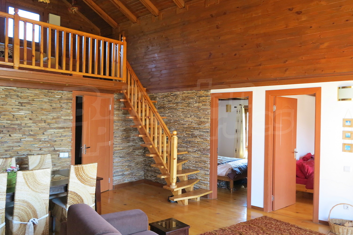 Имотът с площ 69.90 кв.м. предлага уютен дневен тракт с френски прозорци и камина, кухня с трапезна част, удобна за шестима, 3 спални, 2 бани, сауна, мокро помещение с пералня и веранда.