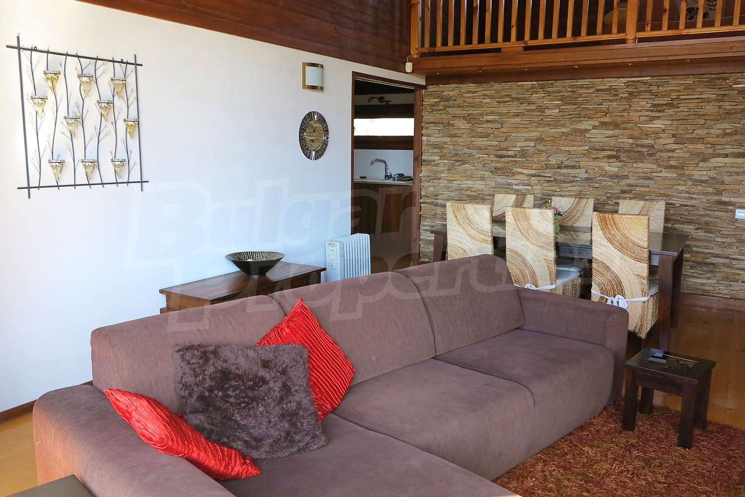 Жилището се продава напълно обзаведено и оборудвано – на разположение на бъдещите собственици има електрически уреди за отопление, хладилник, готварска печка, миялна машина, бойлер. Холът и спалните са с всички необходими мебели. В мокрото помещение има перална машина. От верандата се открива прекрасна гледка към планината.
