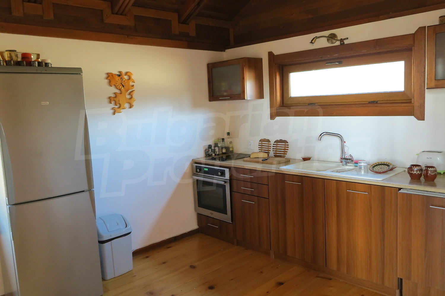 Подовите настилки са дюшеме и теракот, стените са боядисани с латекс, а дограмата на прозорците е PVC.