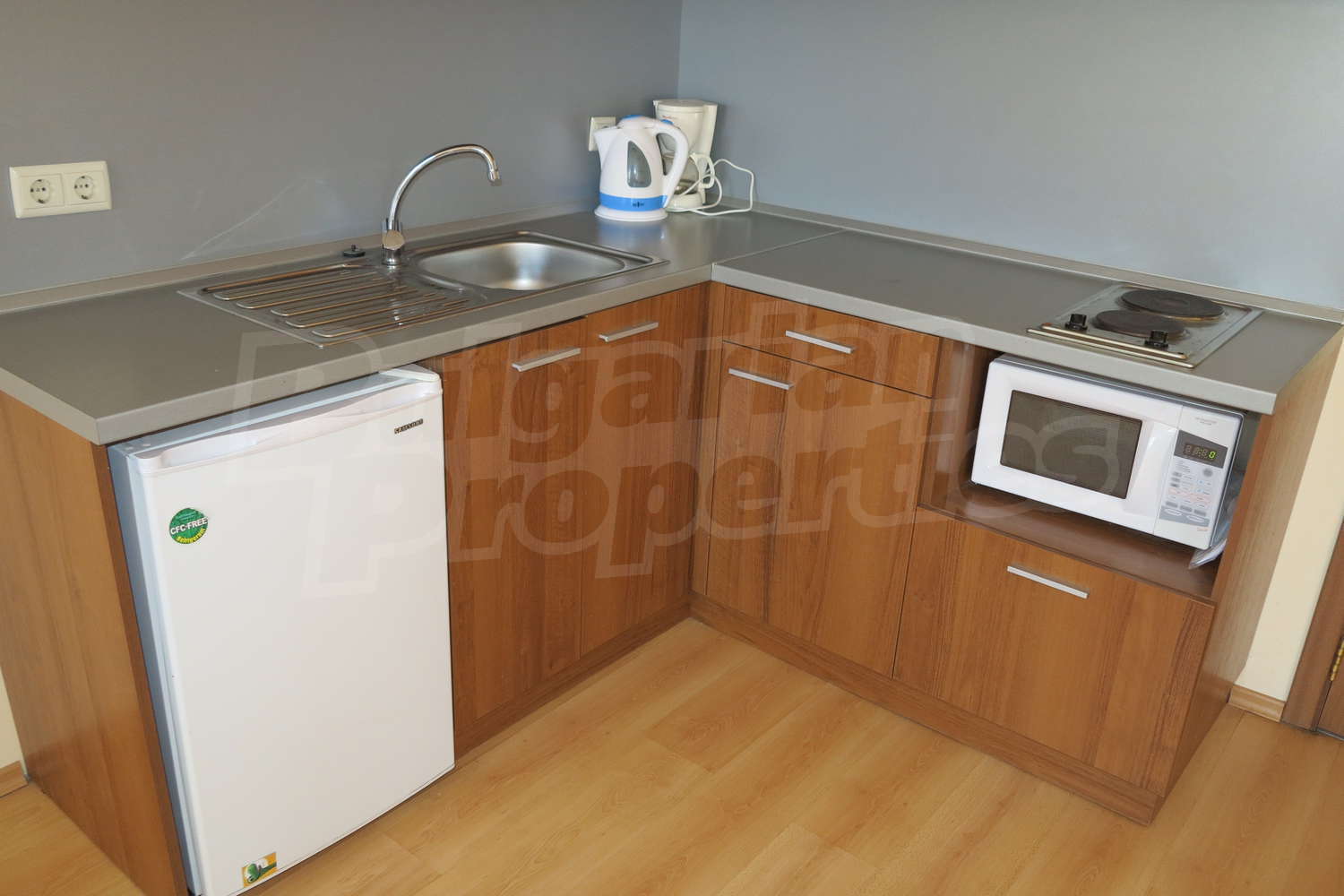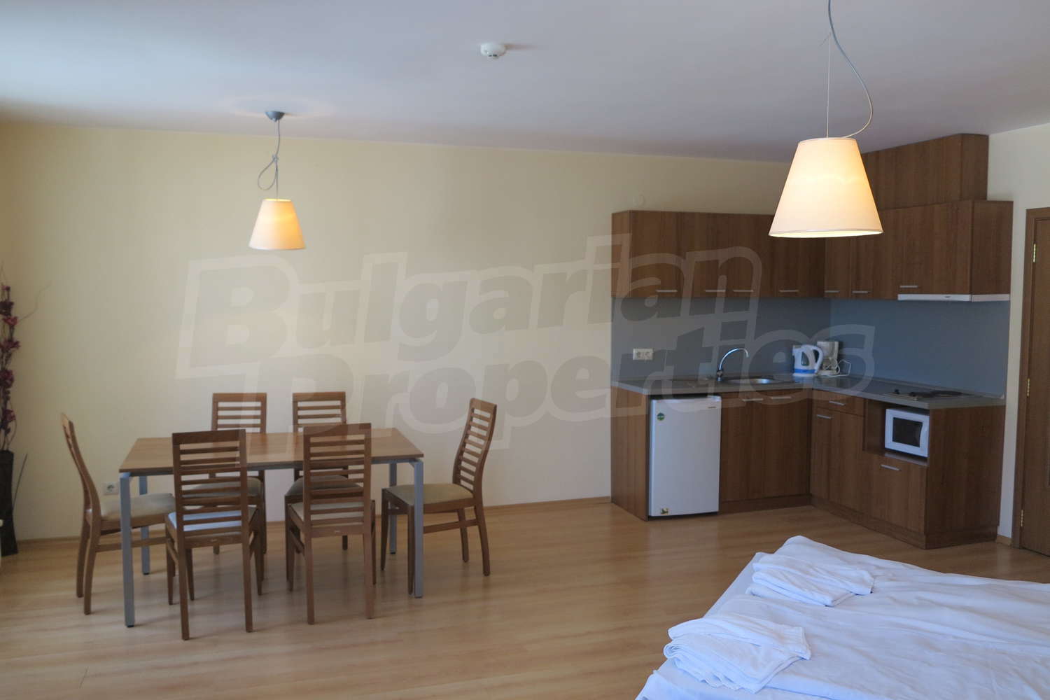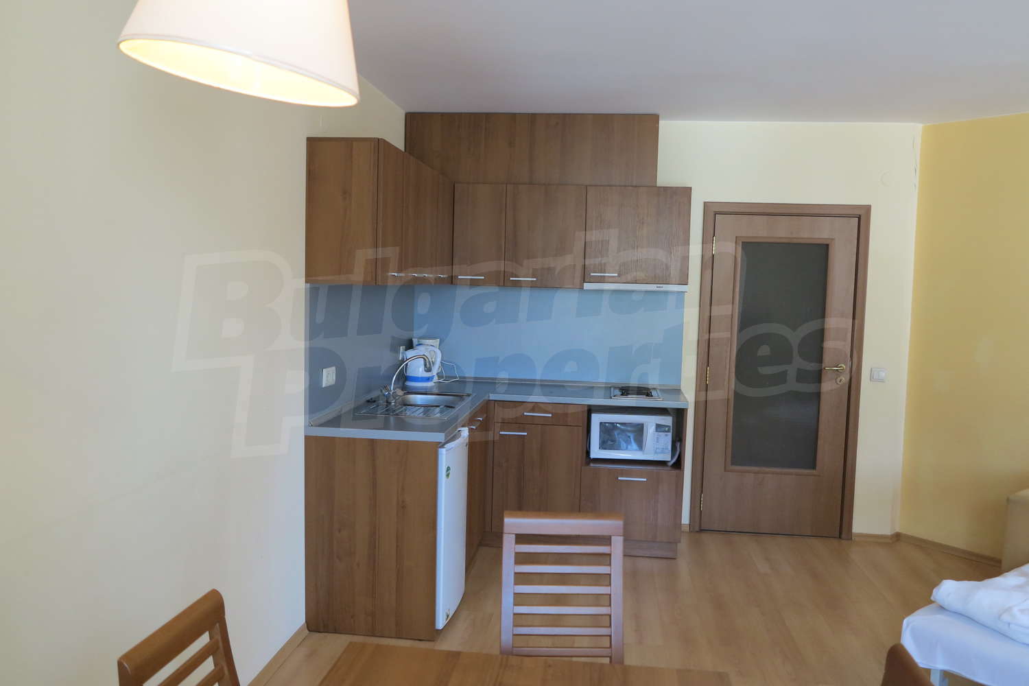 •	Кухня -  плот, мивка,  шкафове, котлони , абсорбатор, хладилник, микровълнова,  маса с 4 стола;