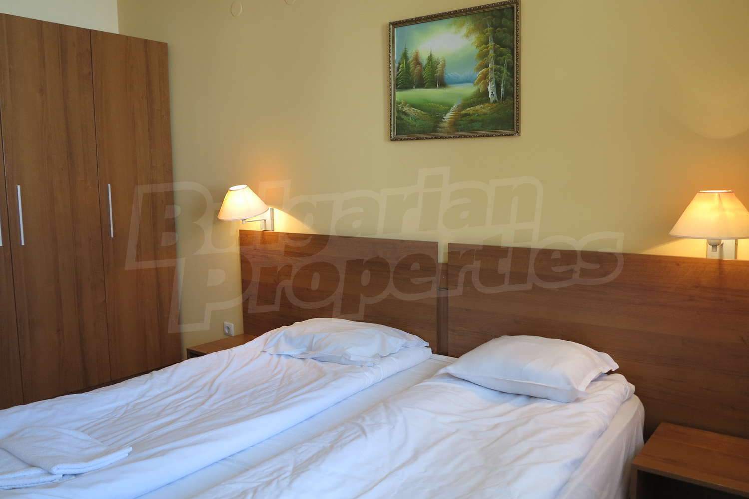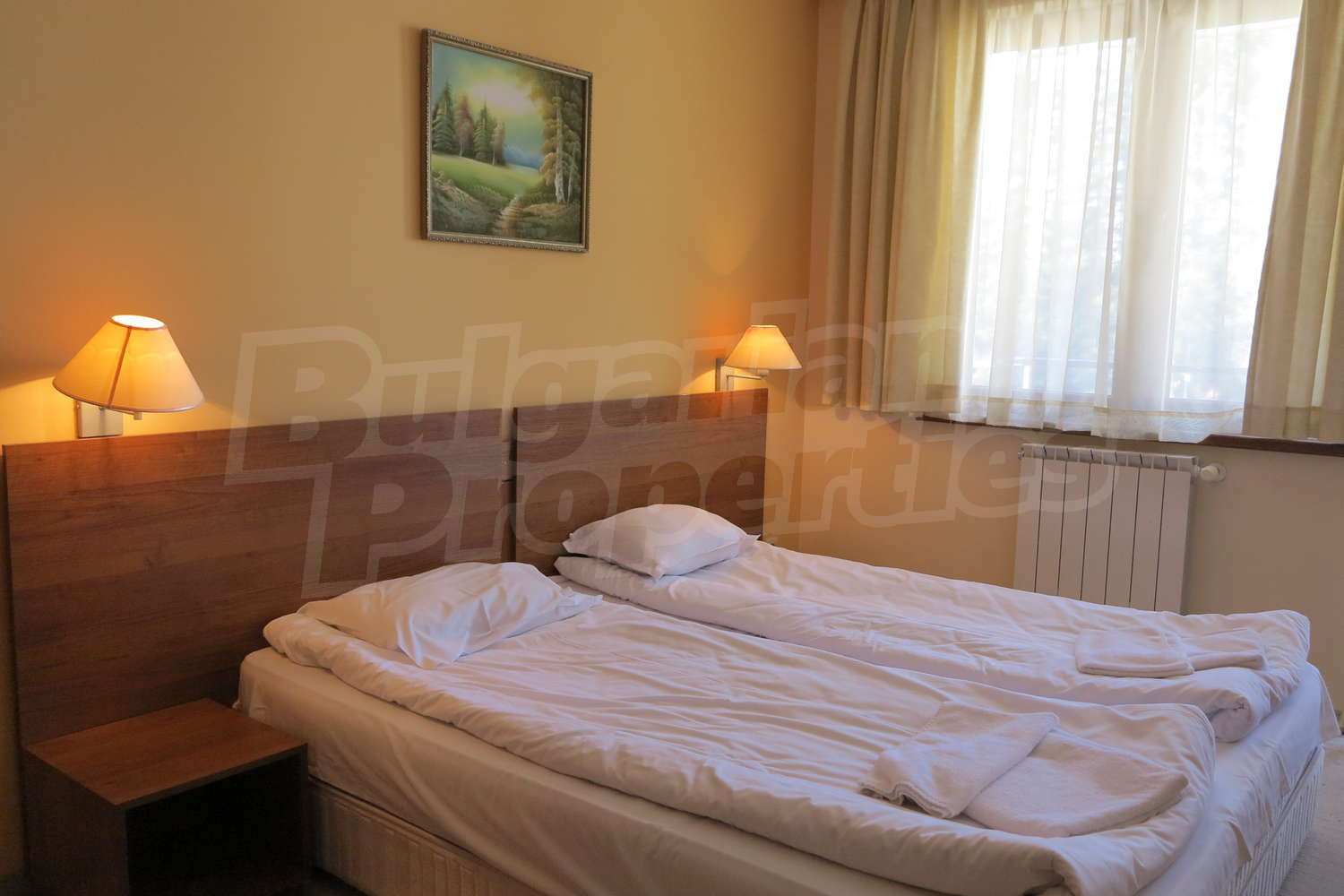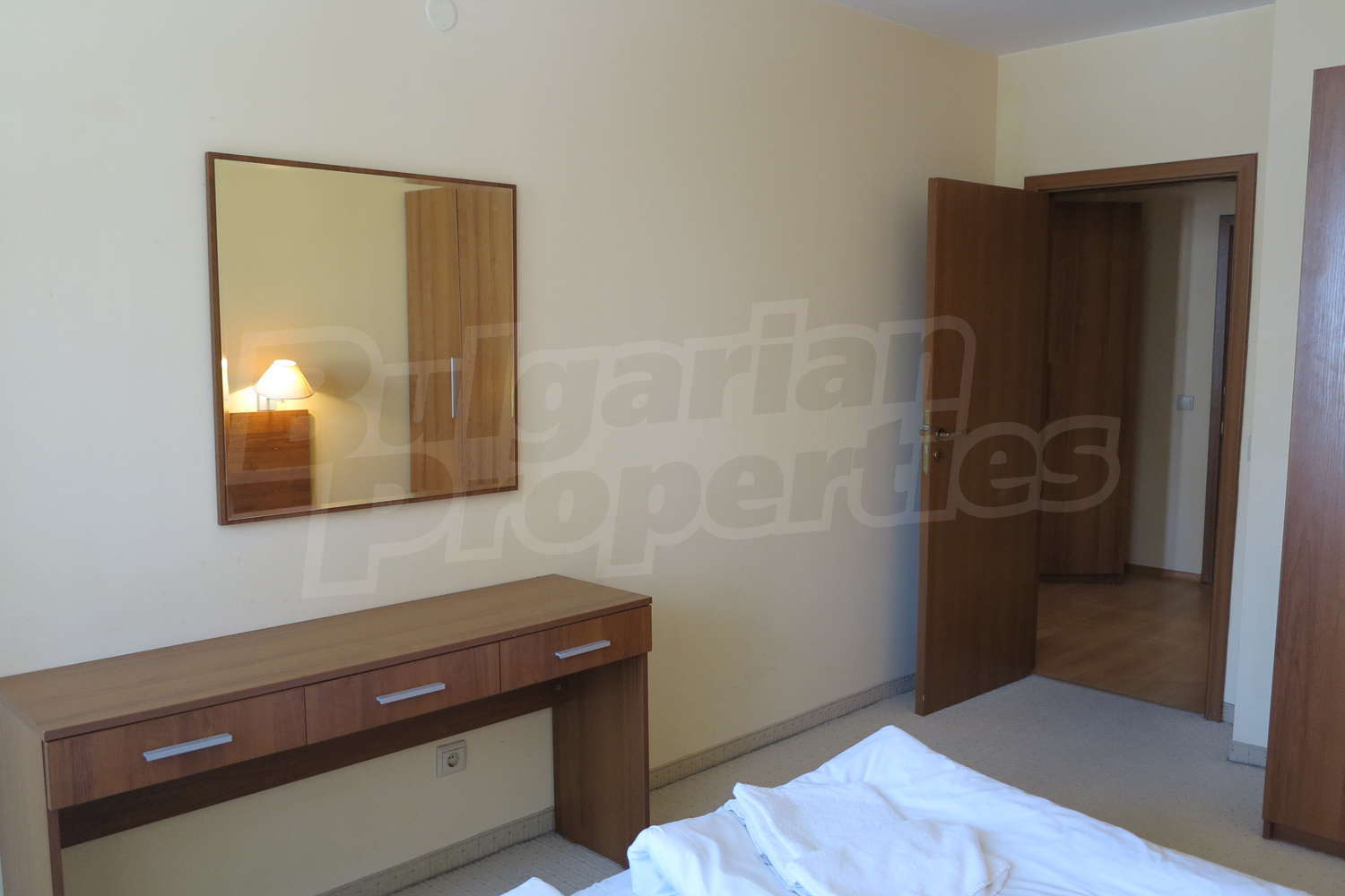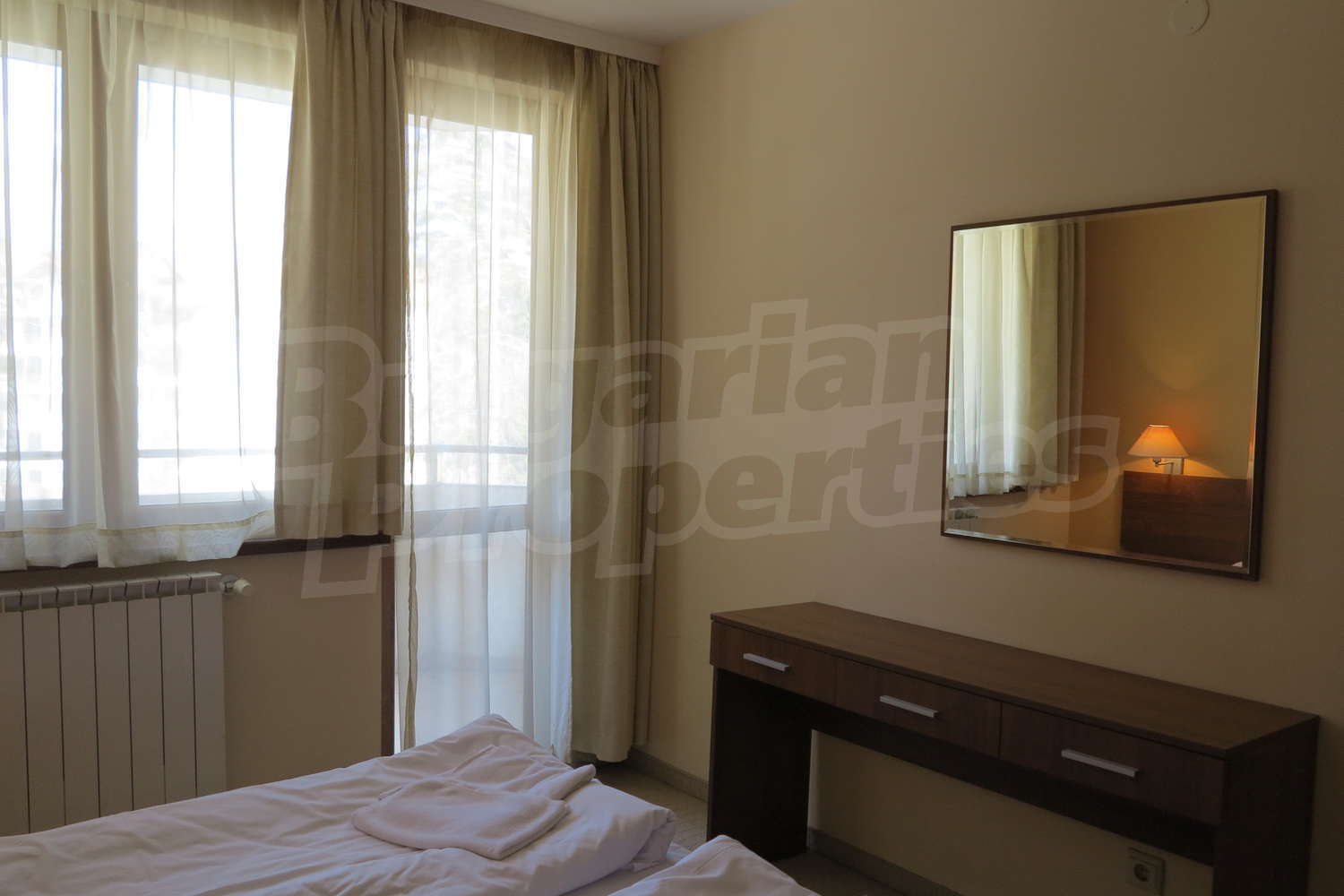 •	Спалня -   двойно легло, нощни шкафчета, тоалетка с огледало, гардероб;