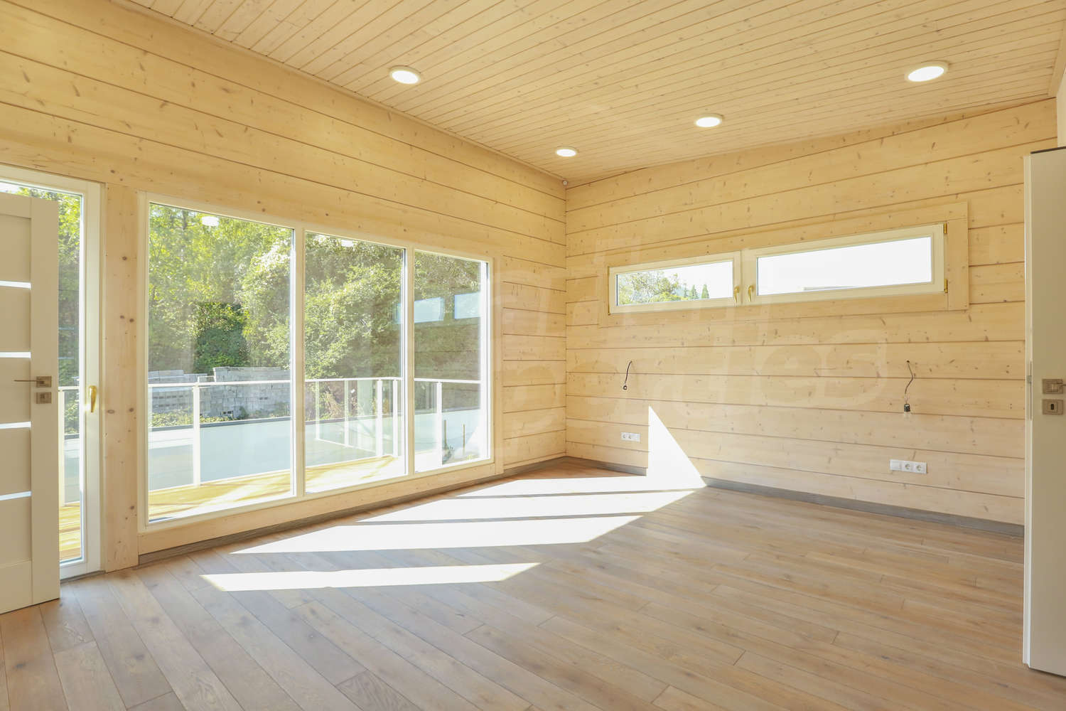 • Качествени къщи от масивни дървени греди, внос от Финландия, правени специално за проекта, осигуряващи здравословна атмосфера вътре и висок стандарт на живот, топли и уютни през зимата и прохладни през лятото.