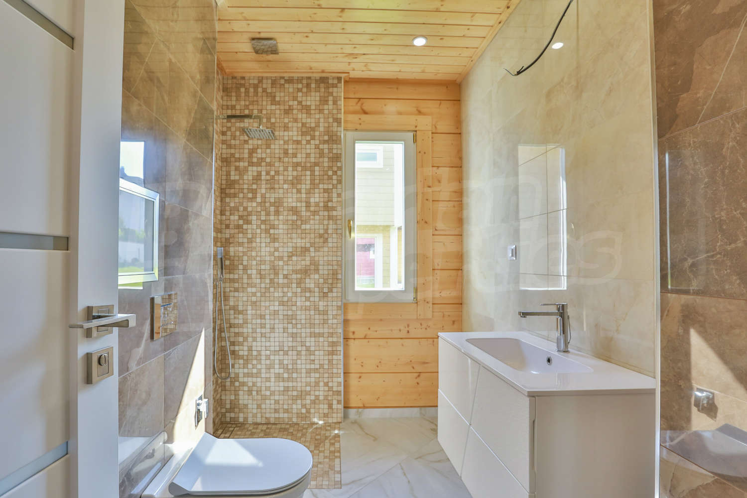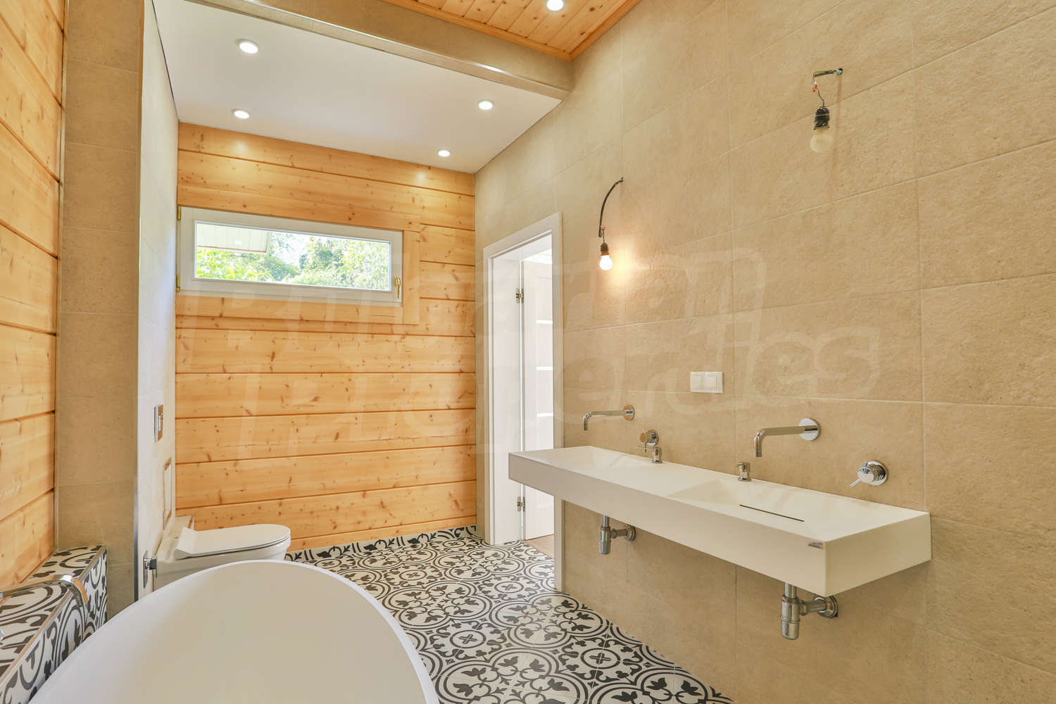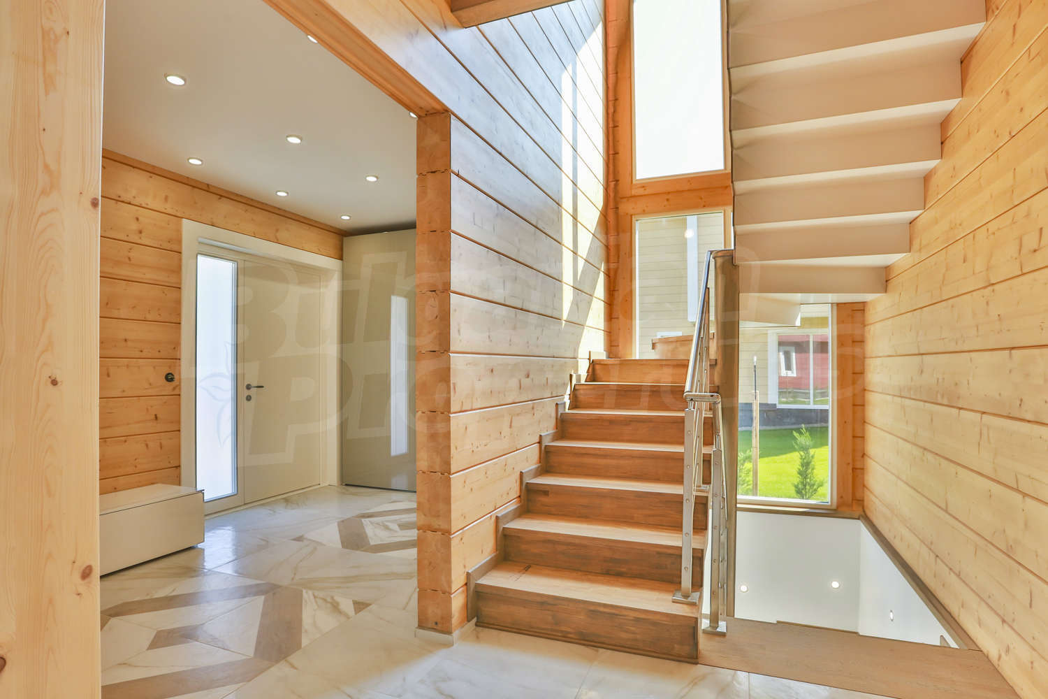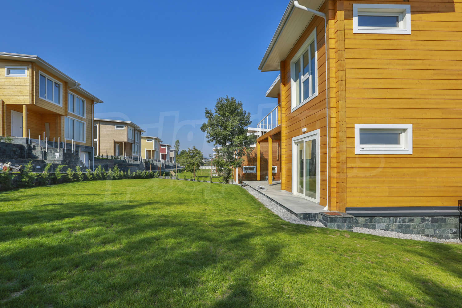 • Качествени къщи от масивни дървени греди, внос от Финландия, правени специално за проекта, осигуряващи здравословна атмосфера вътре и висок стандарт на живот, топли и уютни през зимата и прохладни през лятото.