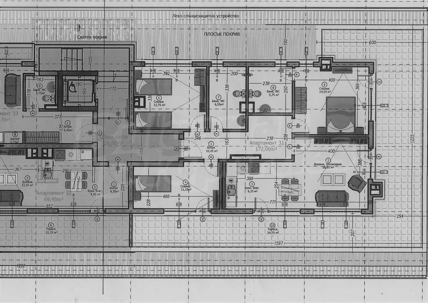 Тристаен апартамент в нова сграда в Студентски град, недалеч от Зимния Дворец. Жилището е с обща площ от 252 кв.м. (застроена площ 172 кв.м.), намира се на пети жилищен етаж над партер, изложението е югоизток. Предава се в следната степен на завършеност: