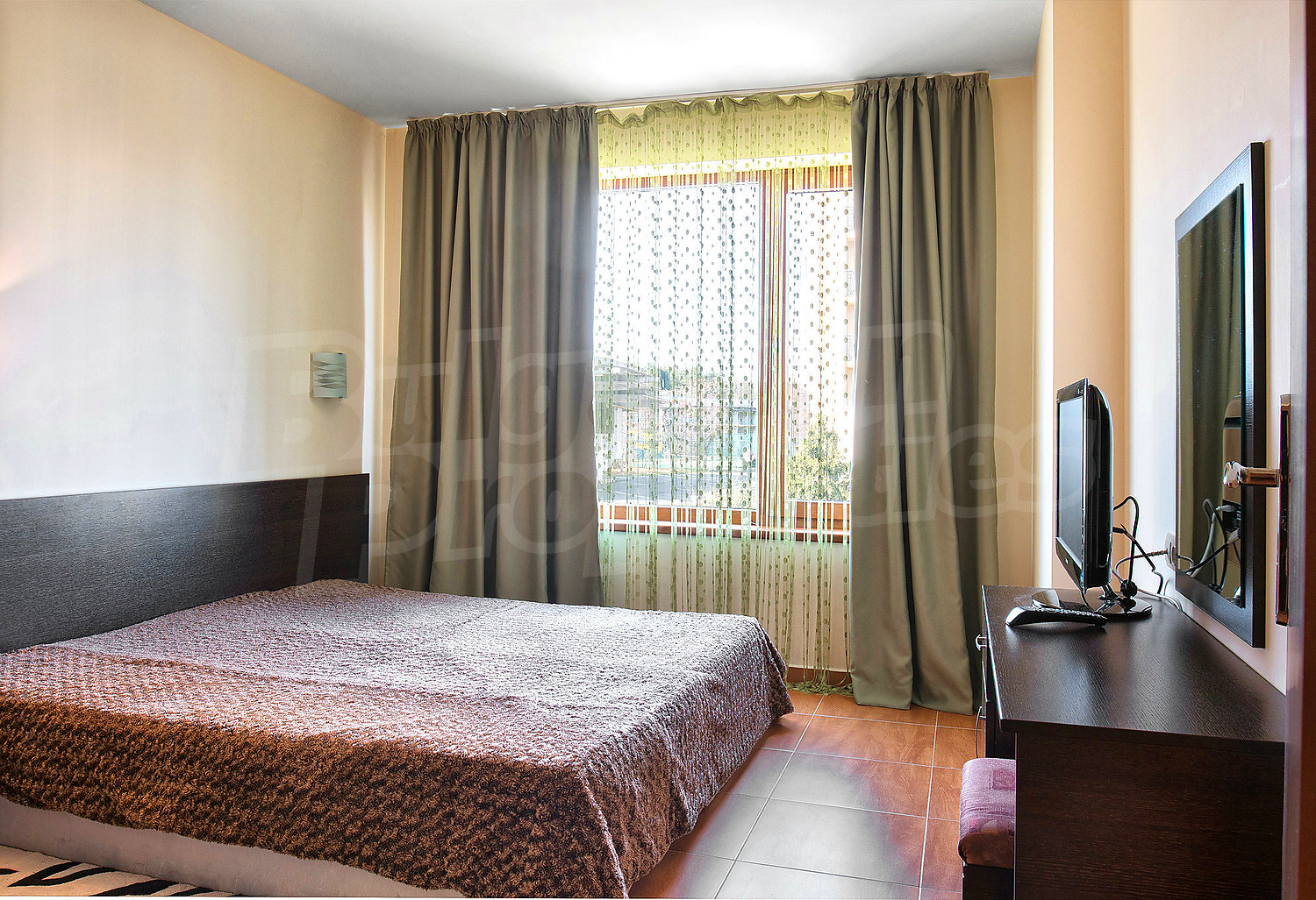 Жилището с обща площ от 66.69 кв.м. и чиста площ 57 кв.м., намира се на втори етаж. Състои се от една спалня, дневна с кухненски бокс, баня с душ кабина и тоалетна и балкон. Апартаментът е много удобен и има всичко необходимо за комфортен престой - телевизор във всяка стая, сешоар, пералня, климатик, фурна, електрически котлони, аспиратор, маса за хранене със четири стола. От балкона се разкрива гледка към вътрешния двор на комплекса с басейна и към морето. Имотът се предлага със следната степен на завършеност: PVC дограма, двоен стъклопакет, интериорни врати, подове с теракот и стени боядисани с латекс. Годишната такса за поддръжка на комплекса е 9.5 Евро на кв. м.