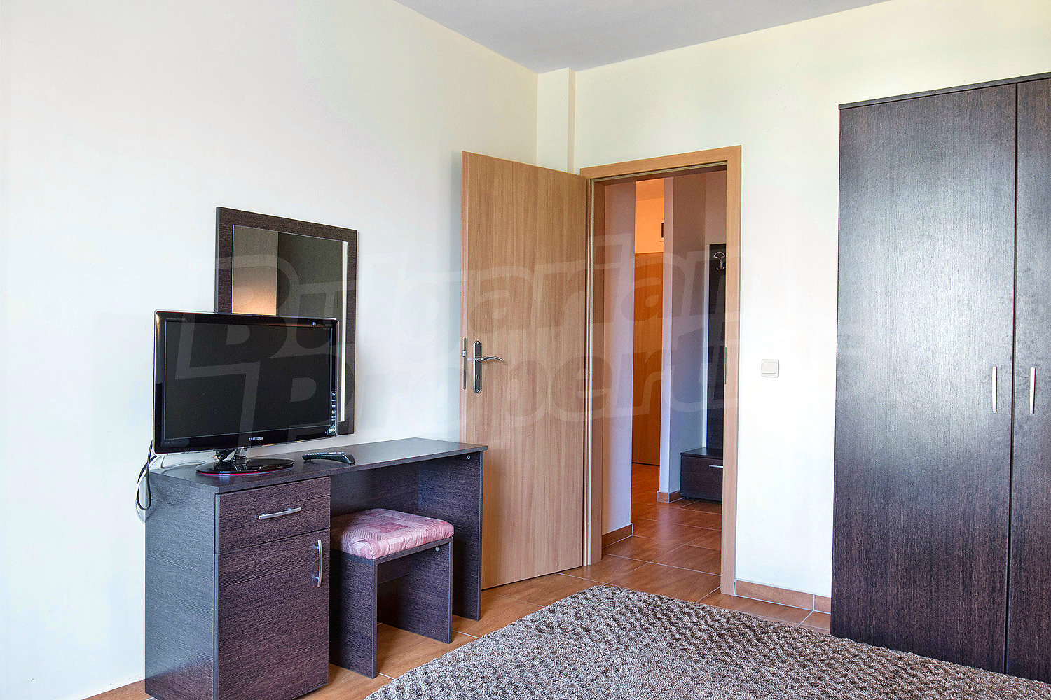 Жилището с обща площ от 66.69 кв.м. и чиста площ 57 кв.м., намира се на втори етаж. Състои се от една спалня, дневна с кухненски бокс, баня с душ кабина и тоалетна и балкон. Апартаментът е много удобен и има всичко необходимо за комфортен престой - телевизор във всяка стая, сешоар, пералня, климатик, фурна, електрически котлони, аспиратор, маса за хранене със четири стола. От балкона се разкрива гледка към вътрешния двор на комплекса с басейна и към морето. Имотът се предлага със следната степен на завършеност: PVC дограма, двоен стъклопакет, интериорни врати, подове с теракот и стени боядисани с латекс. Годишната такса за поддръжка на комплекса е 9.5 Евро на кв. м.