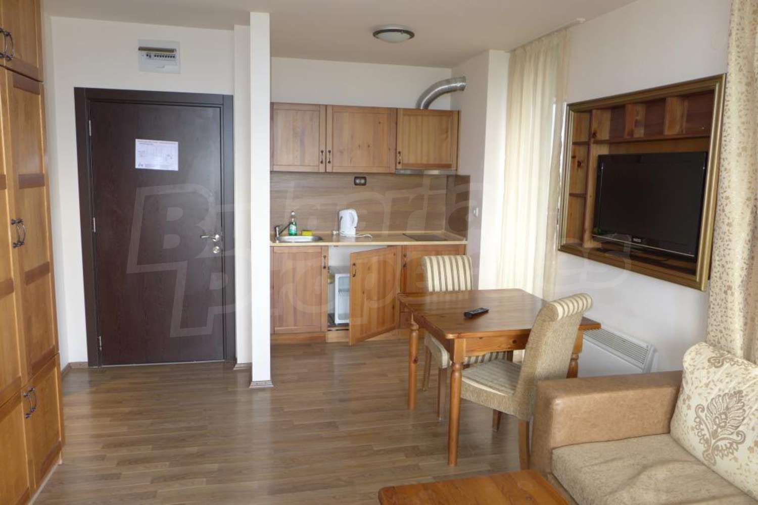 Отлично поддържано и напълно обзаведено студио, разположено в модерен комплекс на 10 минути път с кола от Разлог и Банско. Апартаментът се намира в луксозен комплекс в непосредствена близост до най-известното голф-игрище в страната – „Пирин Голф § Кънтри Клуб“.