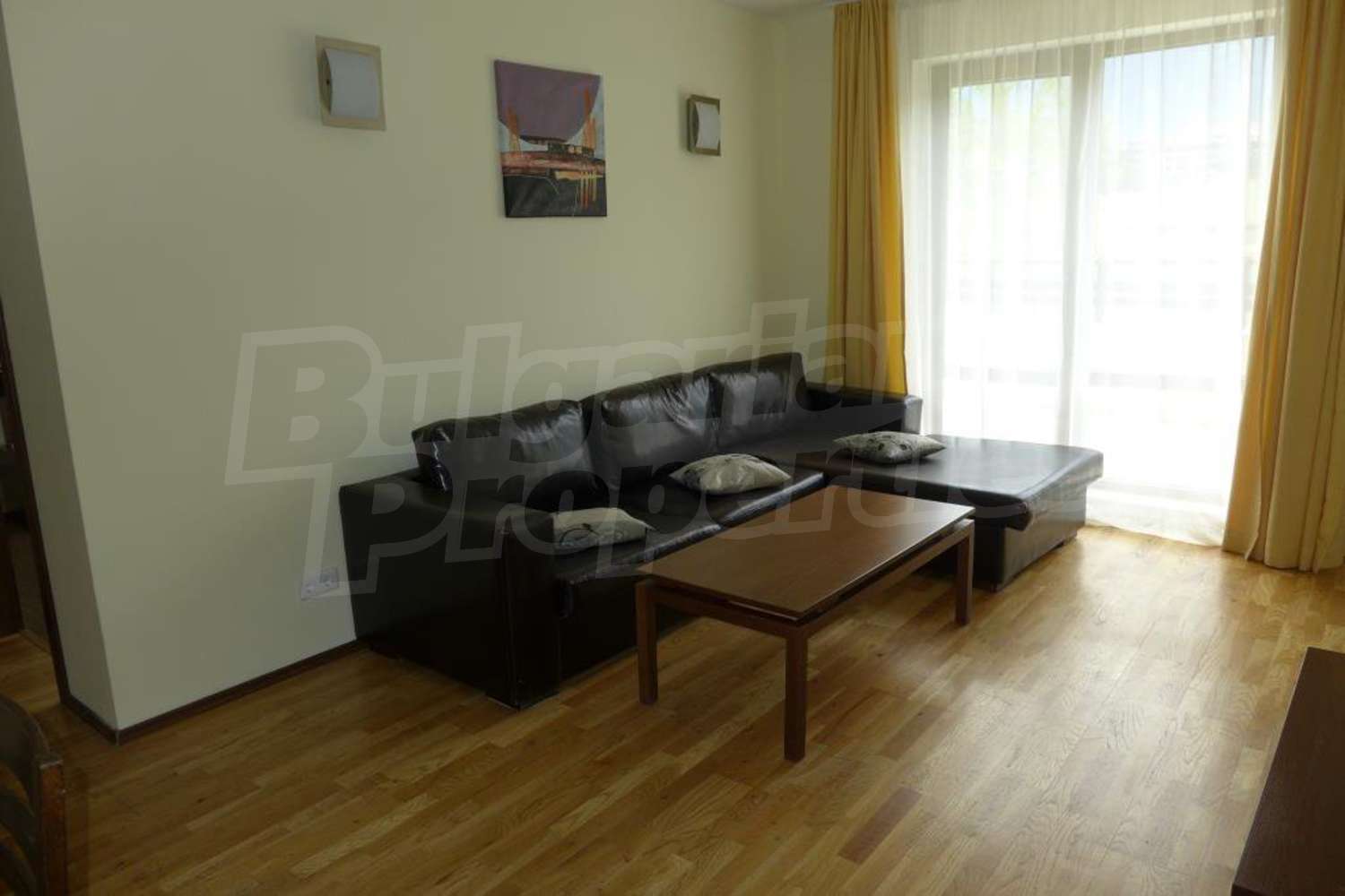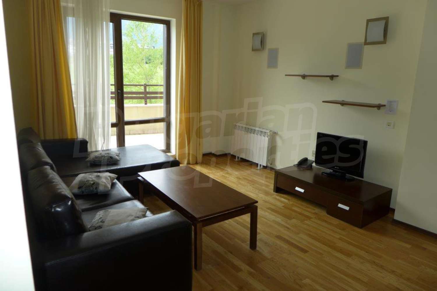 • Дневен тракт с плоскоекранен телевизор, ниска маса и мека мебел;