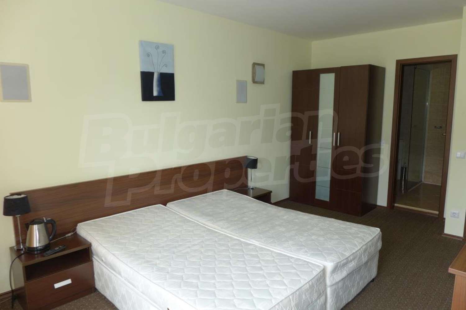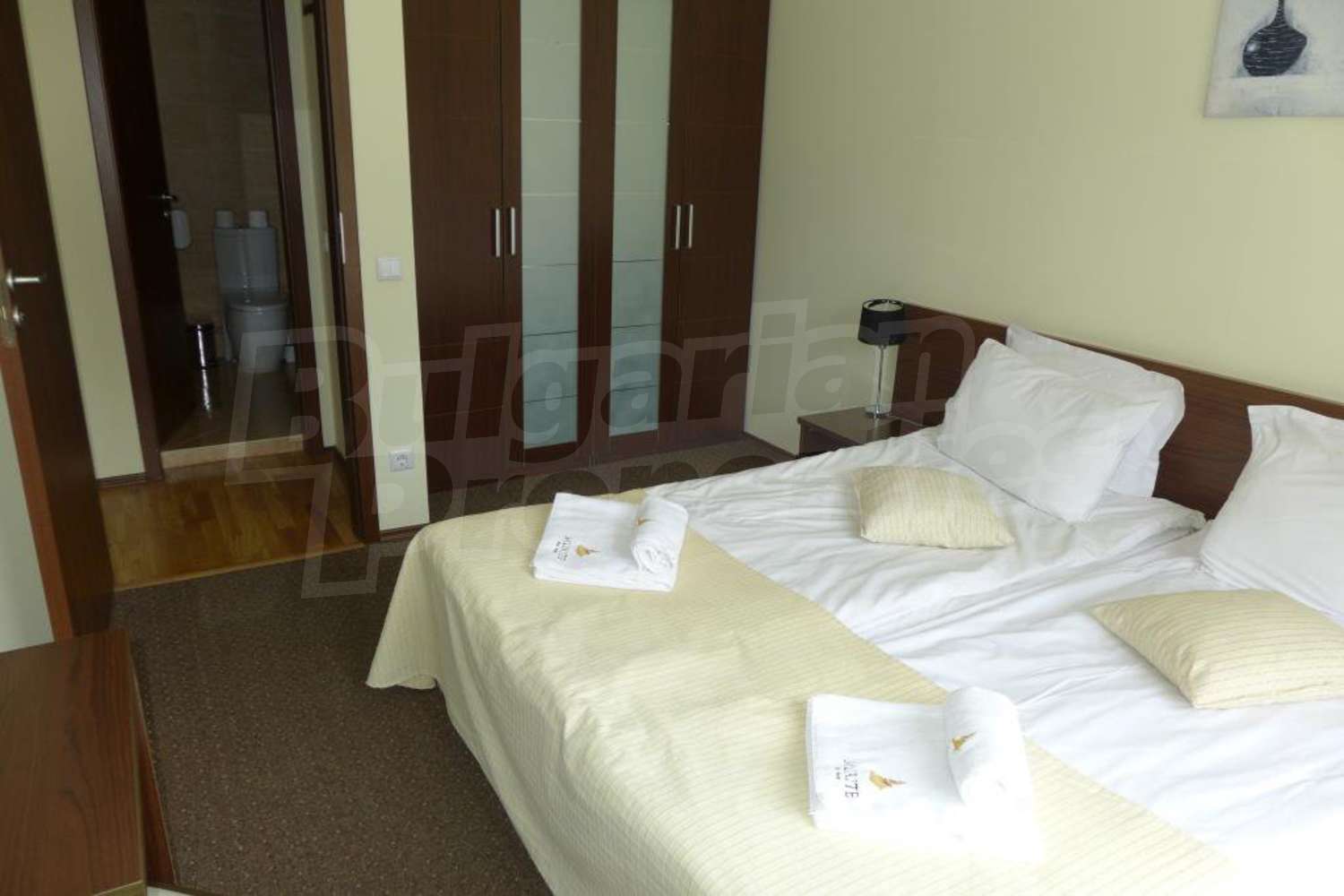 • 2 спални с двойно легло, нощни шкафчета и гардероб;
