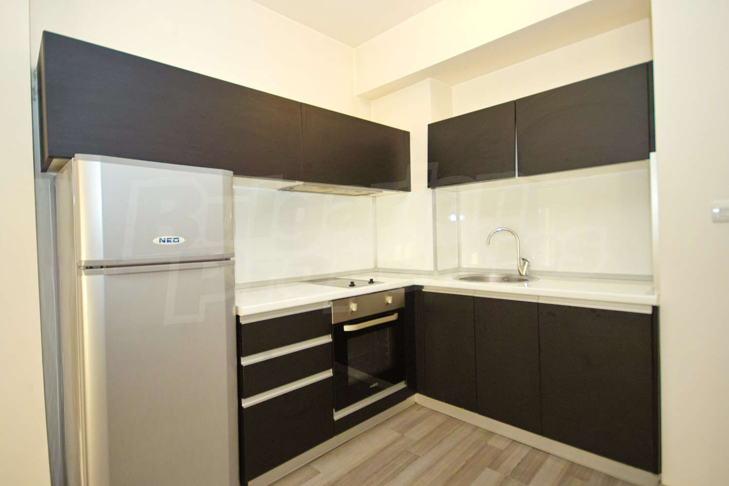 • вградена кухня с електроуреди- фурна, стъклокерамичен плот с два котлона, хладилник , аспиратор, съдомиялна и пералня