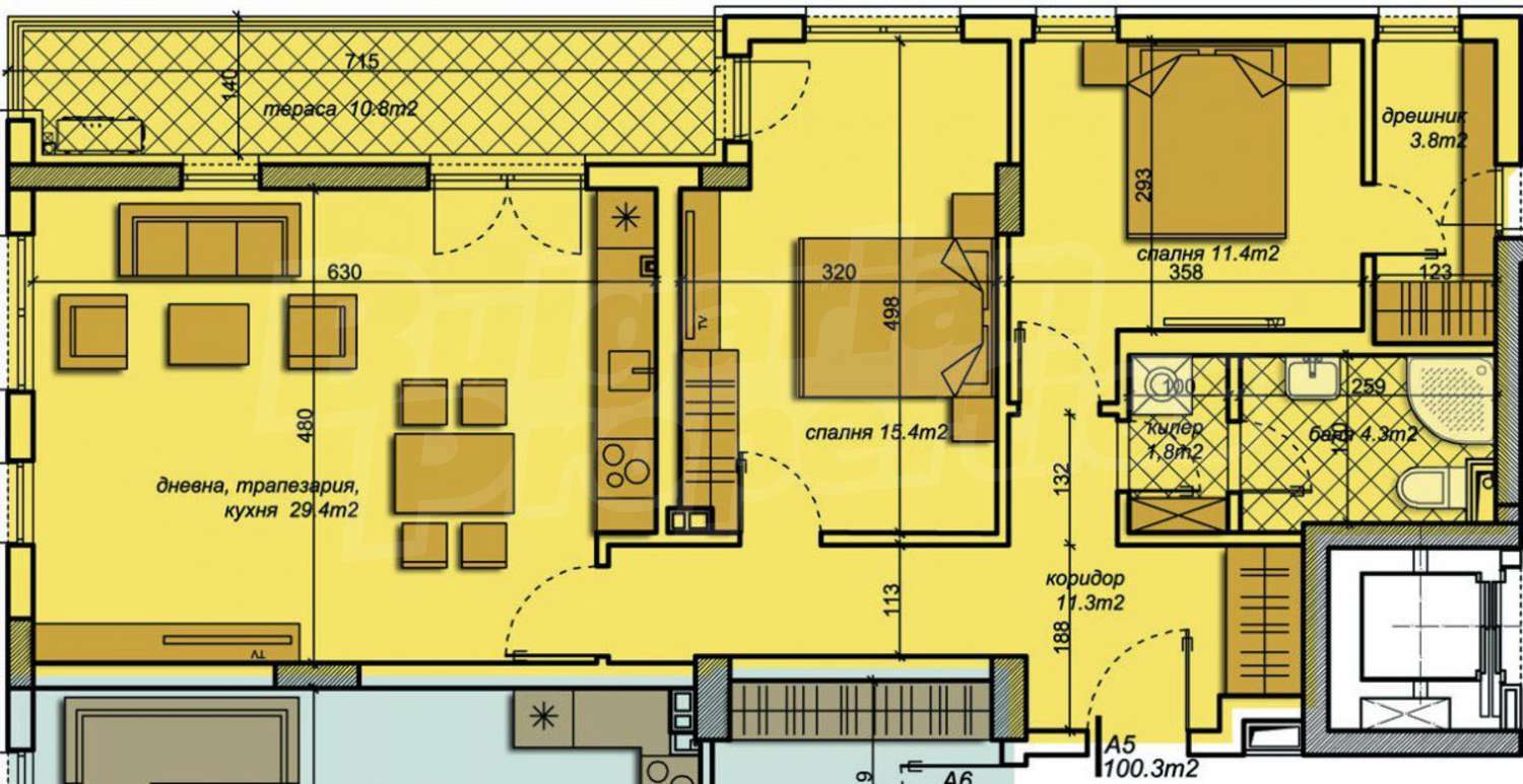 109.48 м2 (чиста площ: 89.45 м2 плюс общи части: 20.03 м2)