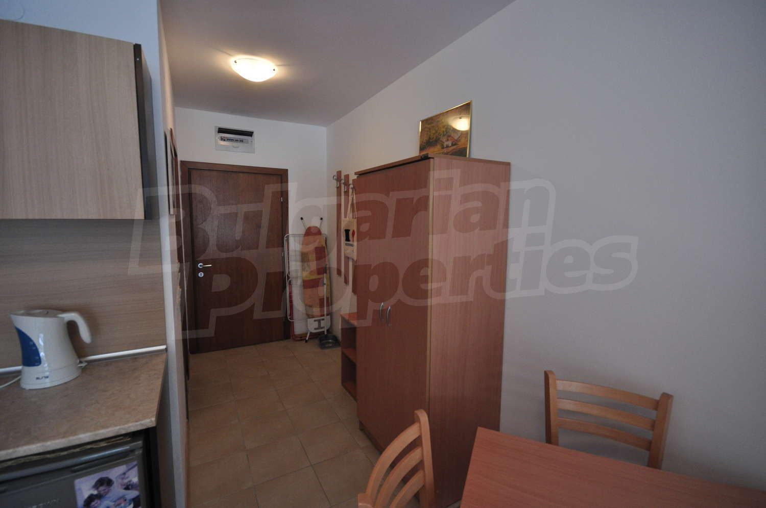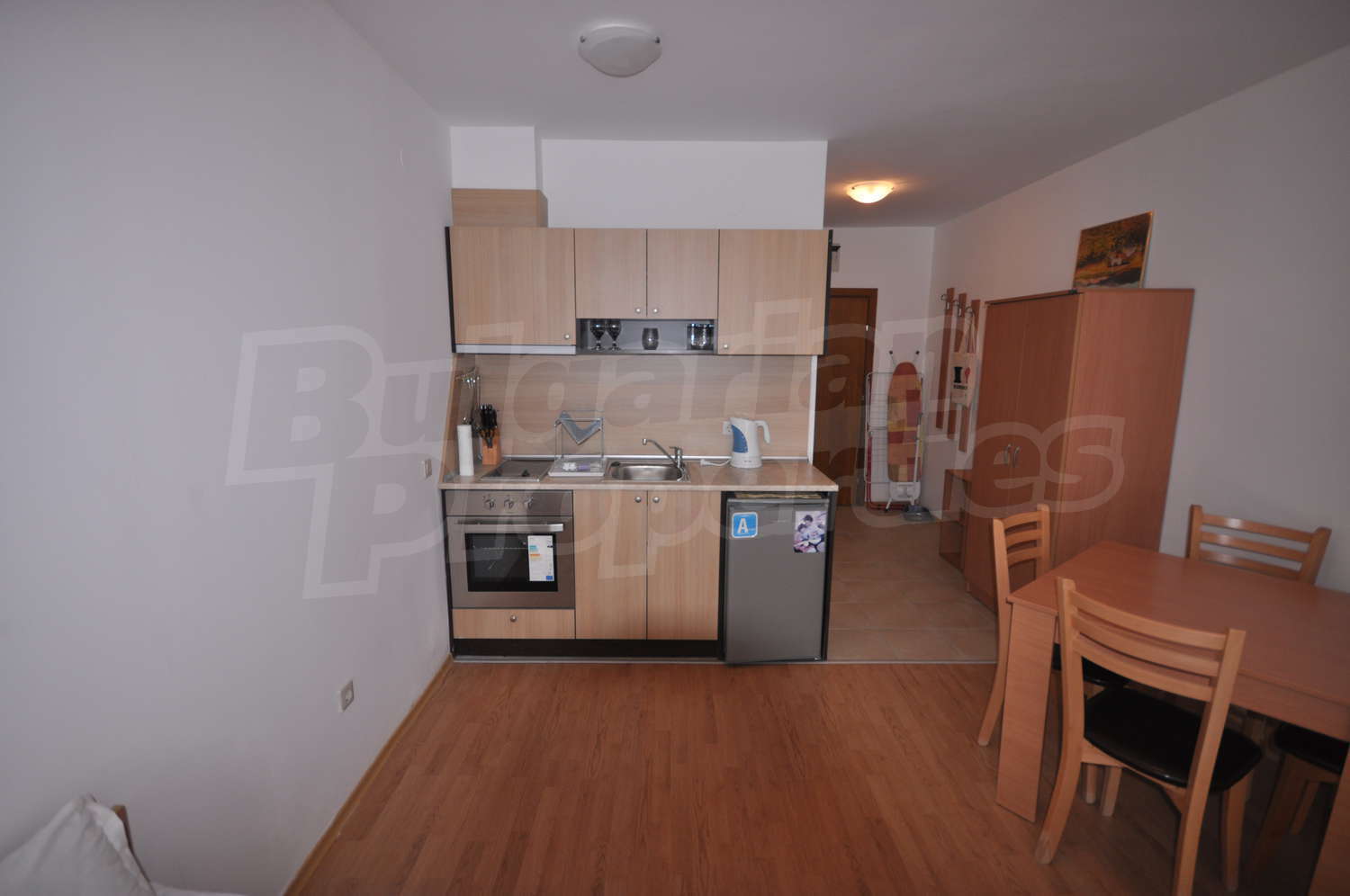 • Оборудвана отворена кухня с вградена техника – фурна и керамични котлони, абсорбатор, хладилник;