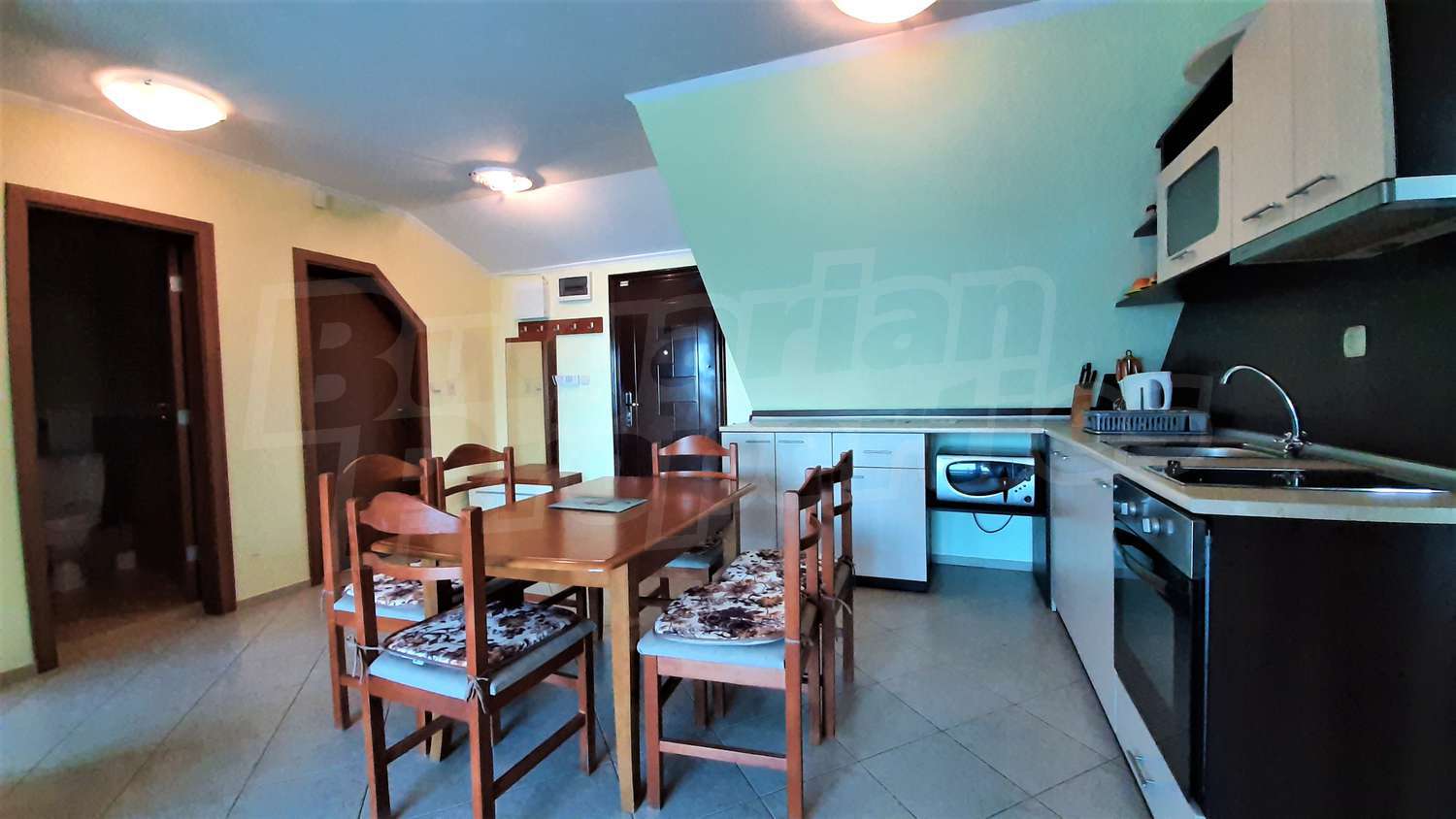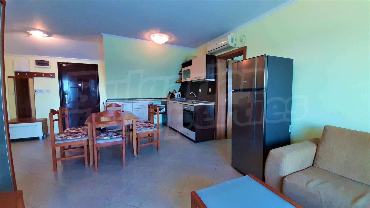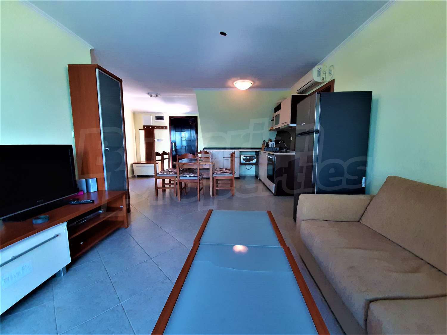 За удобството на собствениците и гостите на комплекса има 24 часова охрана, собствен басейн, просторна градина и собствен охраняем паркинг. От комплекса посредством стълбище има директен достъп на плажа. В апартамента има Кабелна телевизия, Интернет, Домофонна система, СОТ.