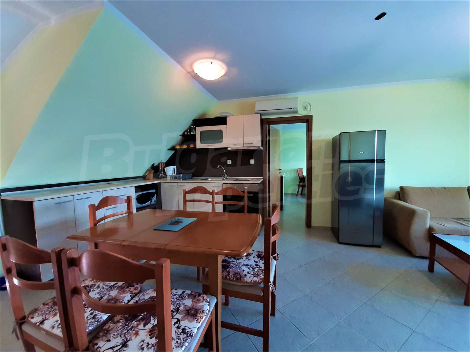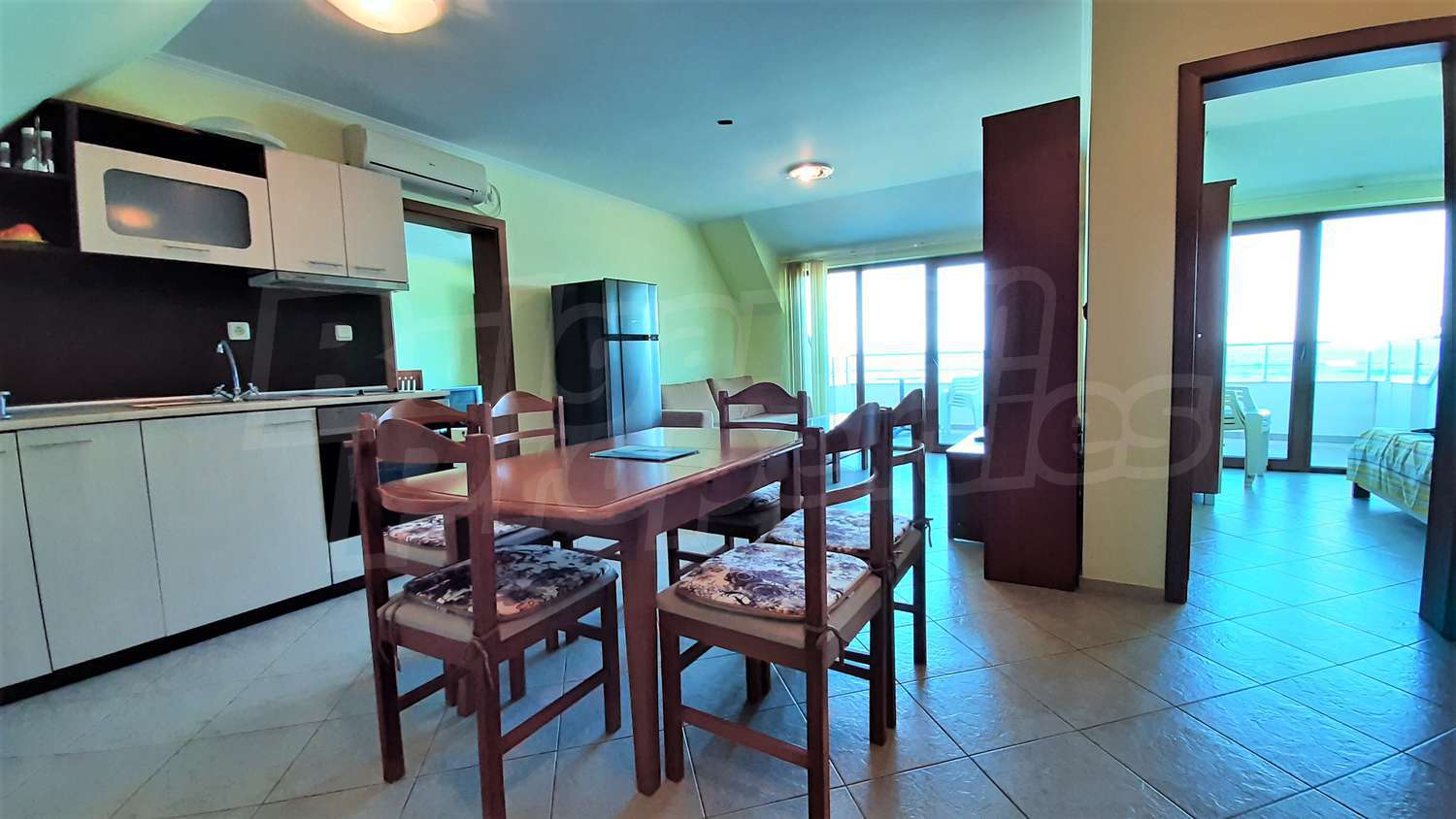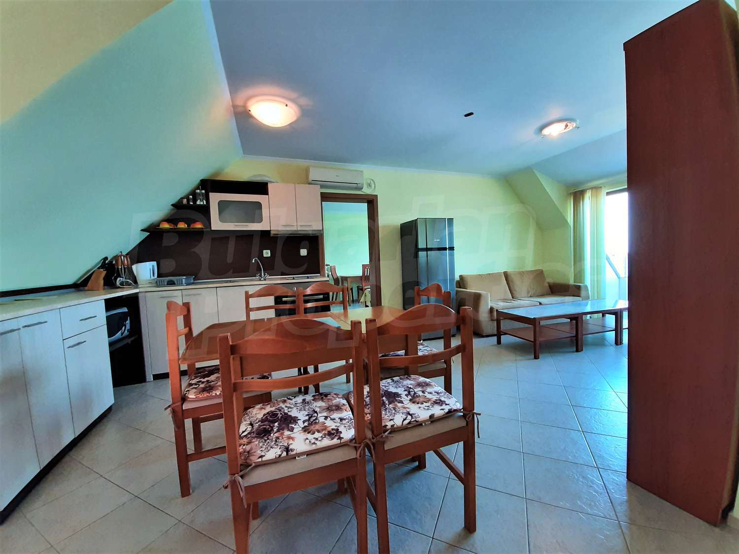 Апартаментът, който ви предлагаме се намира на 3 жилищен етаж на комплекса. От него се открива приятна гледка към морето, плаж „Хармани“, новият и стария град на Созопол.