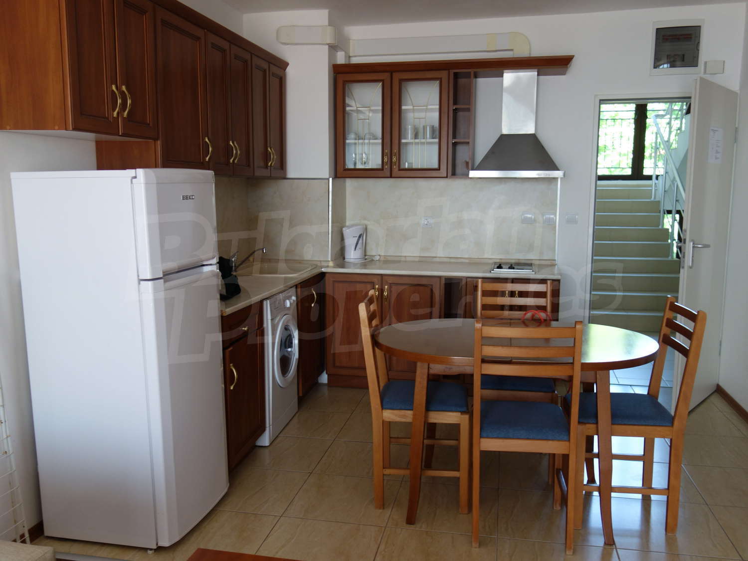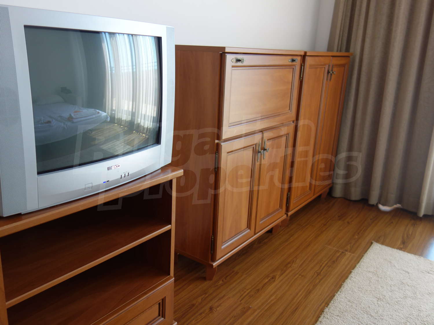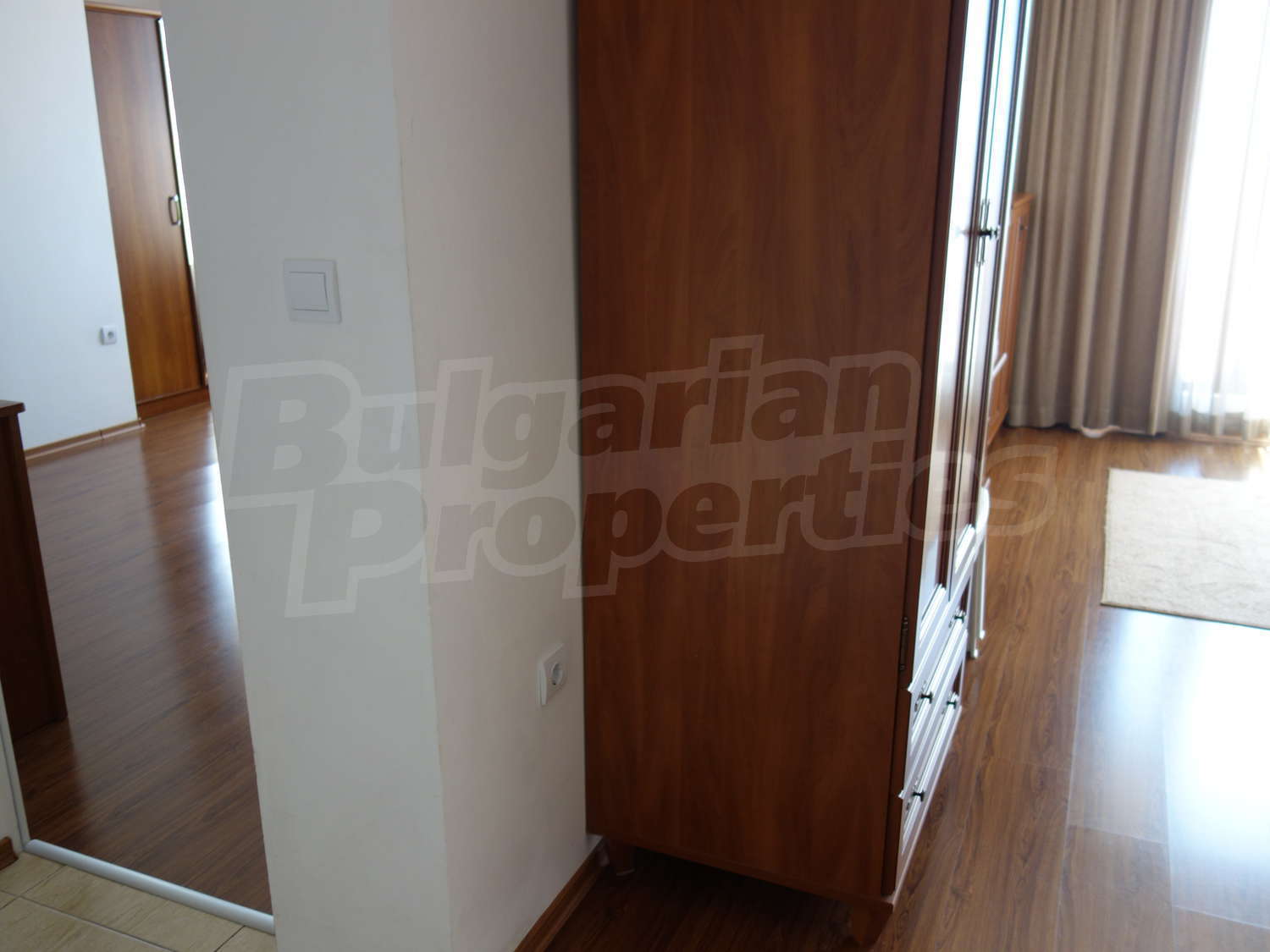 Напълно обзаведен имот. Хол с кухненски бокс с кухненски шкафове и електроуреди – керамични котлони, абсорбатор, хладилник, пералня, маса за хранене с четири стола, разтегателен диван, гардероб, шкаф, телевизор. Спалня с две единични легла, трикрилен гардероб, скрин с огледало. Напълно оборудвана баня с вана и всички необходими аксесоари.