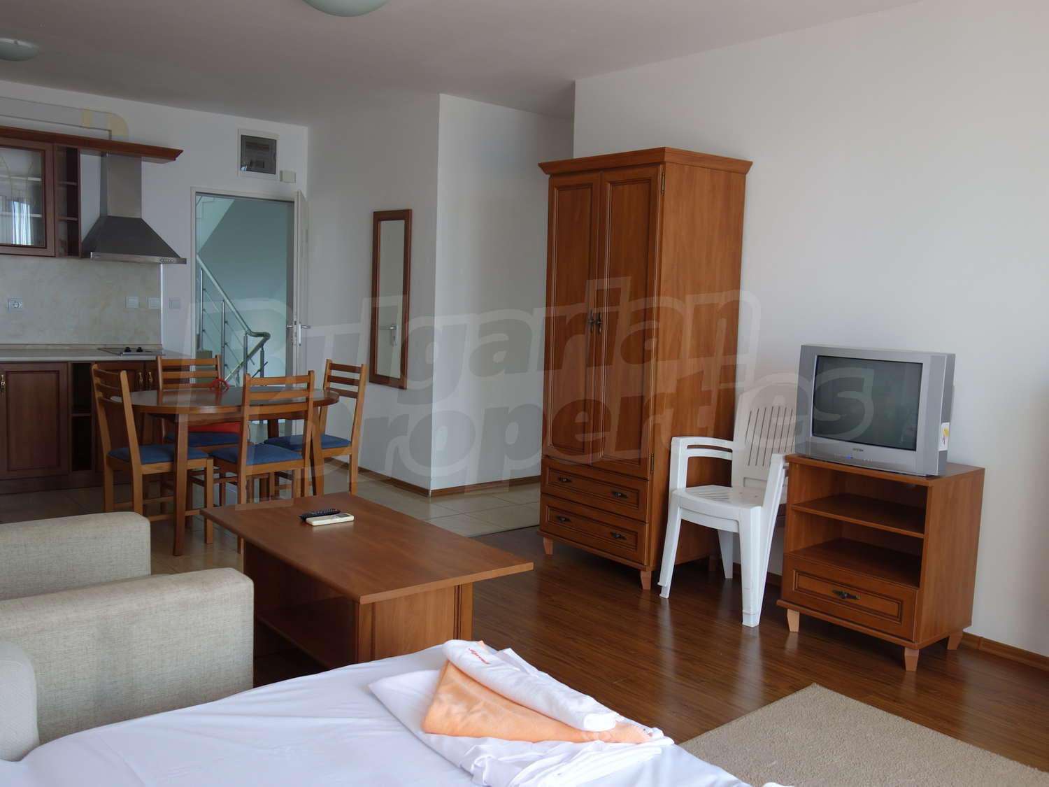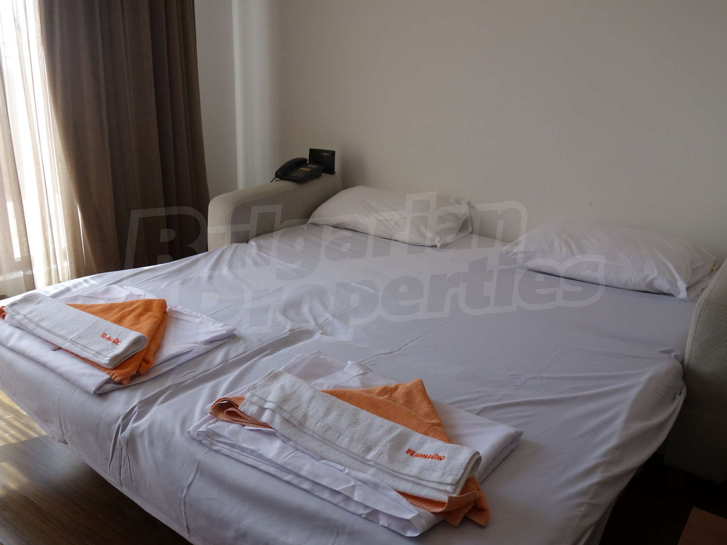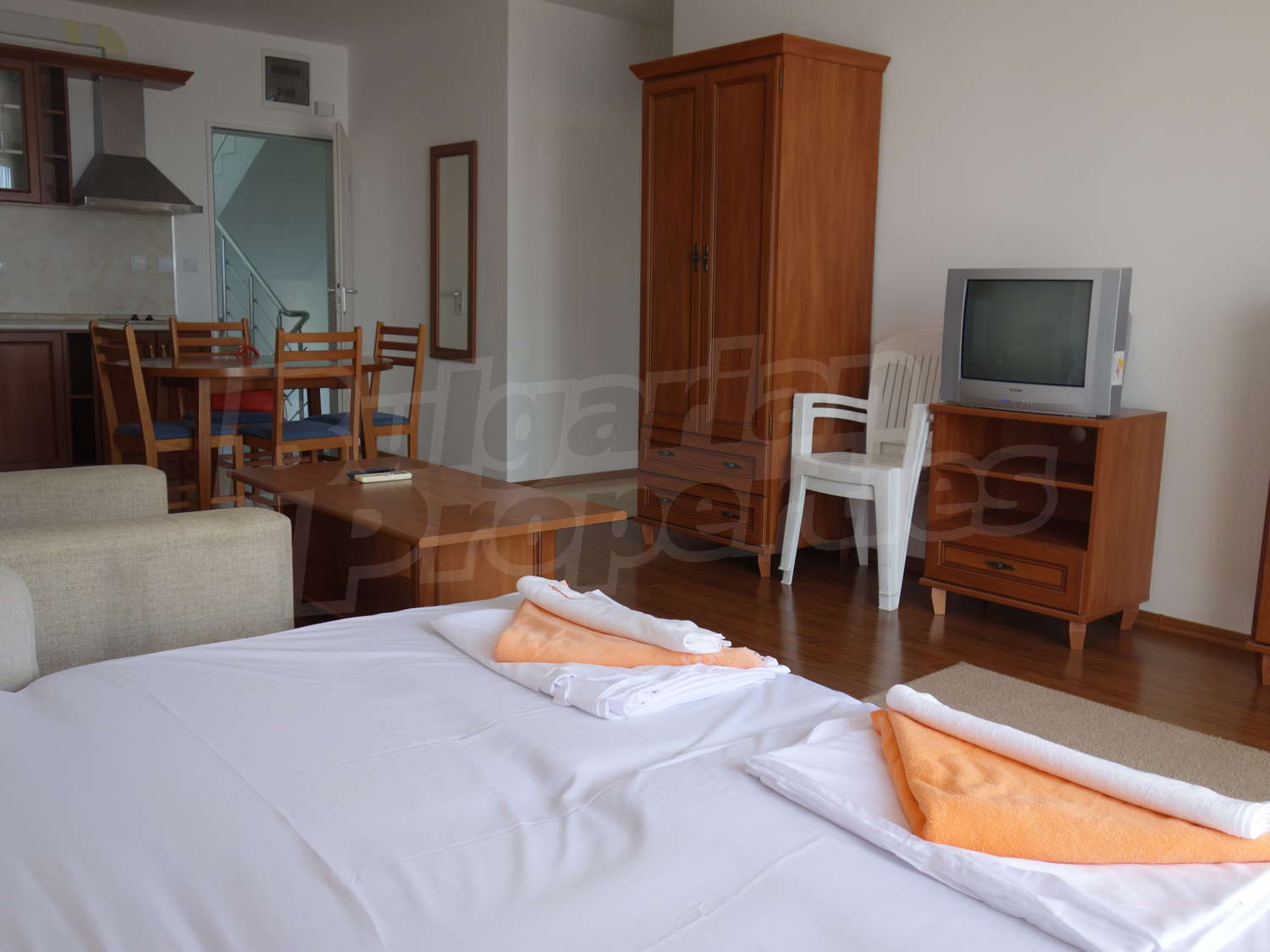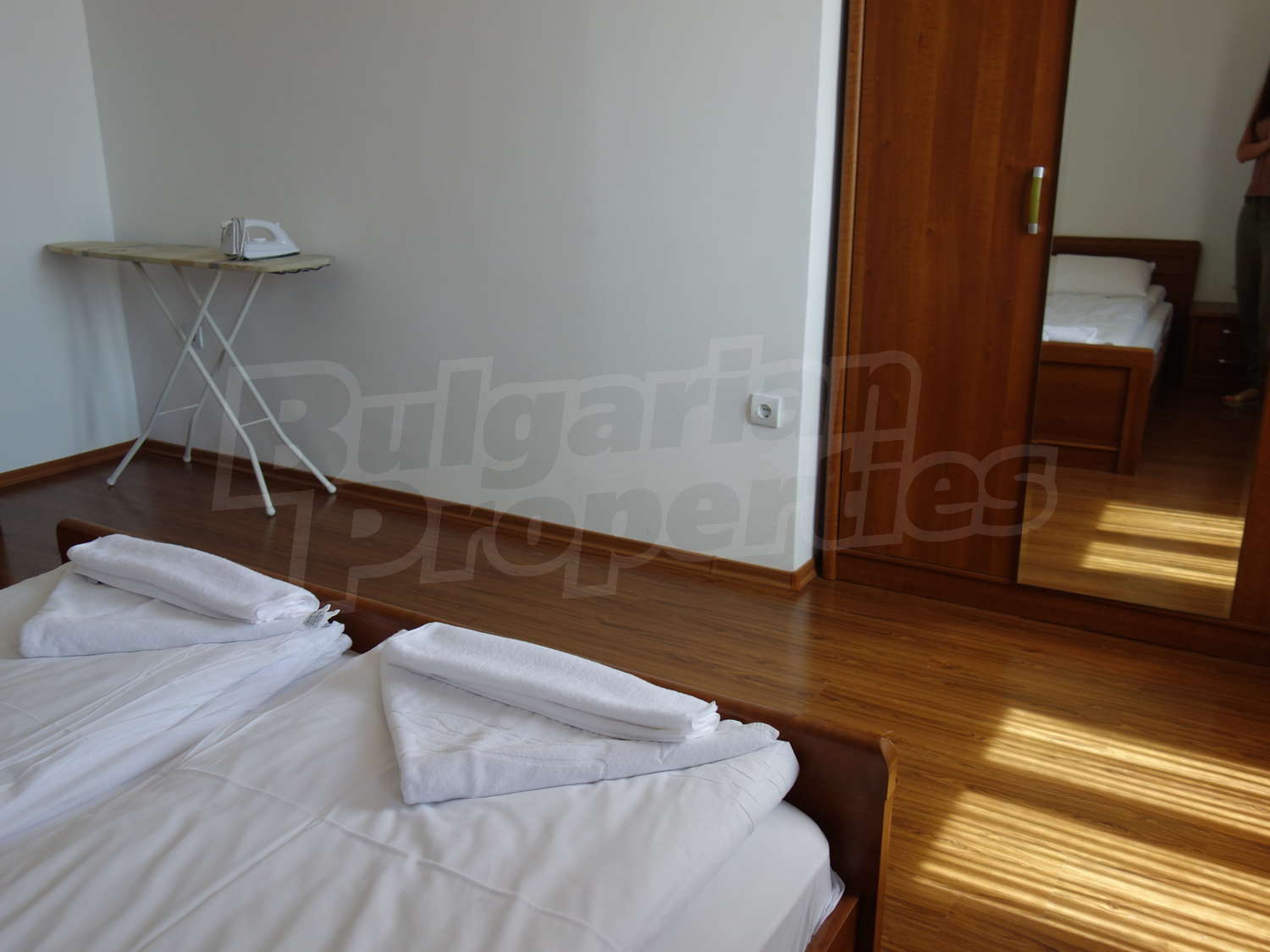 Напълно обзаведен имот. Хол с кухненски бокс с кухненски шкафове и електроуреди – керамични котлони, абсорбатор, хладилник, пералня, маса за хранене с четири стола, разтегателен диван, гардероб, шкаф, телевизор. Спалня с две единични легла, трикрилен гардероб, скрин с огледало. Напълно оборудвана баня с вана и всички необходими аксесоари.