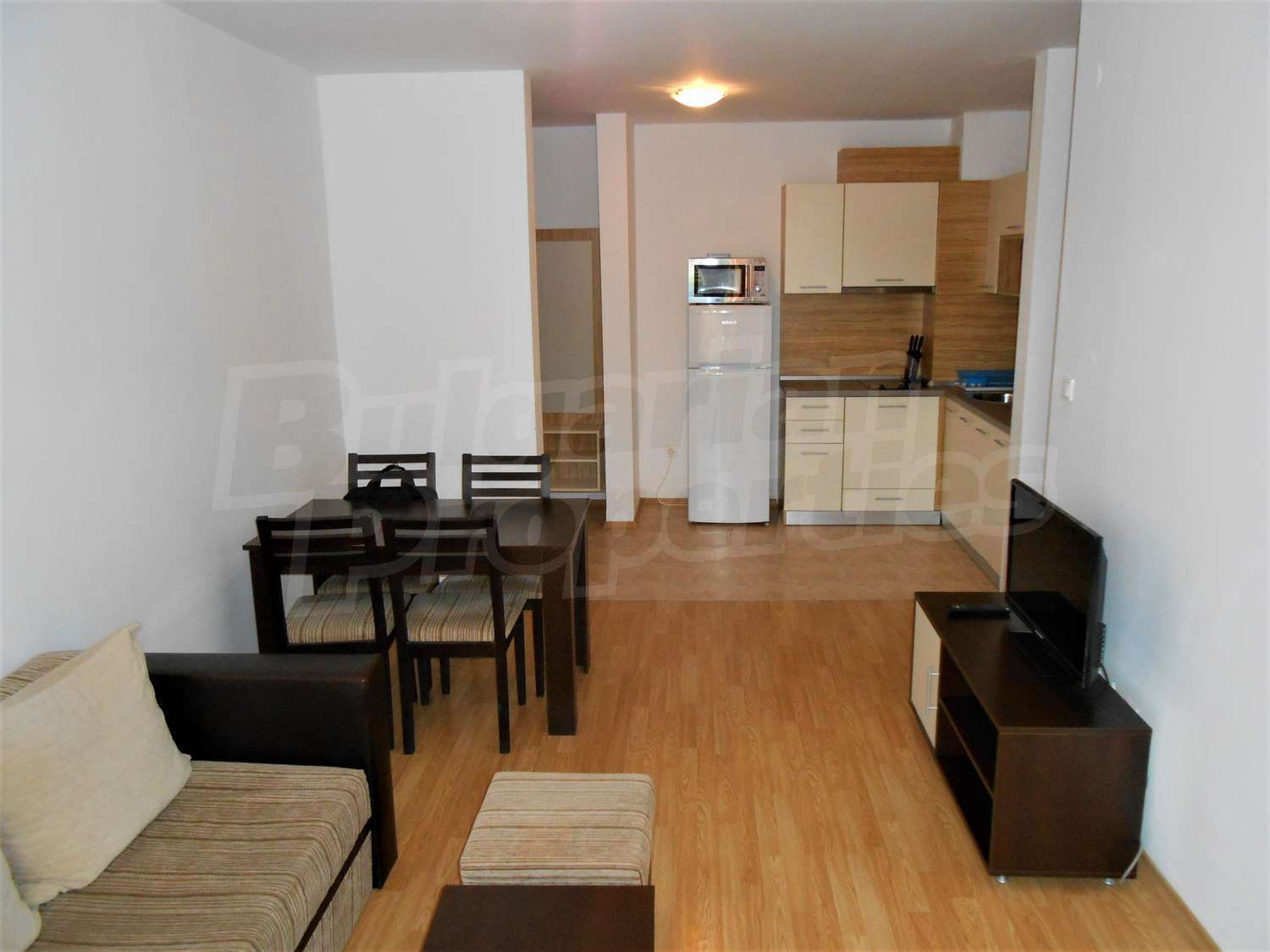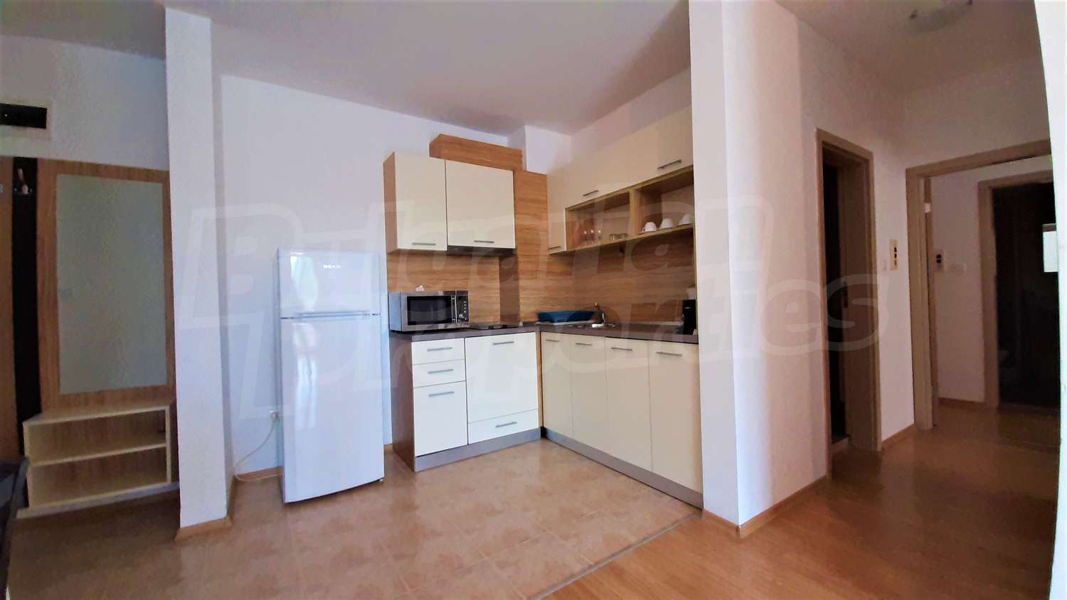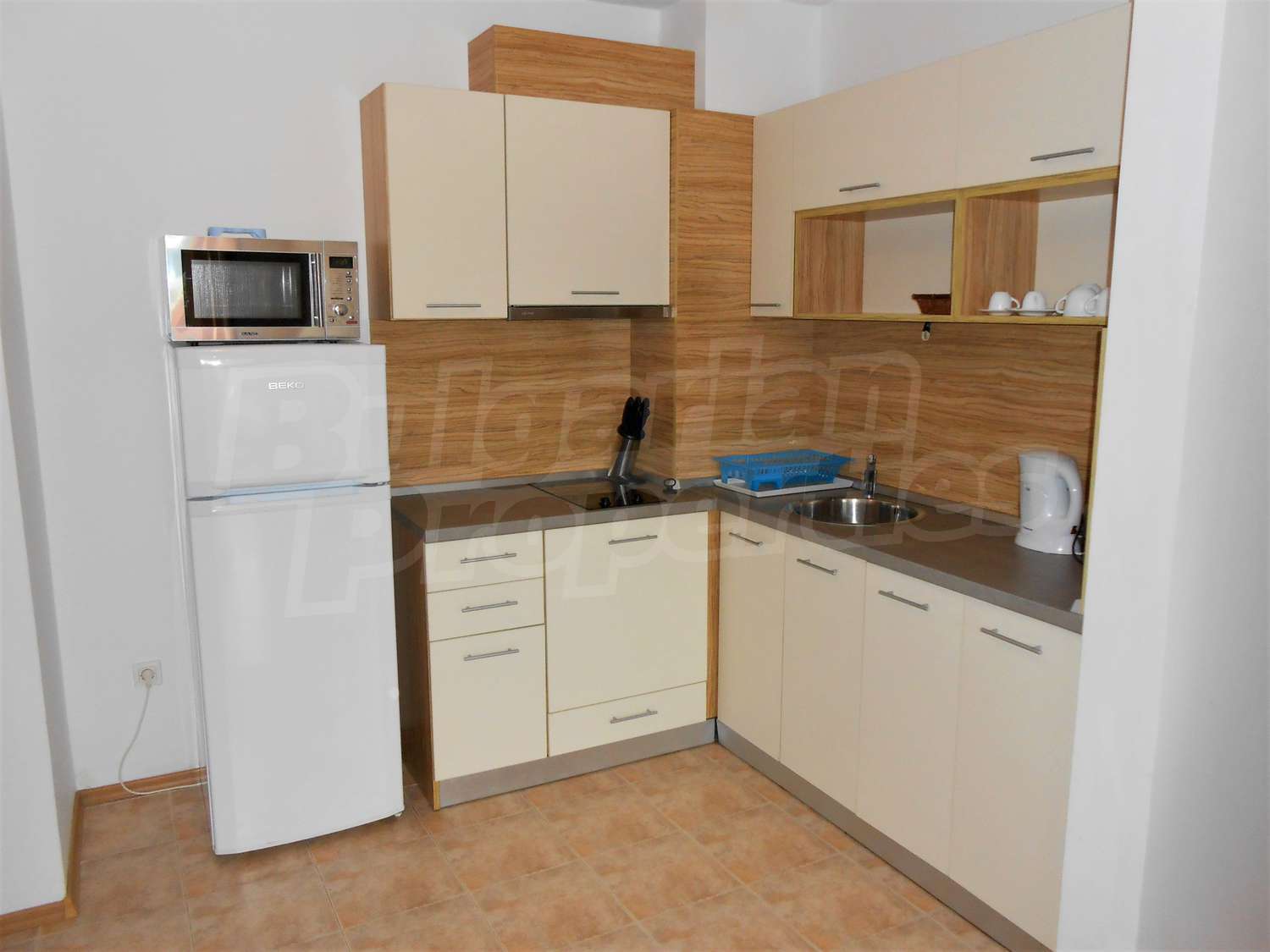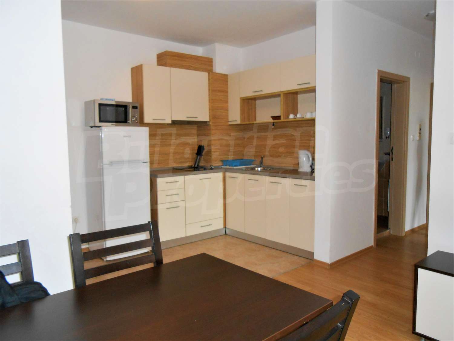 • Кухня с всички уреди: мивка, аспиратор, ел. котлони, фурна, вграден хладилник, микровълнова печка, пералня, кана за топла вода.