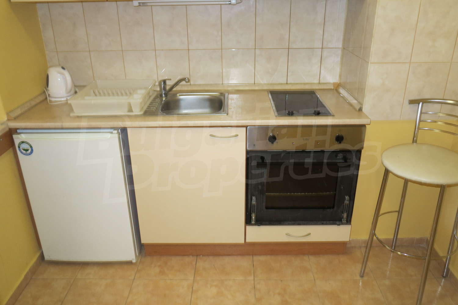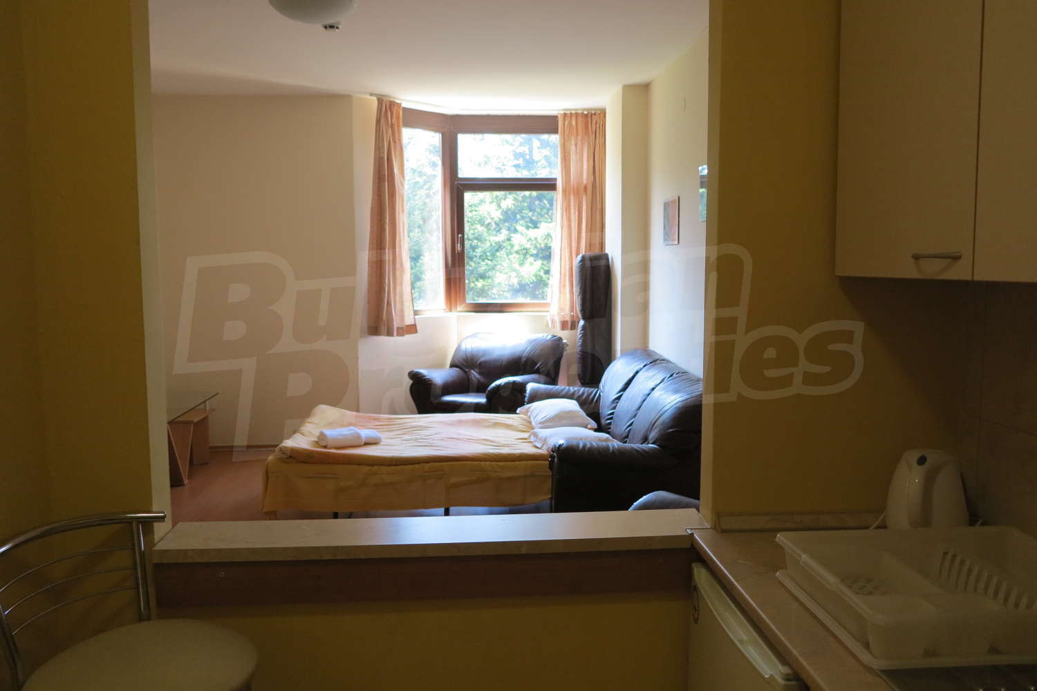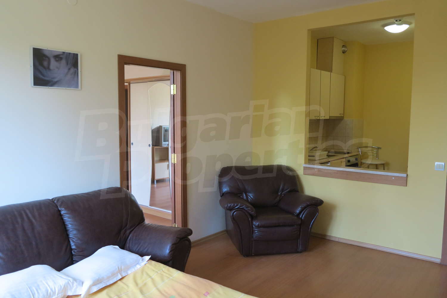 Жилището е със западно изложение и се намира на шести етаж, със застроена площ от 66.70 кв.м. + 10.35 кв.м. общи части. Кухнята е напълно оборудвана с мивка, котлони, хладилник, шкафове; холът - с кожен разтегателен диван и два фотьойла, холна масичка, шкафчета, телевизор; спалнята – с двойно легло, две нощни шкафчета с нощни лампи, тоалетка с огледало и стол, телевизор с шкаф. Банята с тоалетна е оборудвана с всички необходими аксесоари и вана. Стаите са завършени с под – ламинат и гранитогрес в коридора и кухнята, стени - латекс, дограма – ПВЦ. Отоплението е чрез локално парно на газ. Апартаментът е снабден с телефон, кабелна телевизия, интернет. Таксата поддръжка на общите части е 9.11 евро/кв.м.