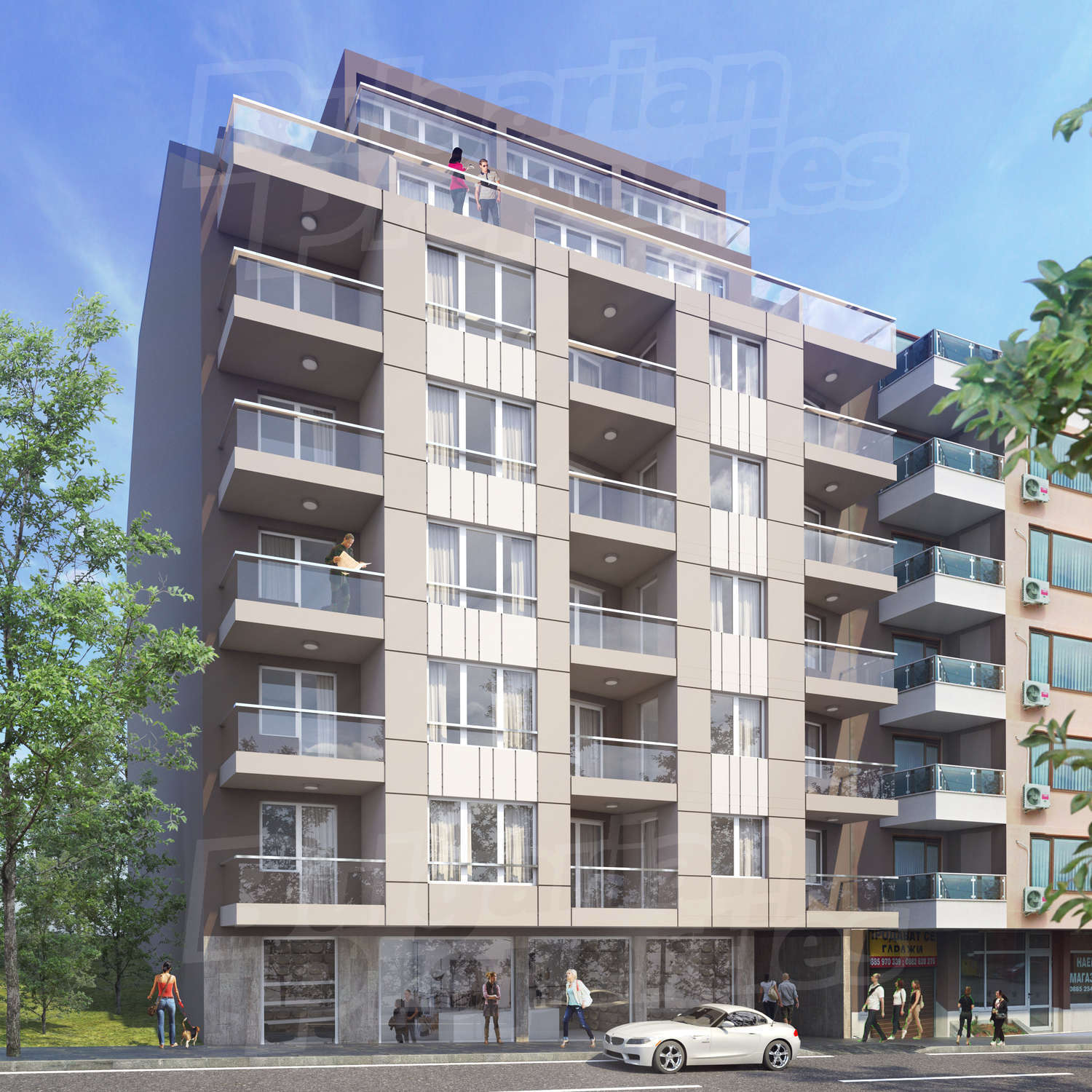 Може да избирате между различни по площ жилища в сграда строяща се от утвърден и доказан строител, отговаряща на всички съвременни европейски изисквания. Масивно строителство изпълнявано с качествени материали и довършителни работи. Проектът предвижда подземни паркоместа по 10800 € всяко, както и търговски площи на партерен етаж.