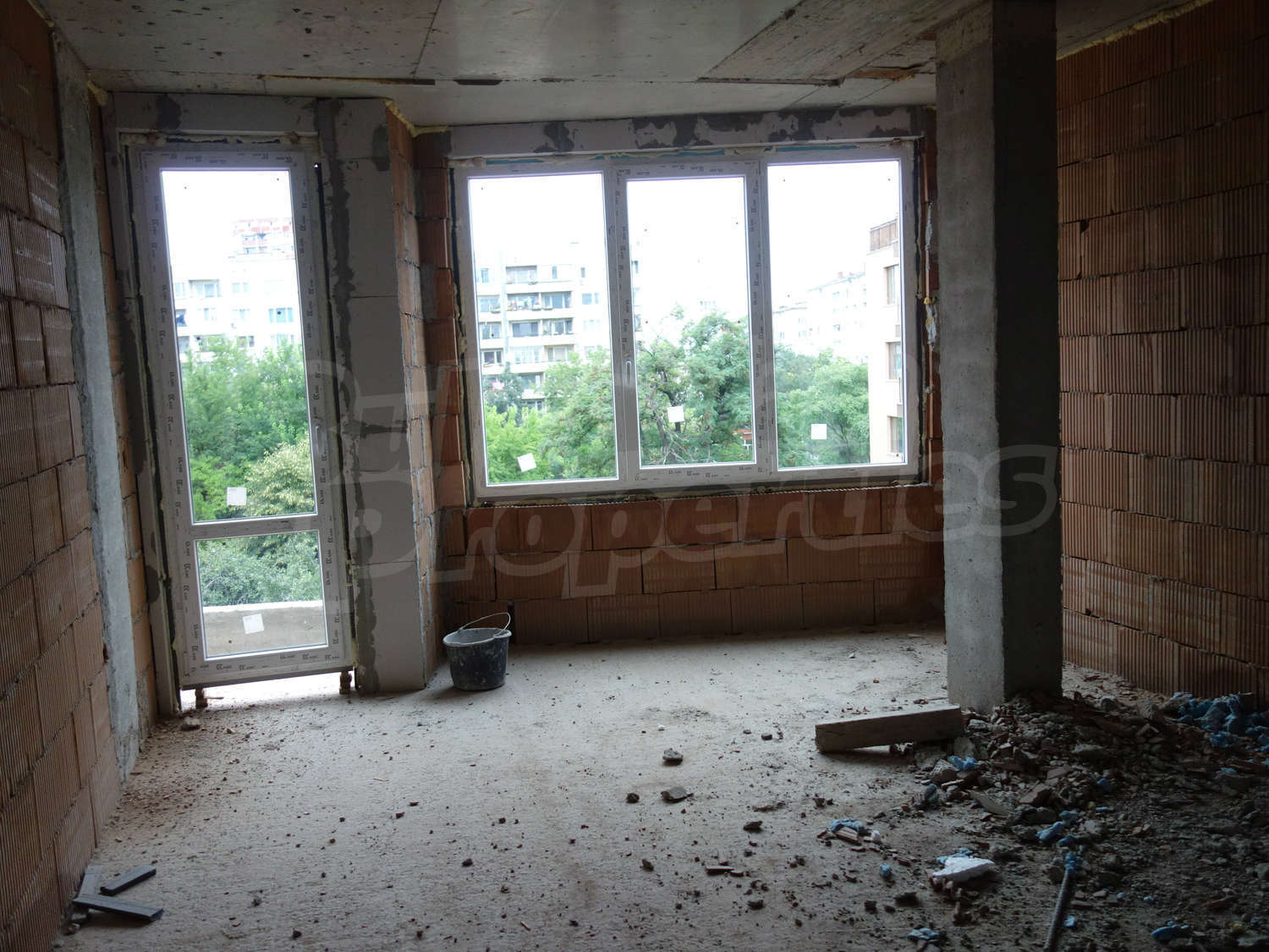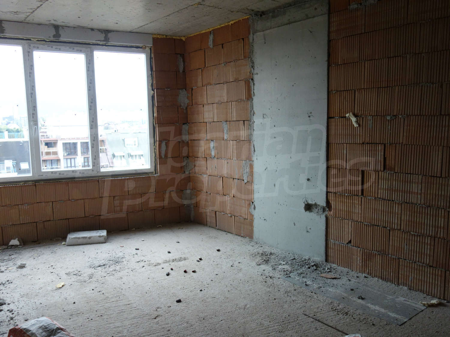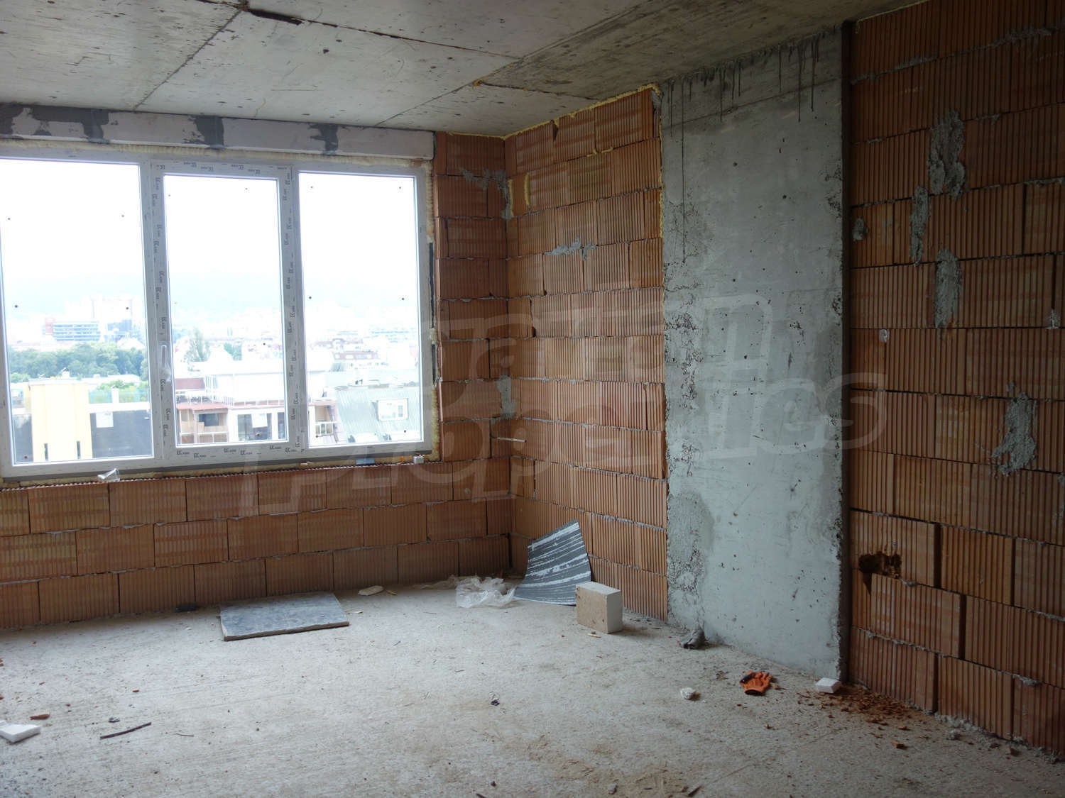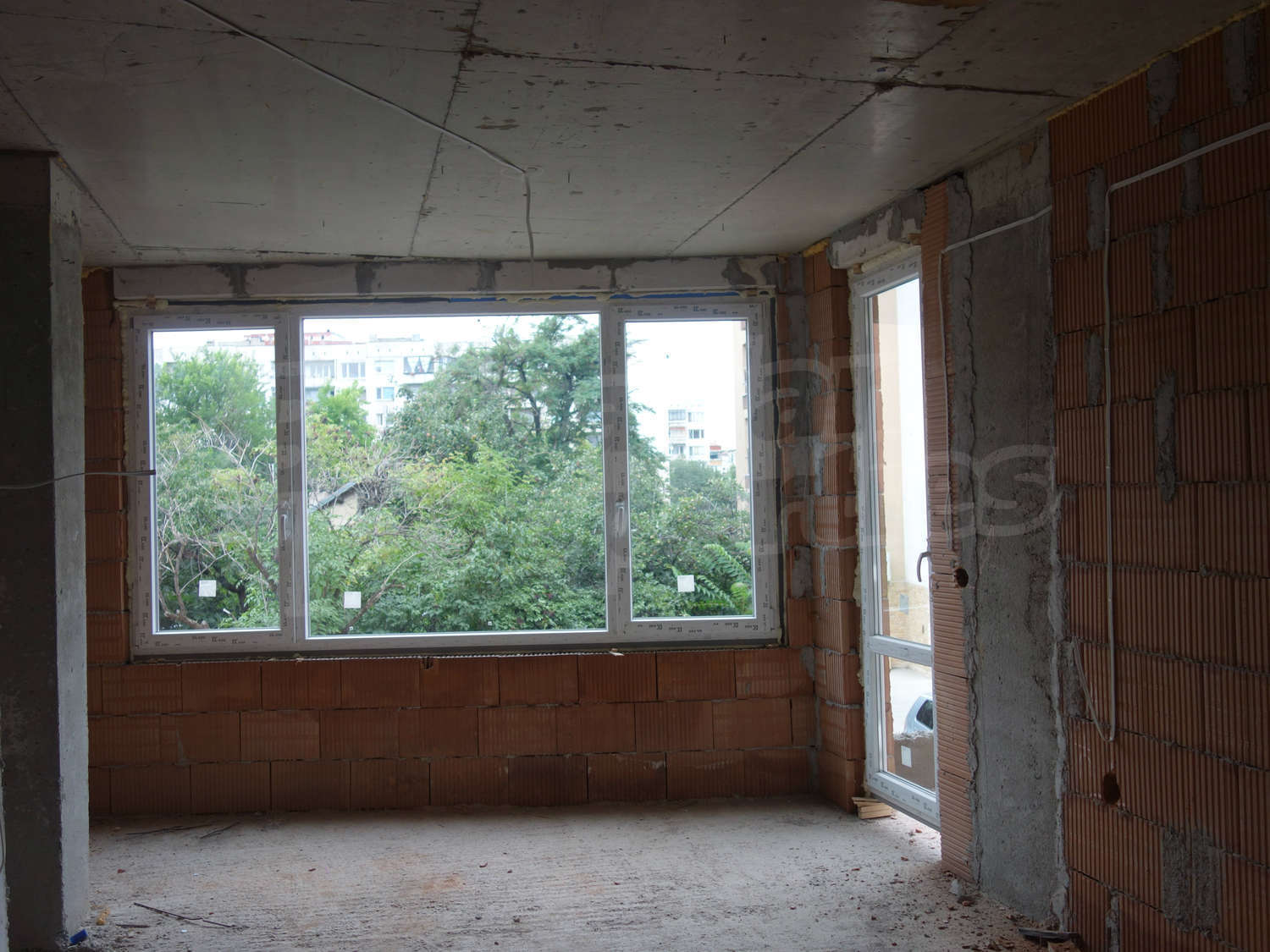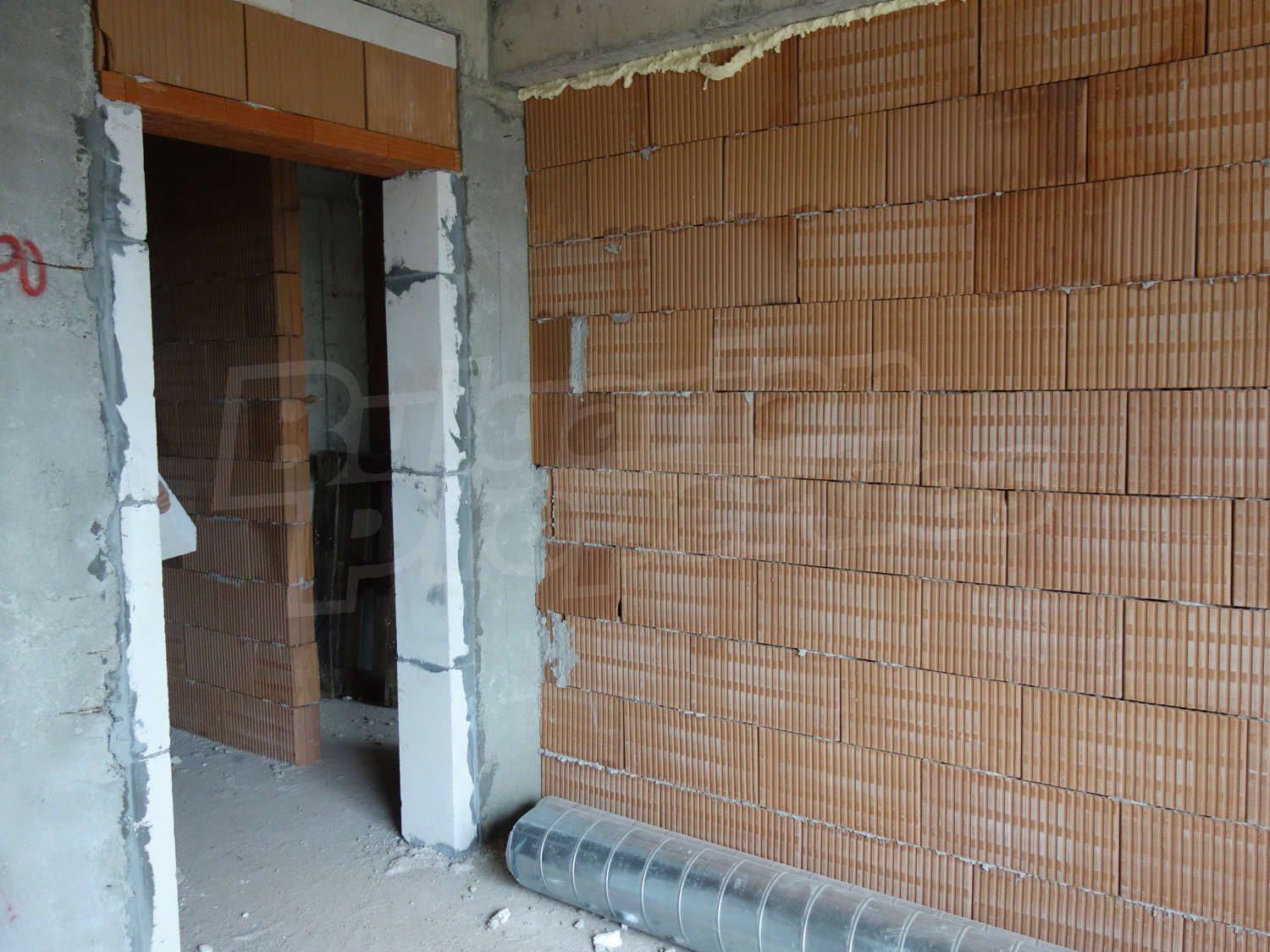 • Стени – гипсова машинна мазилка, подове – циментова замазка.