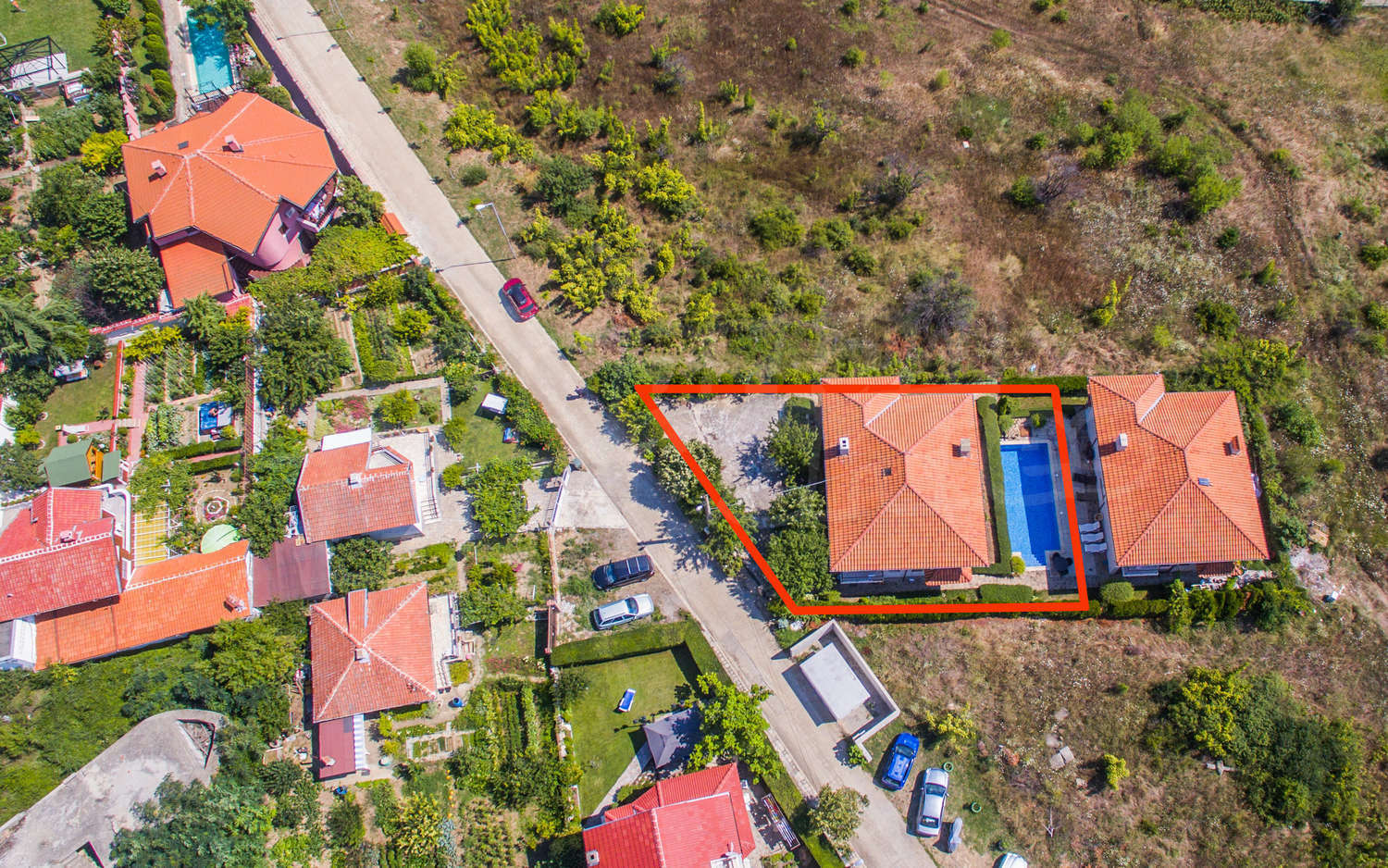 Къщата е част от затворен комплекс с две вили и общ басейн. Разпределението е следното: