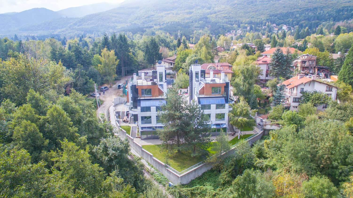 Имотът се намира в престижен район в полите на планината, в близост до Ботаническата градина, Резинденция Бояна, супермаркет Фантастико, Околовръстен път, стадион, Драгалевски манастир, сред елитни имоти със спокойна и предпочитана локация сред чист въздух и спиращи дъха картини.