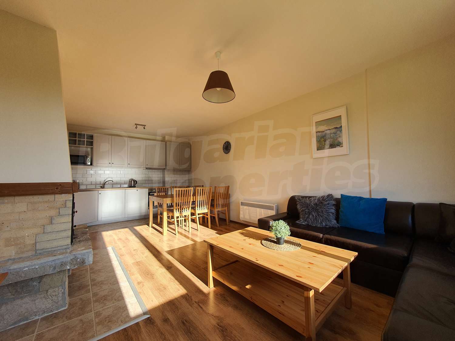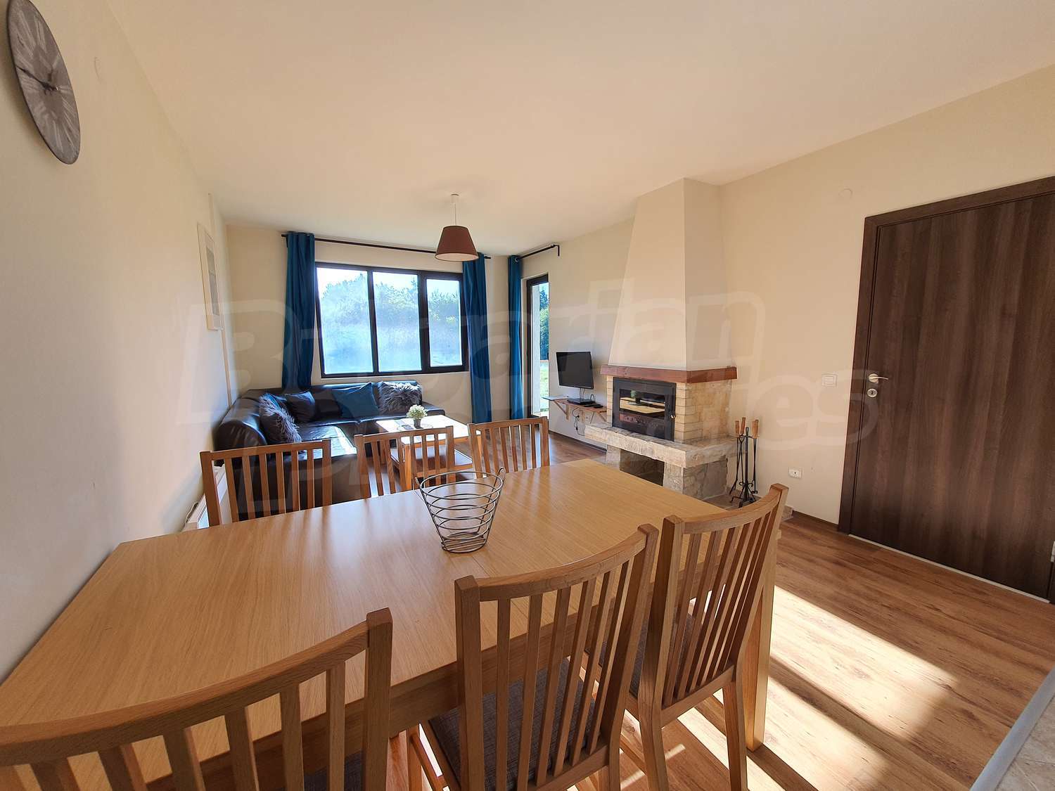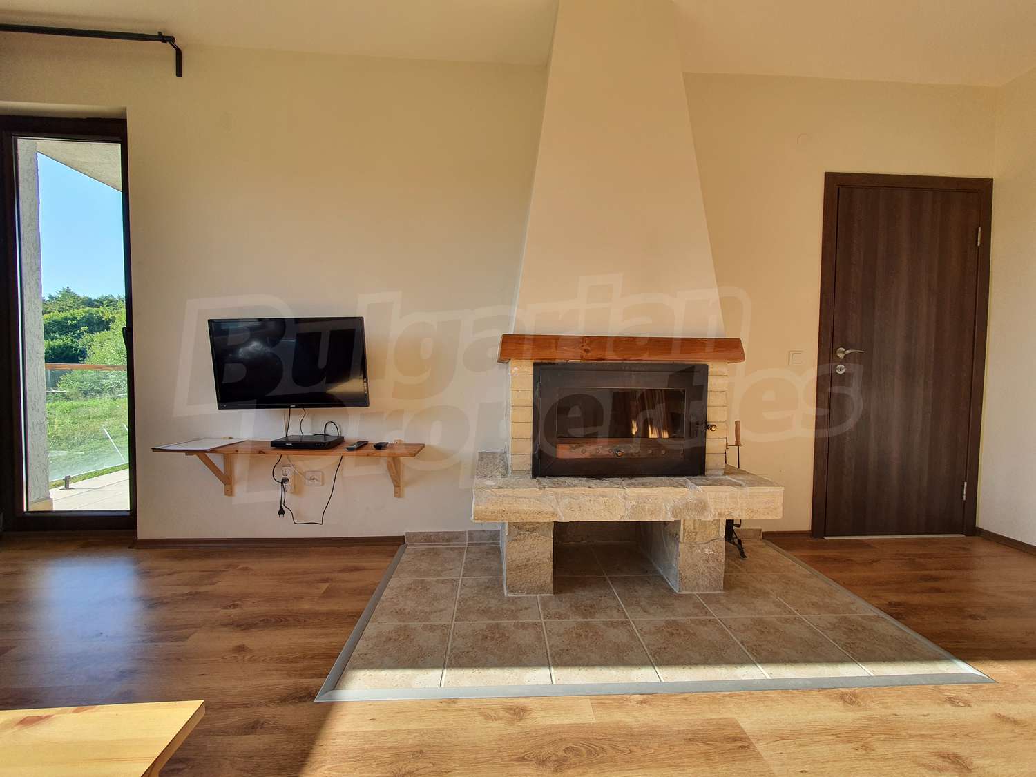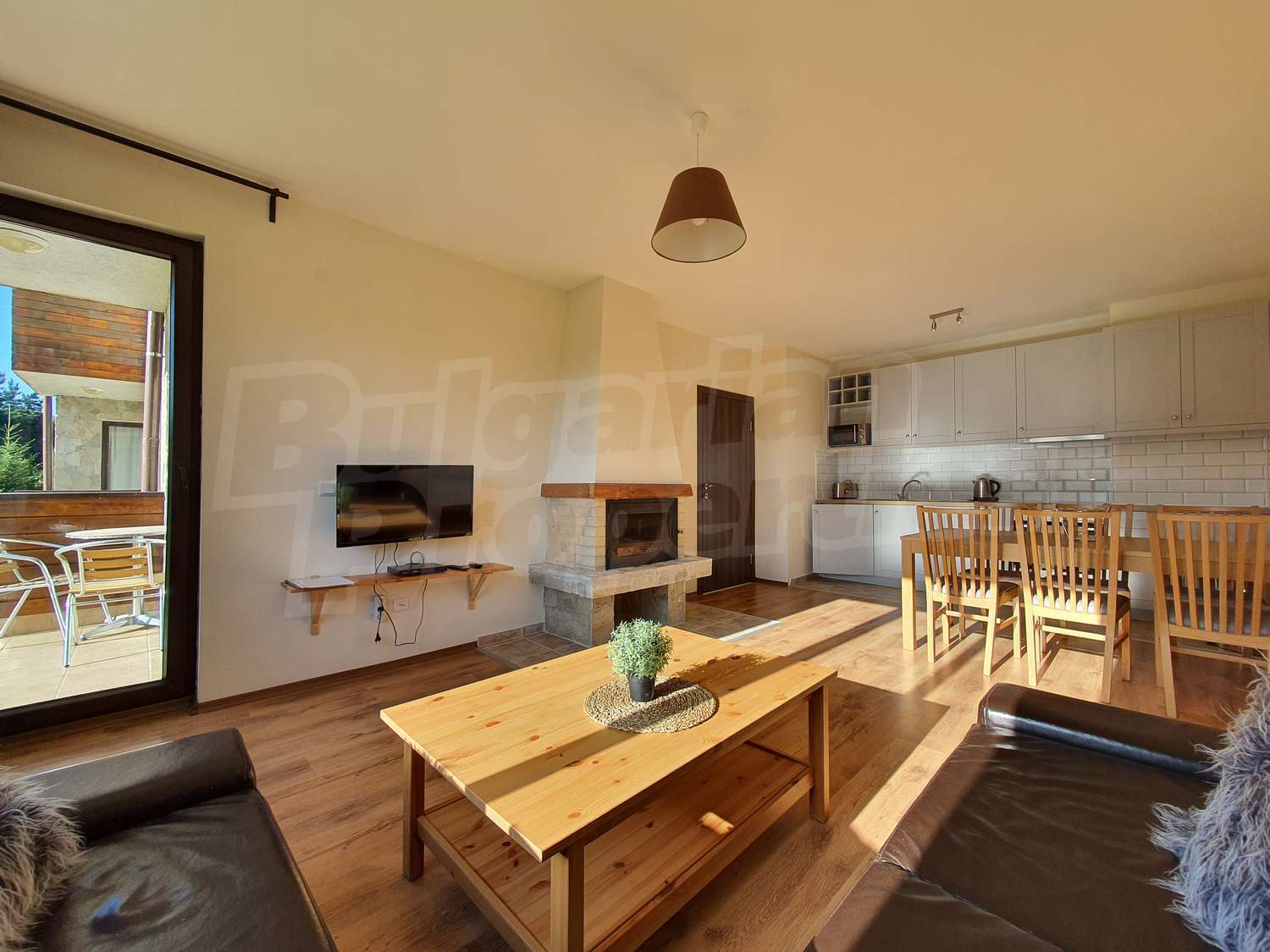 •	Дневен тракт с уютна обстановка – мека мебел, плоскоекранен телевизор и камина;