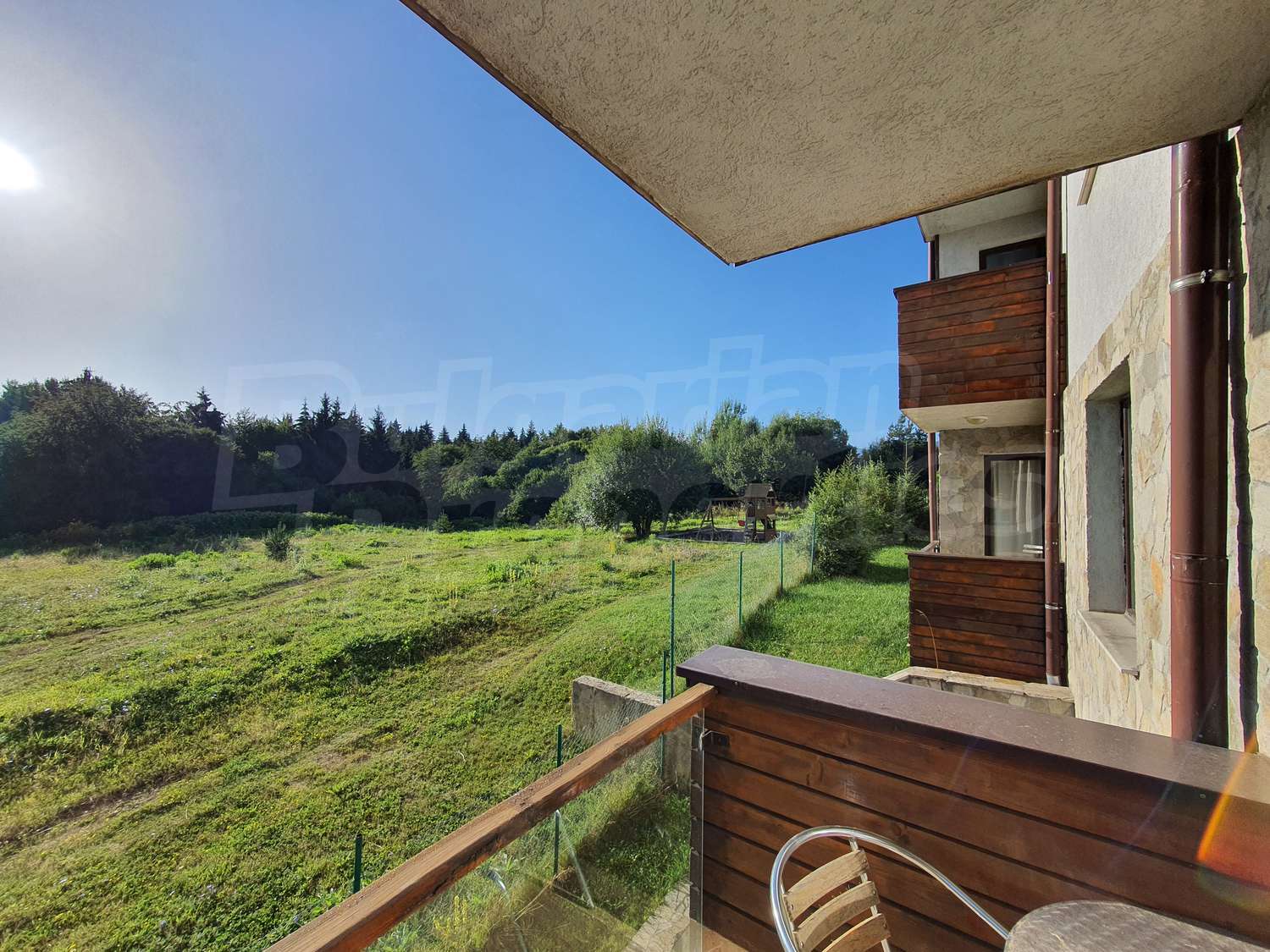 •	Балкон с външна мебел.