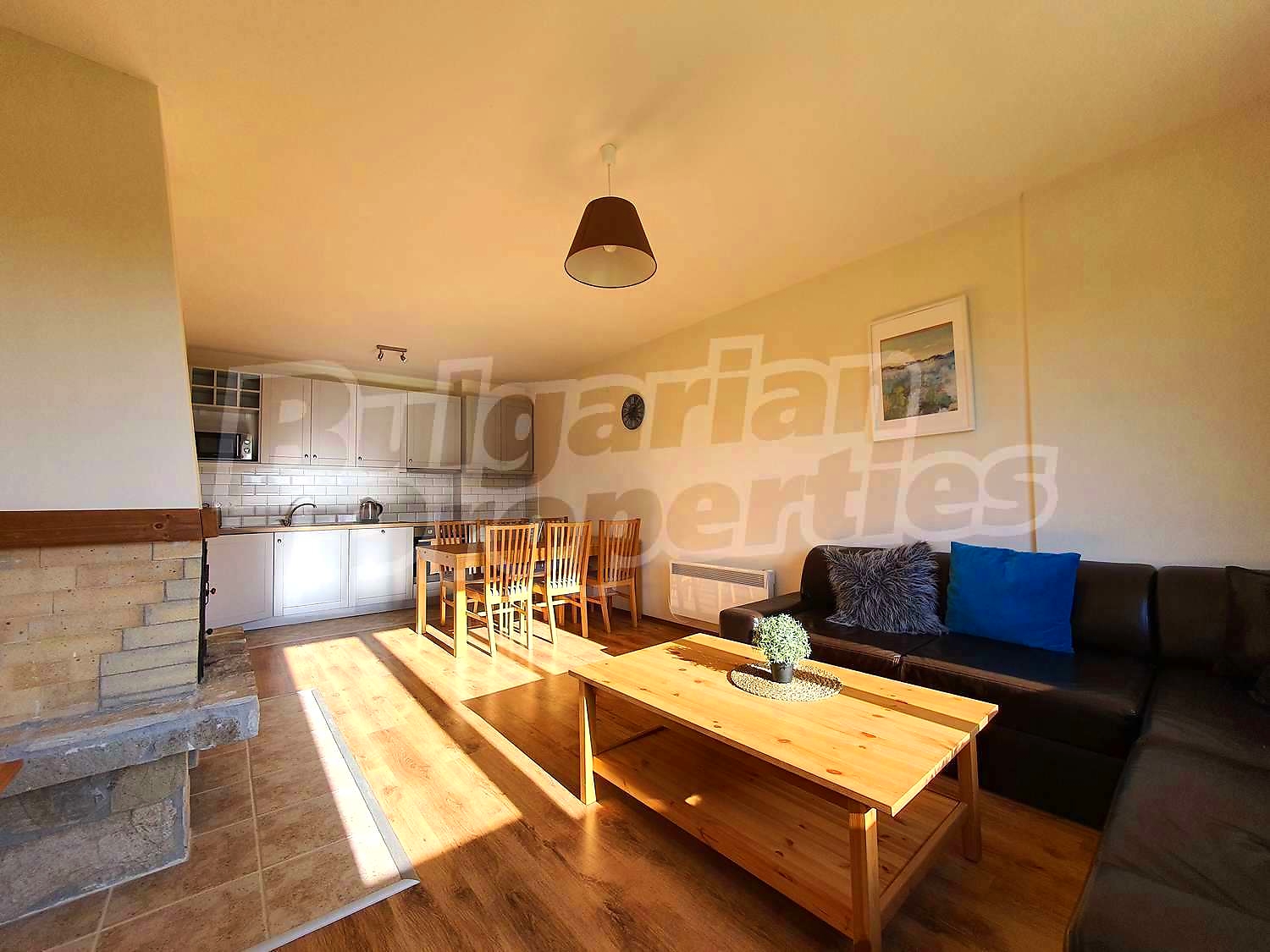 • Дневен тракт с уютна обстановка – мека мебел, плоскоекранен телевизор и камина;