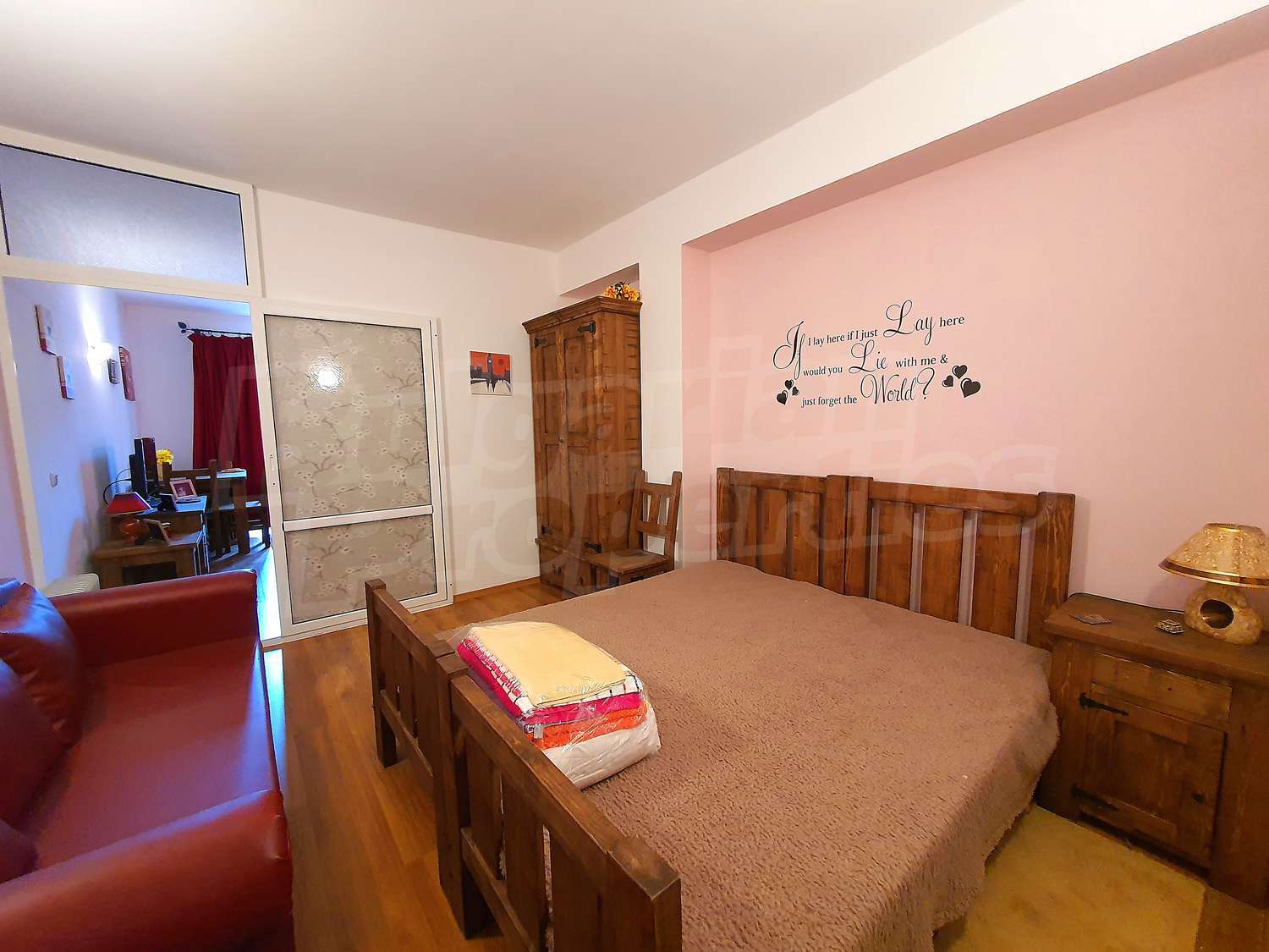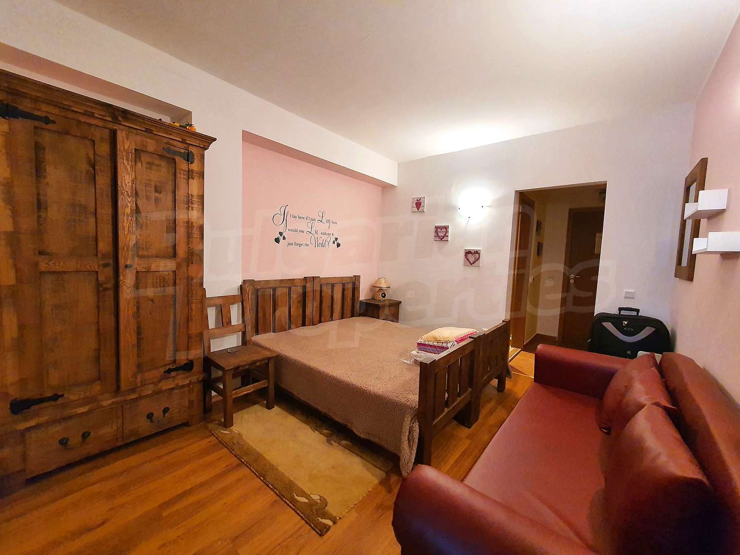 •	Кът за отдих и почивка - двойно легло, нощно шкафче, гардероб;