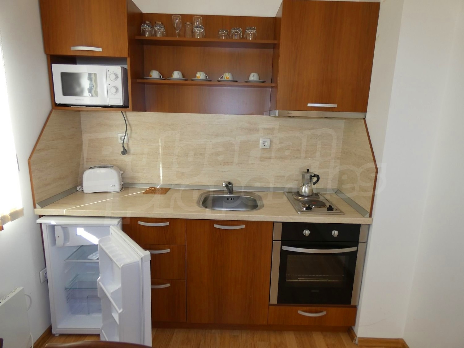 • Кухня - керамичен плот, мивка, шкафове, хладилник, маса с 4 стола;