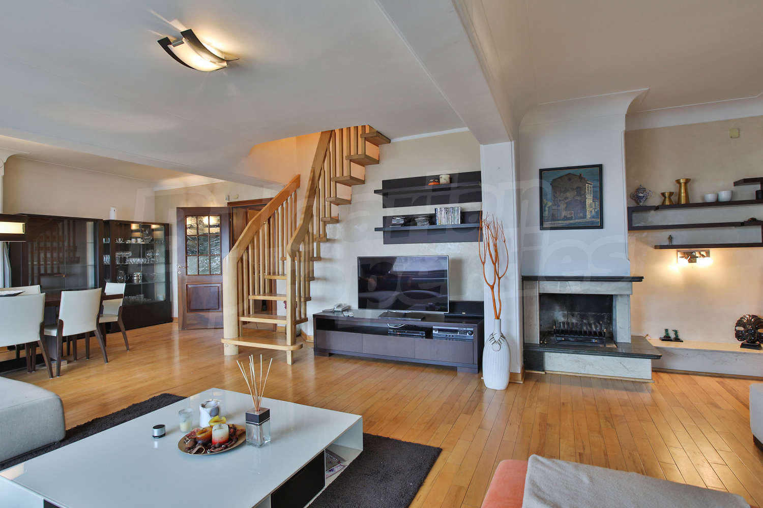 Имотът заема 5-ти и 6-ти етаж в добре поддържана тухлена сграда. Площта му е 210 кв.м., с изложение изток-югозапад. Продава се напълно обзаведен и оборудван.