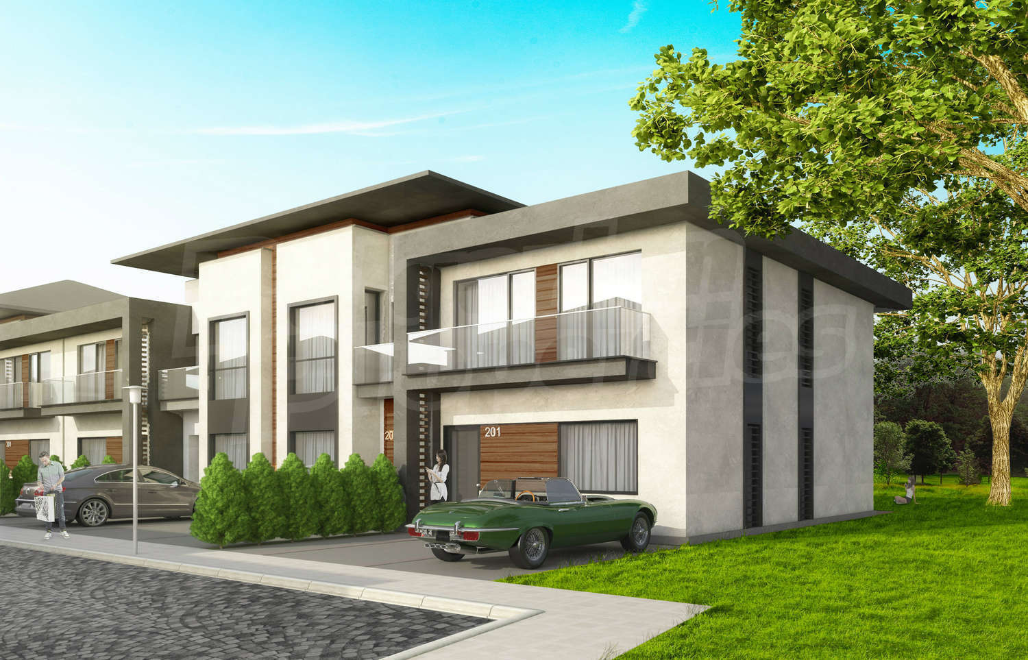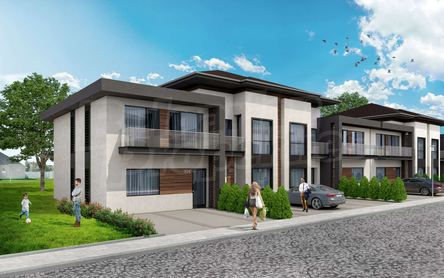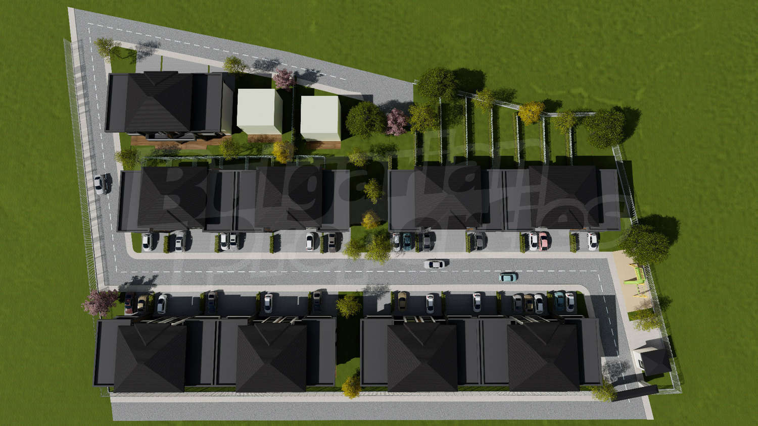 •       2-етажни къщи с 3 спални /плосък покрив/ с обща жилищна площ от 160 кв.м – продажна цена 99 990 евро