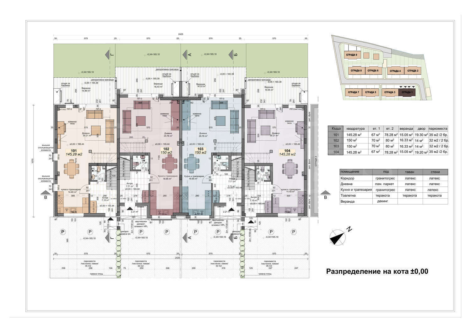 • Всички квадратури на къщите са реални застроени площи!