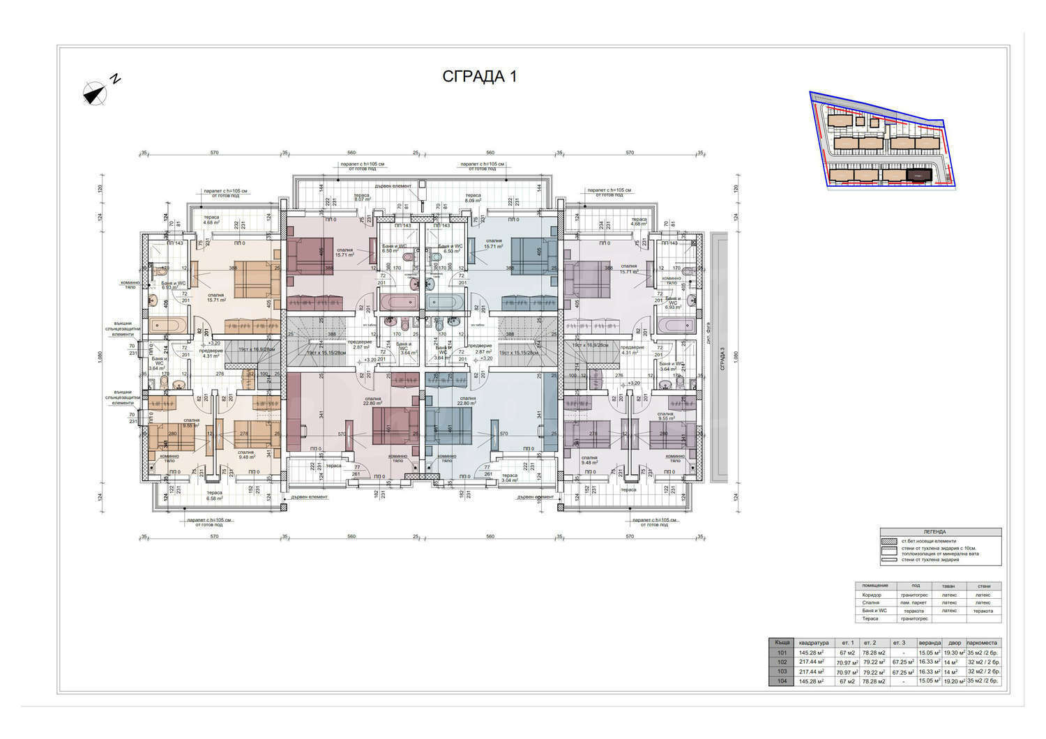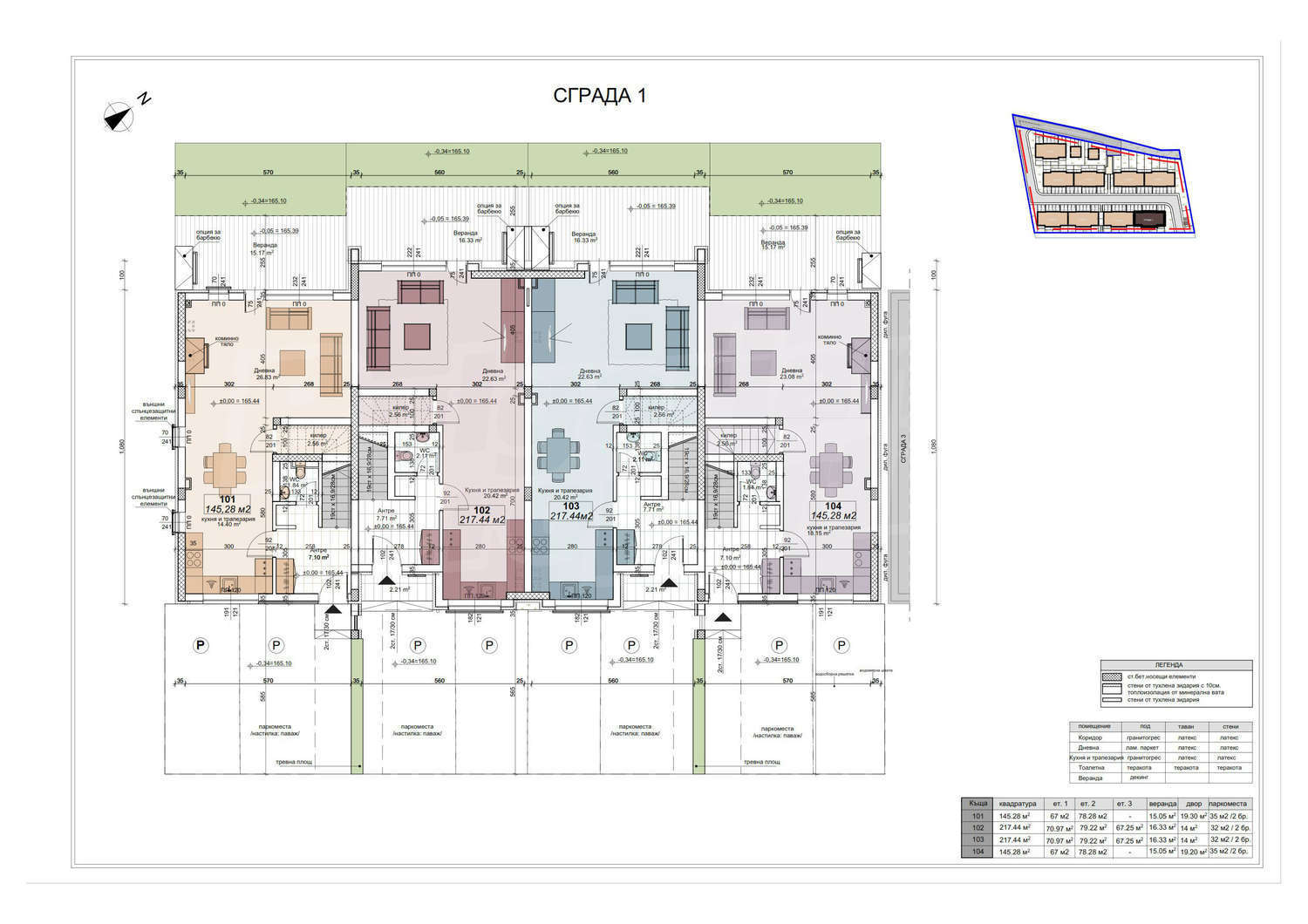 •       3-етажните къщи са проектирани с 4/5 спални с обща жилищна площ от 233 кв.м. – продажна цена 120 000 евро