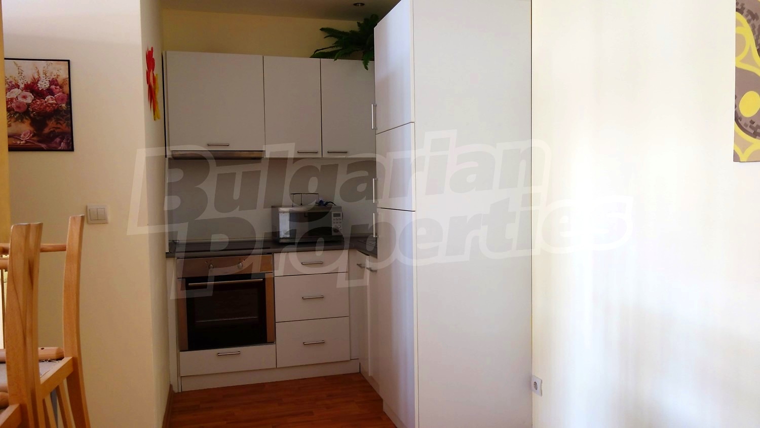 Комфортно обзаведеният и оборудван апартамент включва дневна с кухненски бокс, напълно оборудван с всички необходими електроуреди и маса със столове за хранене, мека мебел и телевизор, климатик, две спални, две бани с тоалетна и вана и един балкон с красива гледка към вътрешния двор на комплекса с басейна.